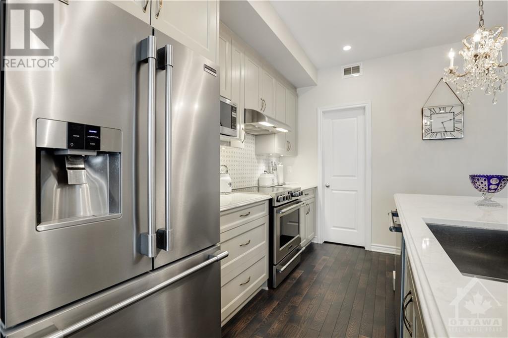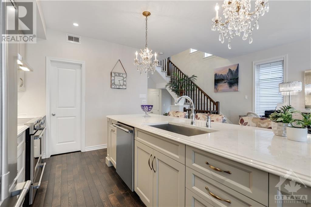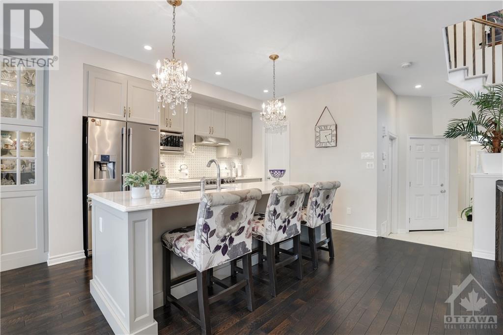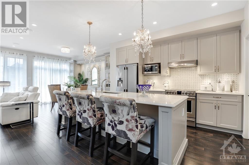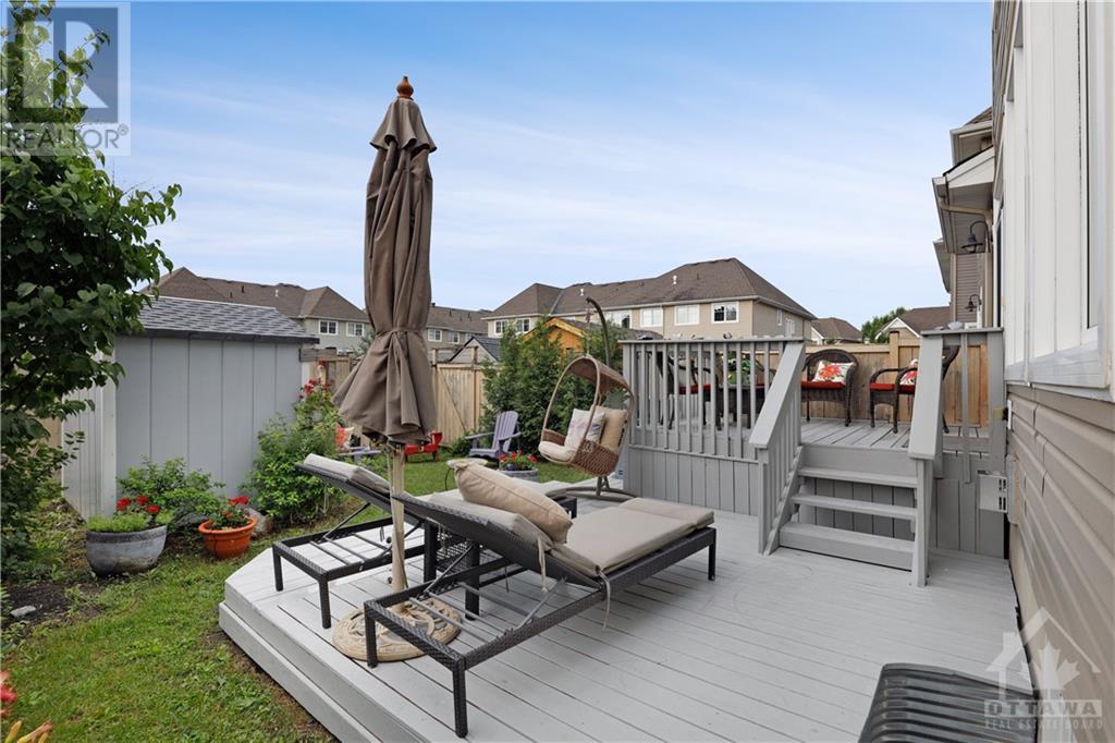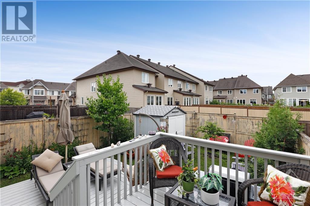 Spectacular end unit townhome is loaded with upgrades and has designer model home touches throughout! Just about everything you see is an upgrade. Top selling Tamarack "Cambridge" model offers high end finishes plus, plus. Super upgraded kitchen with high end appliances, quartz counters, soft close drawers, pantry, large island with breakfast bar. Oversized single garage (approx 13'x 20'), interlock widened private (non-shared) driveway. southeast facing year yard is fenced and includes two tiered deck and shed, 2 gas fireplaces. Basement has spacious family room plus generous storage and utility space. Rare townhome block with only 3 units. See iGuide at multimedia link for interactive 360 degree tour and floorplans for all floors. Convenient access to the stores, shops and restaurants in Findlay Creek Centre plaza. Check out this light, bright, airy and magical home today! (id:22211)