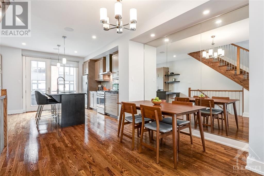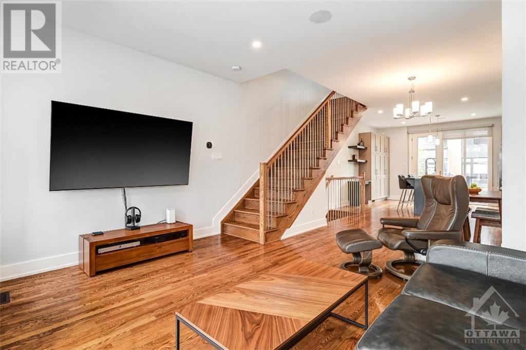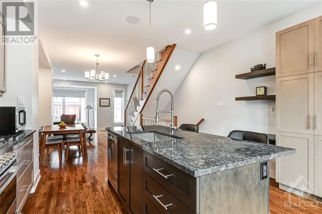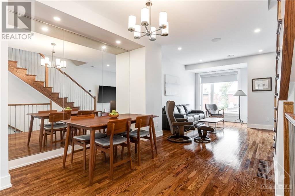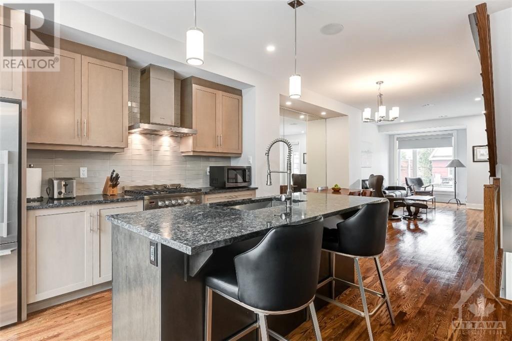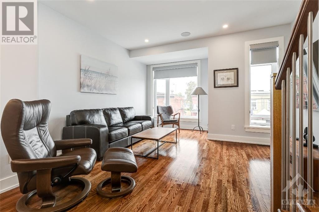 Discover the heart of Ottawa's vibrant West Centre Town in this modern downtown townhome. Nestled steps away from lively Chinatown & Little Italy, this luxurious executive residence impresses w/ its upscale amenities. Upon entry, 9-foot ceilings create an elegant ambiance that permeates every corner, while oversized windows flood the site-finished hardwood floors w/ natural light. The sleek kitchen, featuring Fisher & Paykel appliances, a Quartz island, & an adjacent courtyard balcony, caters to culinary enthusiasts. The primary retreat boasts a lavish ensuite, w/ a spacious second bedroom and well-appointed main bathroom on the third level, complete with convenient laundry facilities. The foyer level accommodates a versatile office space convertible into a third bedroom, and a main-level powder room enhances practicality. Enjoy the convenience of inside access to the garage and ample storage space in the basement. This prime location puts you mere steps from Dow's Lake. 24 Hour irrev. (id:22211)