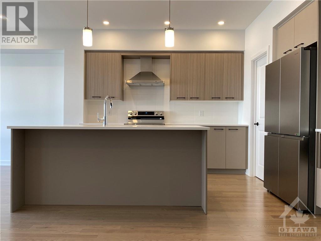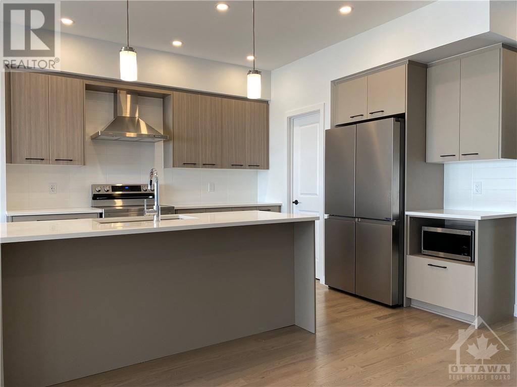 Be the first to live in this brand new and modern town home in highly sought-after neighborhood of Kanata Lakes! It offers 1945 sqft living space, including the finished Rec Rm of 380 sqft w Fireplace in the lookout bsmt. The main flr features fully opened layout Living/Dining/Kitchen with 9' ceiling, gorgeous hardwood flr, and plenty of pot lights. Chef's kitchen is completed with a quartz ctr island w breakfast bar, a W/I pantry, and S/S appliances. Upstairs the large primary bedroom has a WIC and 3 pc ensuite w an oversized shower. The other 2 good sized bdrms, laundry rm, a main bath and a bonus loft compete this level. A prime location within boundary of top schools like Earl of March, W. Erskine Johnston. Only 3 minutes drive to Kanata North Tech Park! (id:22211)