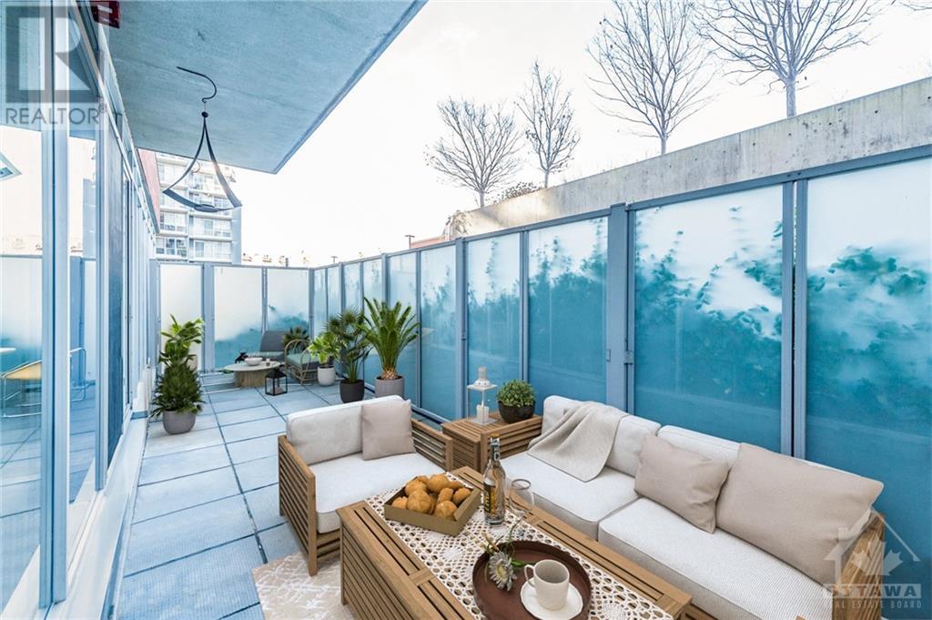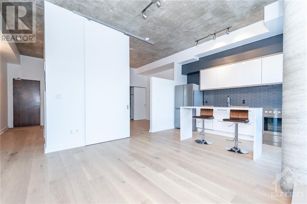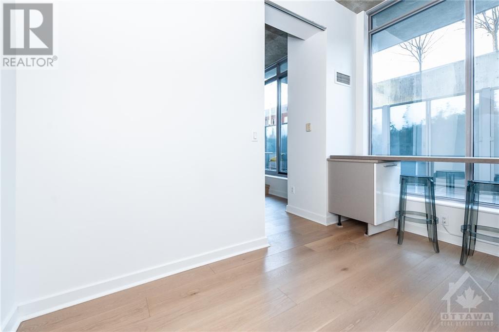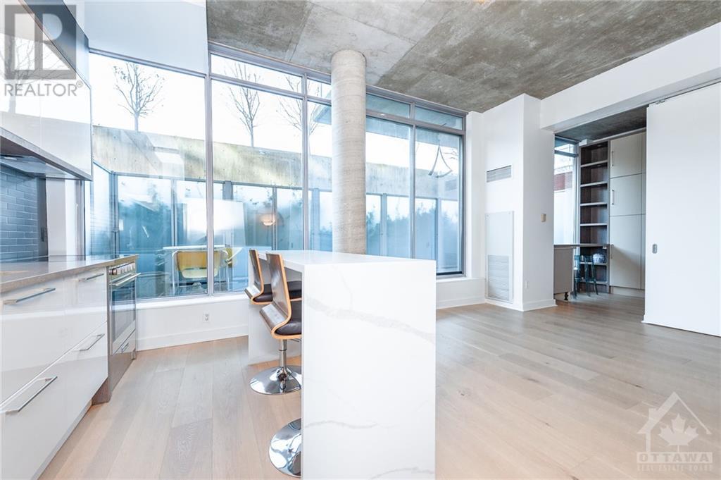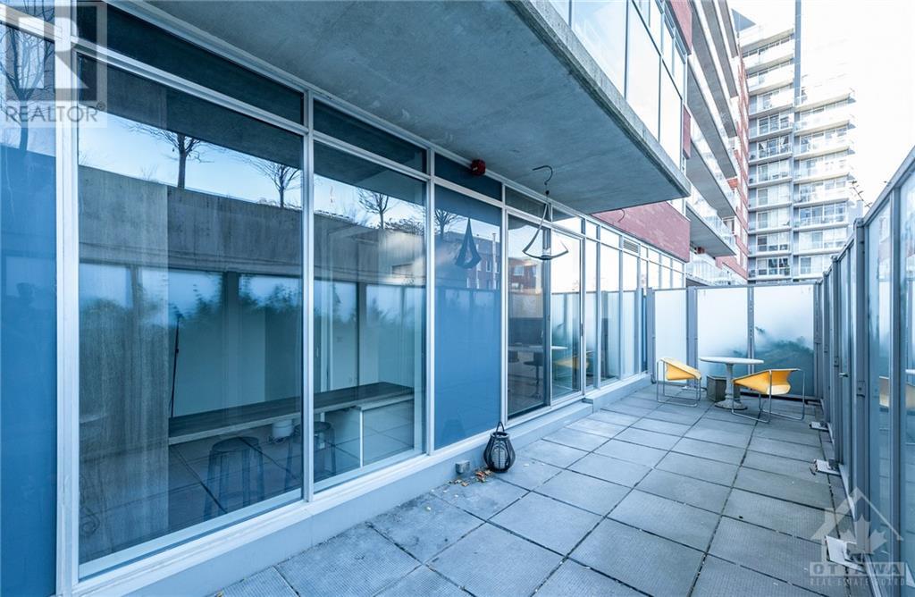 ** Conditionally Sold** Newly Renovated 714sf 1 Bed + Den just a few steps away from the Byward Market. The Den is large enough for a 2nd Bedroom and includes a built in bar/desk with extra storage. This unit is conveniently located on the first floor, far from elevators and foot traffic, and on the EAST side of the building which is tucked away in a very quiet courtyard and far away from busy Cumberland street. This industrial chic unit boasts floor to ceiling windows & 11ft exposed concrete ceilings. As a bonus, enjoy your own private terrace which serves as an extension of your living space. Renovations include all new hardwood floors, a fully remodelled kitchen with high end appliances and a fresh paint job. Restaurants, Coffee Shops, Entertainment & the Rideau Centre / LRT are all within short walking distance. Amenities include party room, Gym, outdoor courtyard area with bbq's. All application must include Rental app, Proof of income, Credit report & Schedule A Attached. (id:22211)