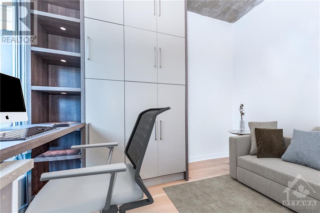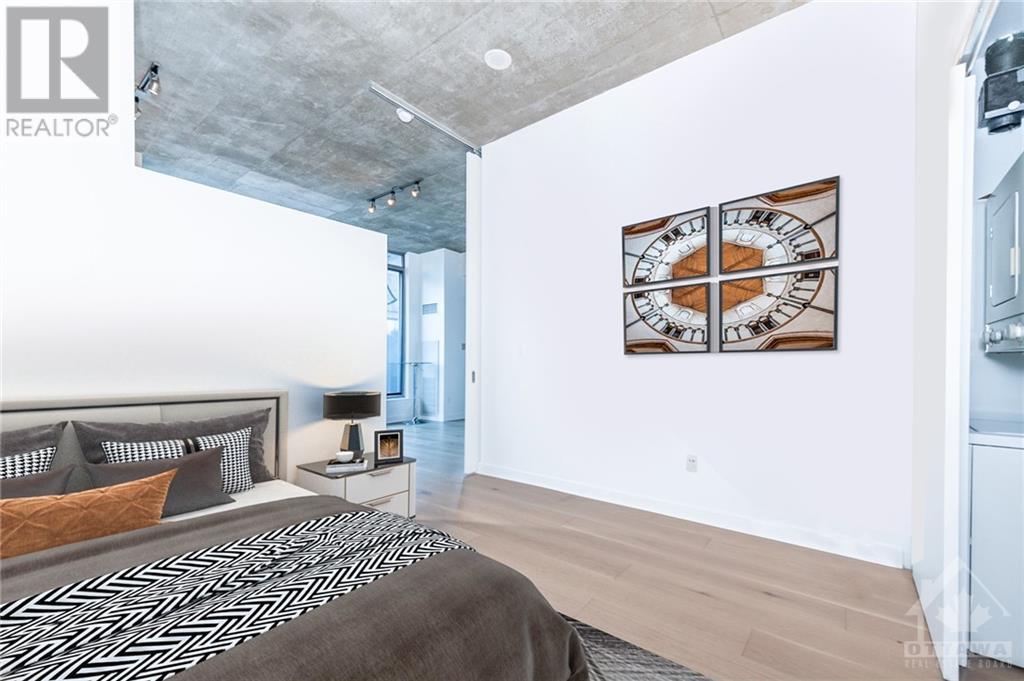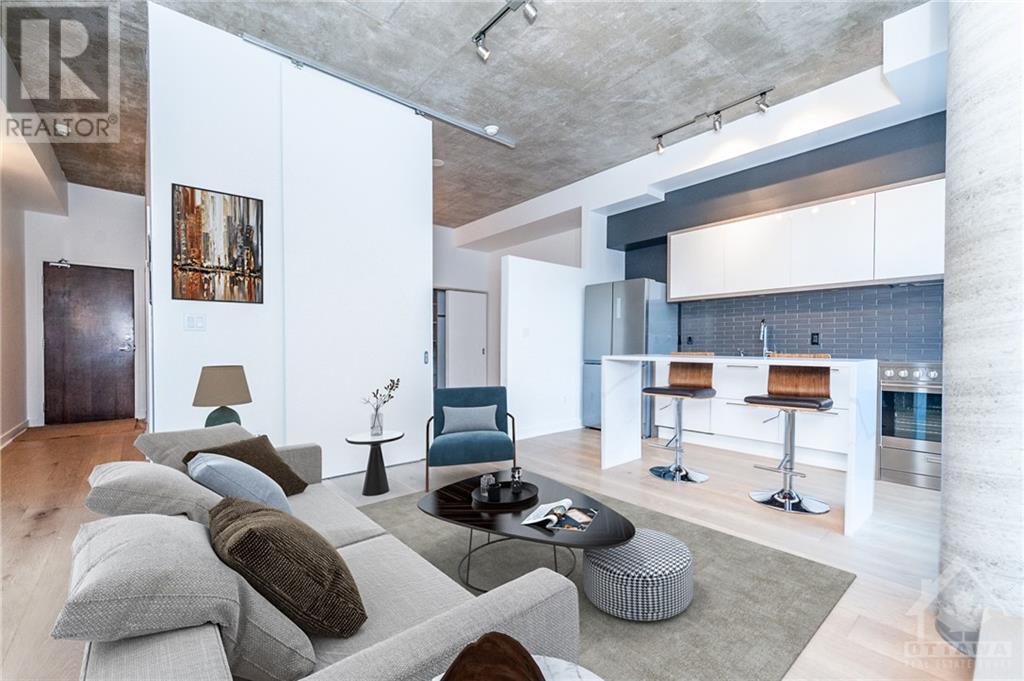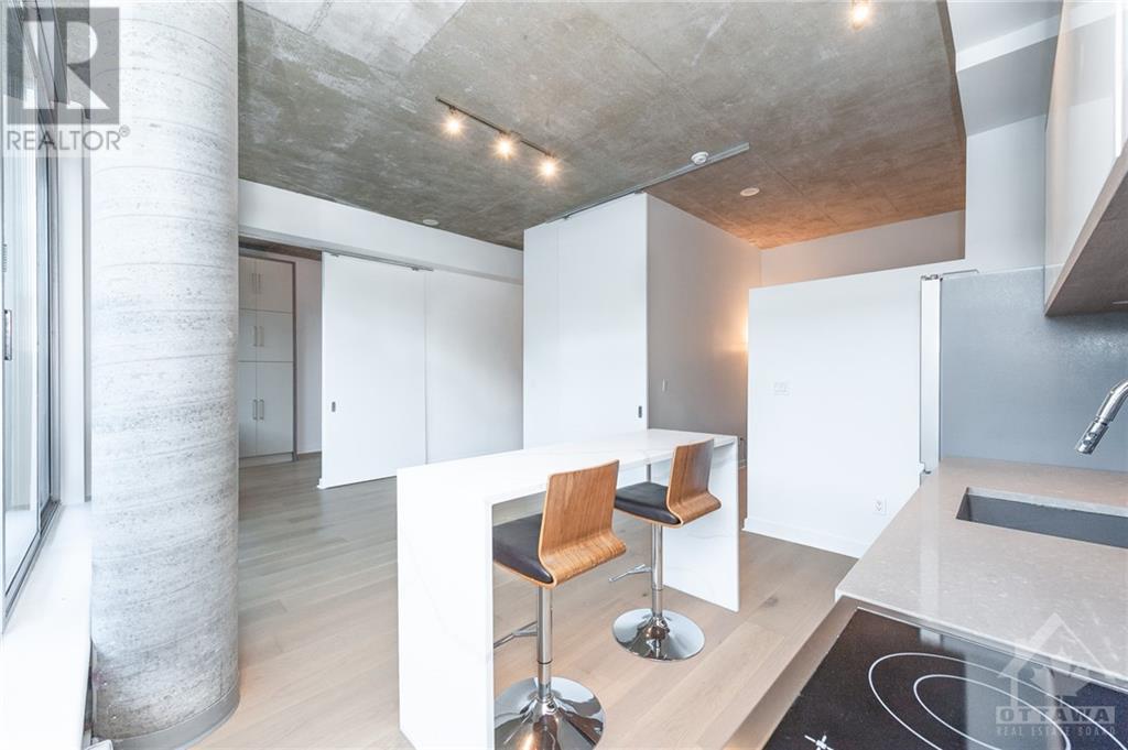 ** Conditionally Sold** Newly Renovated 714sf 1 Bed + Den just a few steps away from the Byward Market. The Den is large enough for a 2nd Bedroom and includes a built in bar/desk with extra storage. This unit is conveniently located on the first floor, far from elevators and foot traffic, and on the EAST side of the building which is tucked away in a very quiet courtyard and far away from busy Cumberland street. This industrial chic unit boasts floor to ceiling windows & 11ft exposed concrete ceilings. As a bonus, enjoy your own private terrace which serves as an extension of your living space. Renovations include all new hardwood floors, a fully remodelled kitchen with high end appliances and a fresh paint job. Restaurants, Coffee Shops, Entertainment & the Rideau Centre / LRT are all within short walking distance. Amenities include party room, Gym, outdoor courtyard area with bbq's. All application must include Rental app, Proof of income, Credit report & Schedule A Attached. (id:22211)