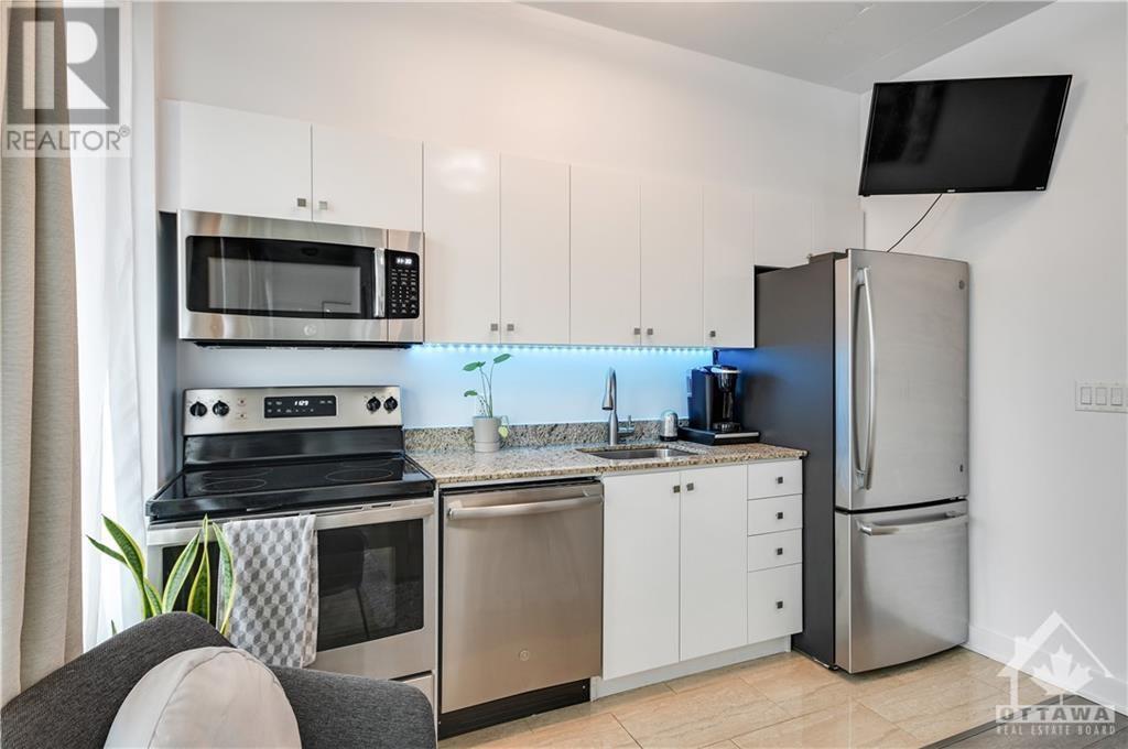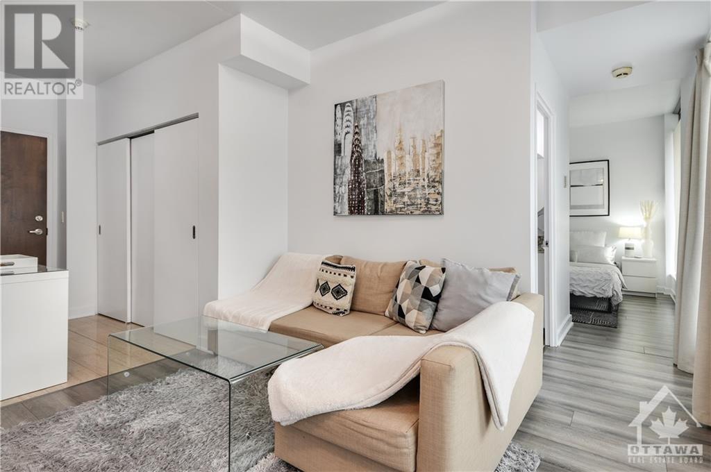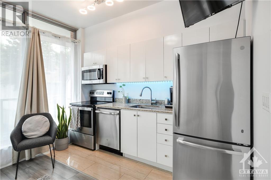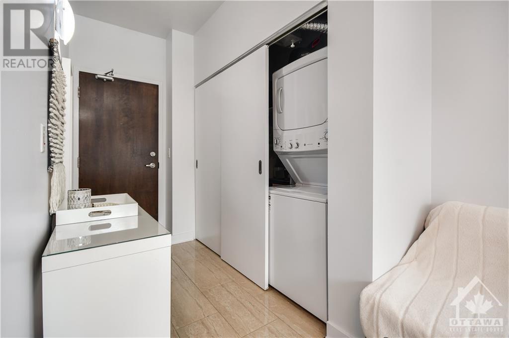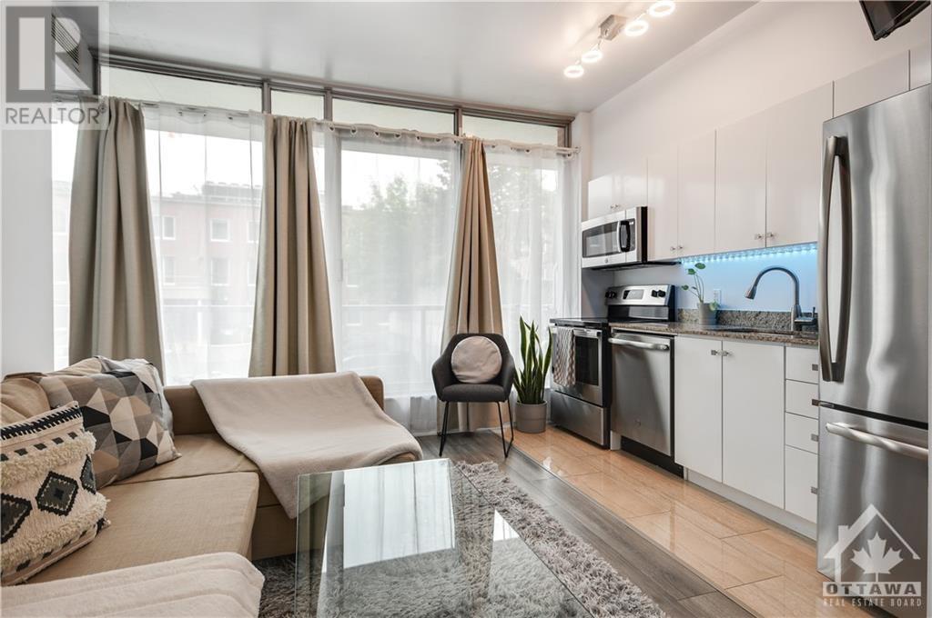 Stylish and newly updated 1 bed + 1 bath condo just steps from Byward Market. Ideal downtown living for young professionals or students. Situated conveniently on the quiet 2nd floor facing away from Cumberland St. Enjoy the open kitchen/living space with 9ft floor to ceiling windows, refinished high-gloss kitchen cabinets, new stainless steel appliances and washer/dryer set. The bright and airy bedroom has additional privacy with a sliding door and features a custom built closet system. Step outside onto the oversized balcony (approx. 145sqft), the perfect space for relaxing or entertaining all summer long. The building is well maintained and has many outstanding amenities such as fitness centre, party room, outdoor terrace with barbeques and plenty of visitor parking. Enjoy all of what downtown Ottawa has to offer with Restaurants, LRT, Rideau Centre, UOttawa, LCBO, Groceries, Parliament Hill and Rideau Canal ALL in walking distance. Perfect investment that can come fully furnished. (id:22211)