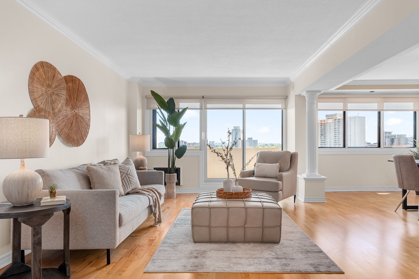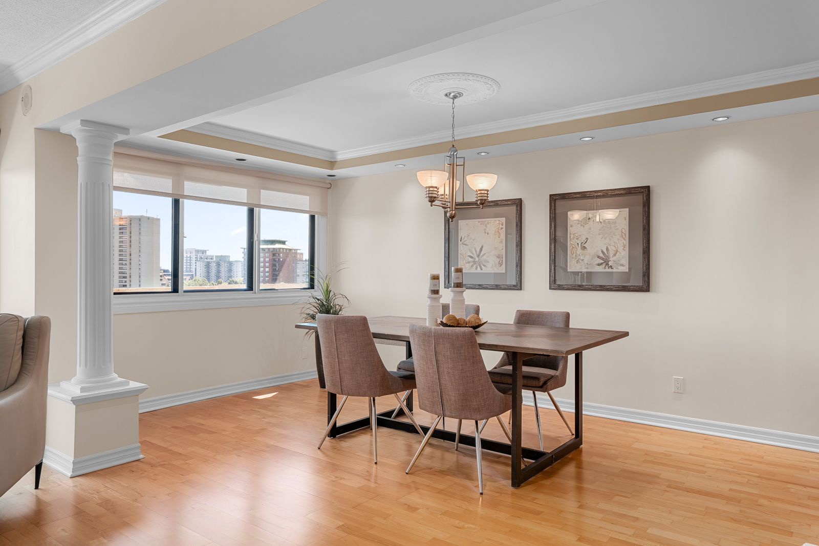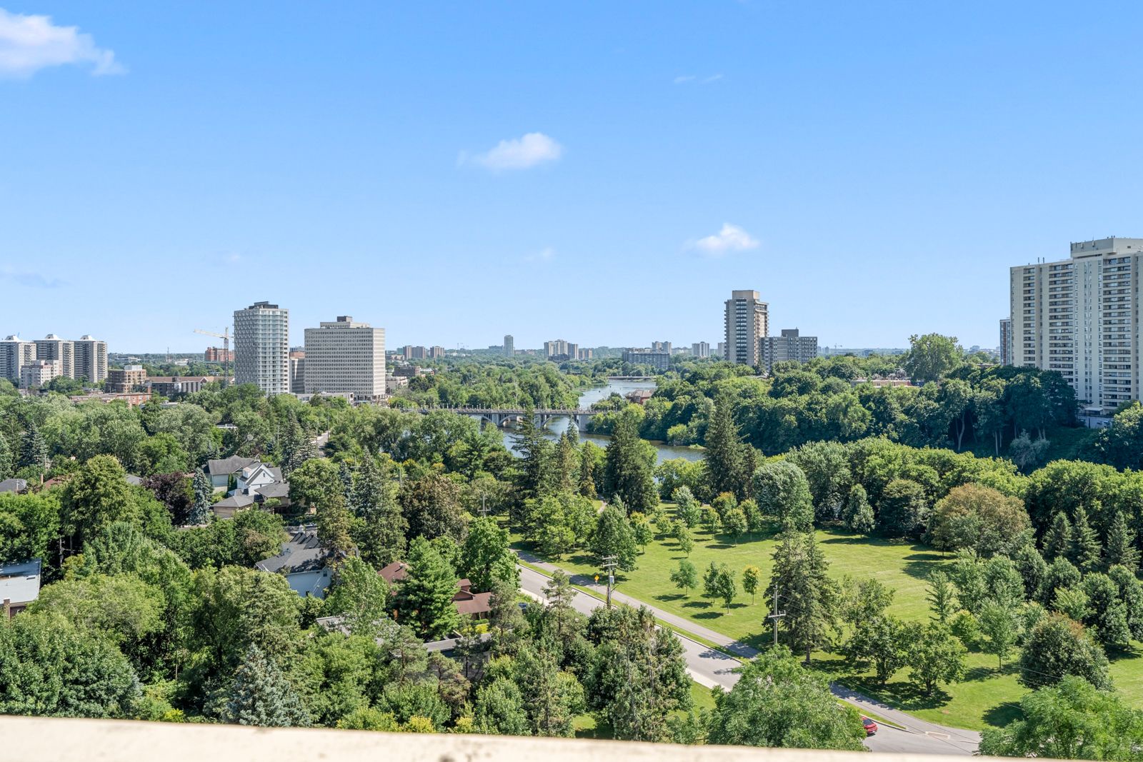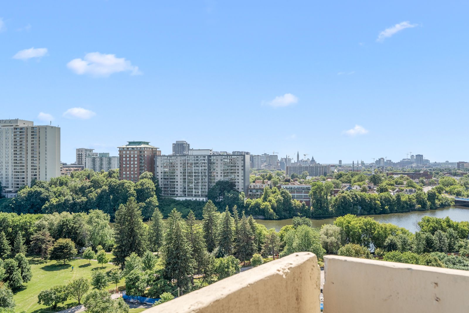 Nestled in the sought-after Beechwood Village, La Renaissance offers this beautifully updated condo with amazing views. Featuring hardwood, ceramic, and laminate flooring throughout, adding warmth and style. The well equipped kitchen features a spacious center island that is great for cooking, gathering, or entertaining guests. The open-concept living and dining area exudes sophistication, with Roman pillars, crown moulding, and ambient pot lighting enhancing its charm. Glass doors lead to a versatile space, currently serving as a cozy den that is ideal for relaxation or productivity. The sun-filled primary bedroom offers a serene retreat, boasting ample closet space to keep everything beautifully organized. The updated 3 piece bathroom boasts an oversized glass shower and ceramic tile. Finally, step onto your private balcony, where sweeping views provide a daily dose of inspiration whether you're enjoying your morning coffee or unwinding in the evening. Residents at La Renaissance have access to a fully equipped fitness centre, two terraces, and a private library, party room with stunning marble flooring, gas fireplace, flat screen T.V. and a full kitchen. Take advantage of the indoor pool or take some time and relax in the sauna. Just steps from the shops and restaurants on Beechwood Avenue and minutes to the Byward market, an exceptional opportunity awaits. Schedule your viewing today!