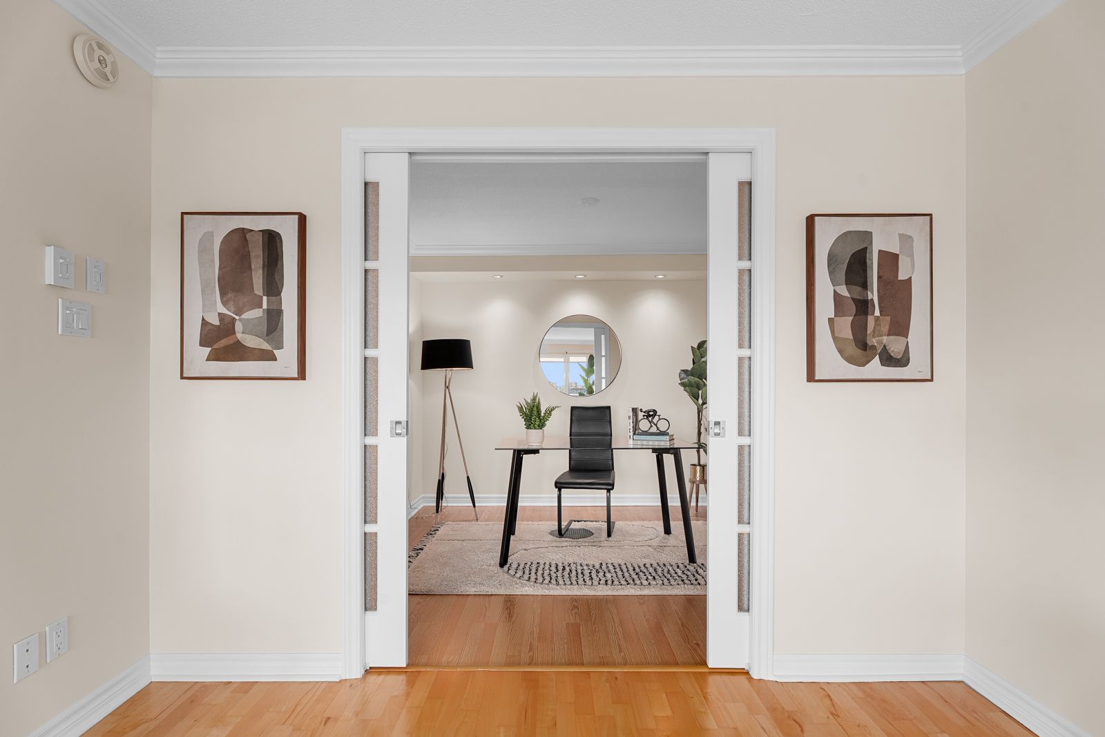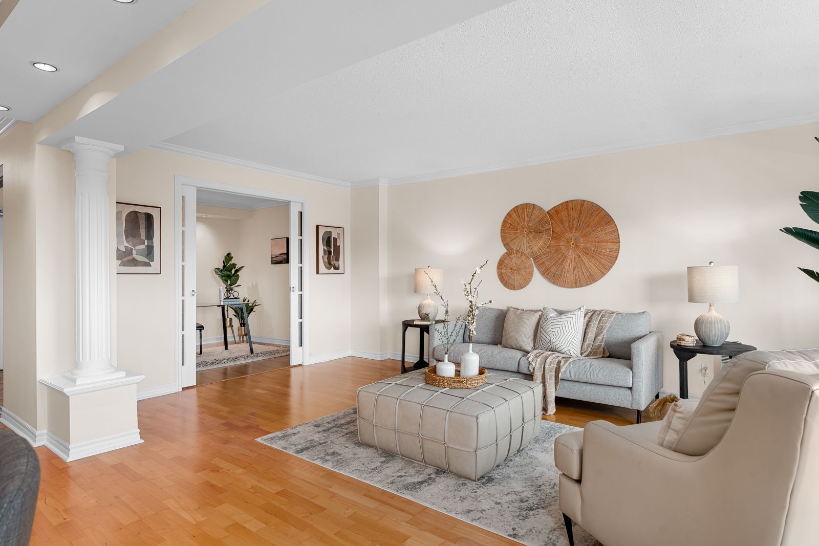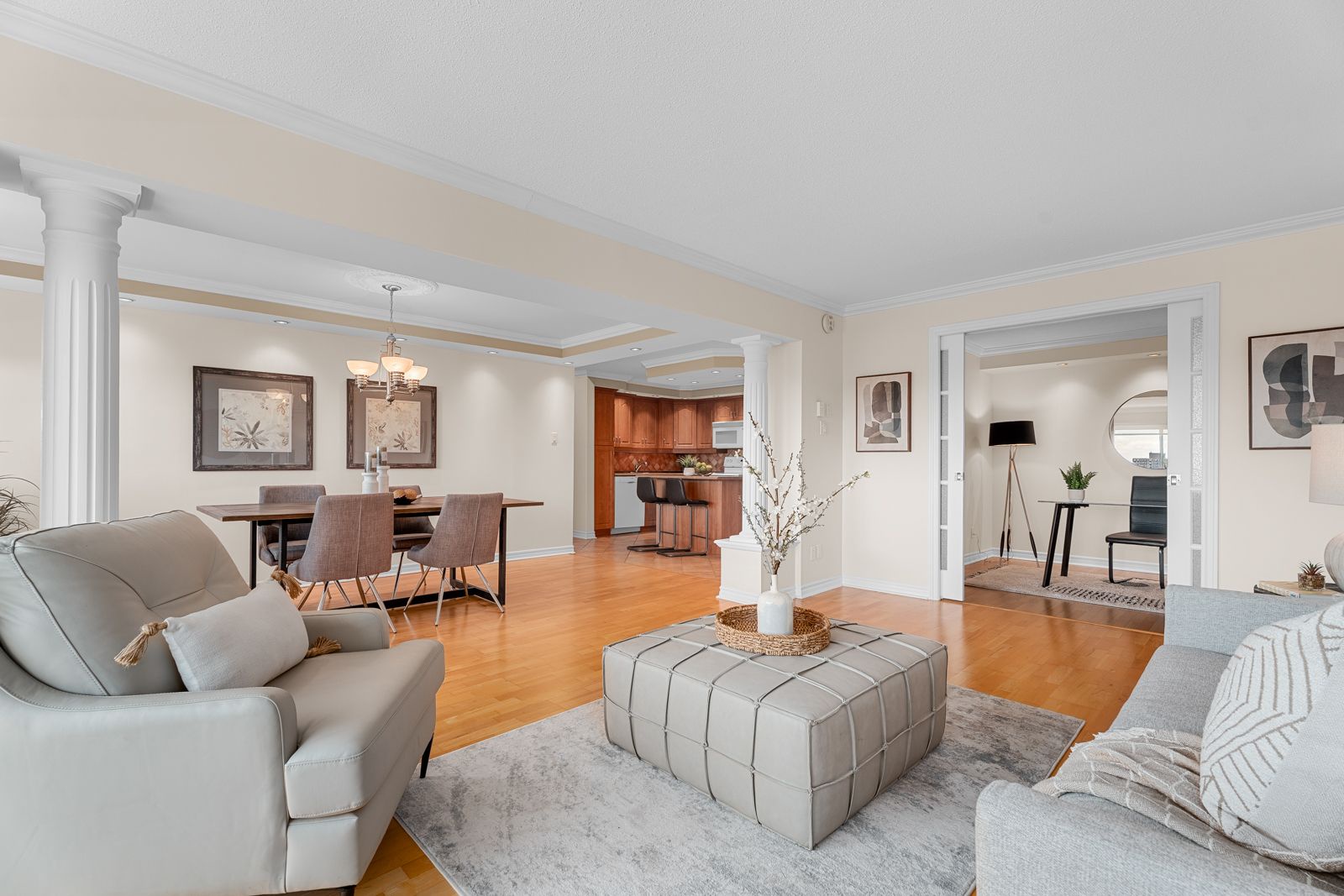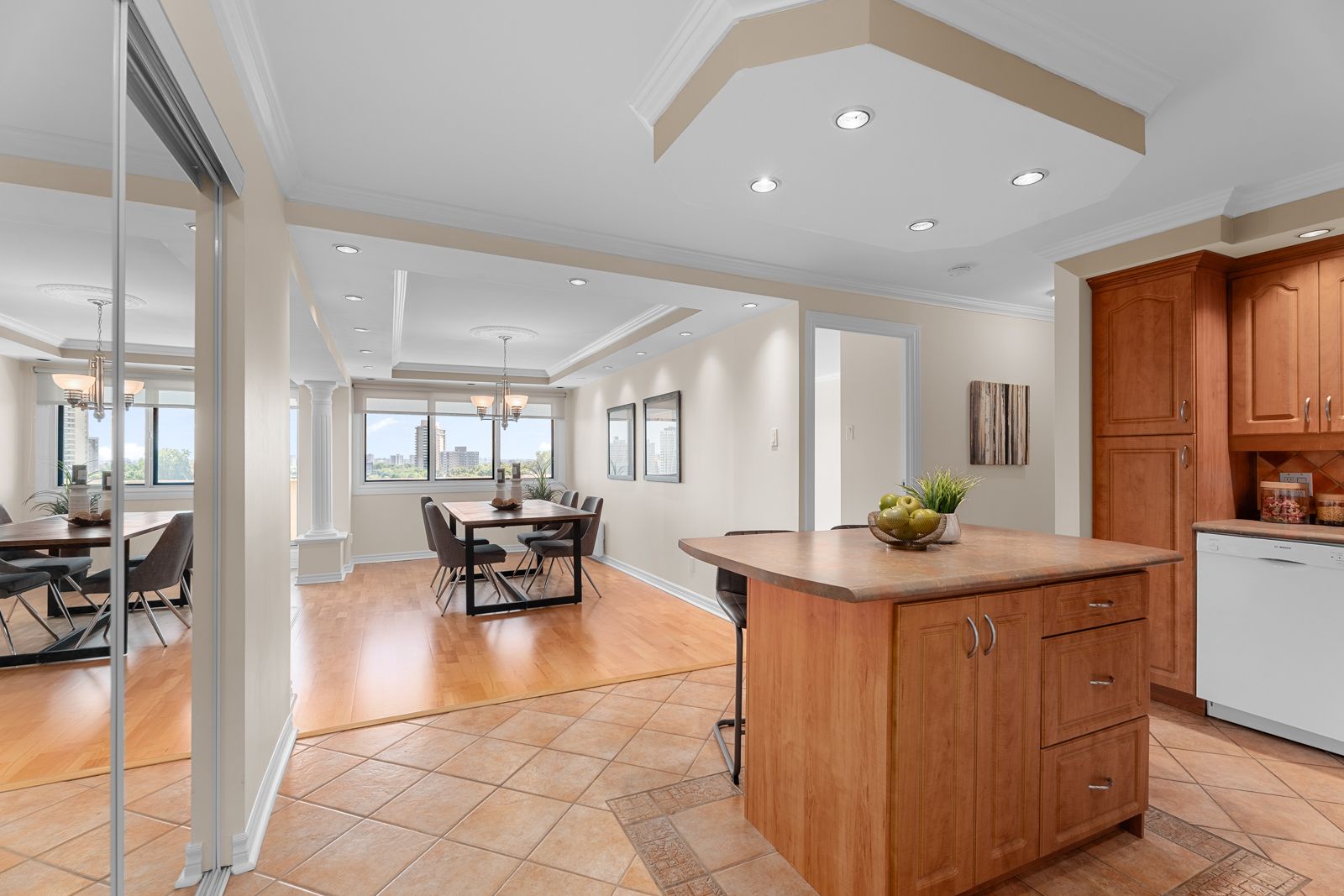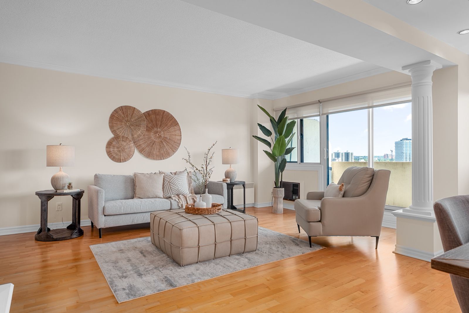 Nestled in the sought-after Beechwood Village, La Renaissance offers this beautifully updated condo with amazing views. Featuring hardwood, ceramic, and laminate flooring throughout, adding warmth and style. The well equipped kitchen features a spacious center island that is great for cooking, gathering, or entertaining guests. The open-concept living and dining area exudes sophistication, with Roman pillars, crown moulding, and ambient pot lighting enhancing its charm. Glass doors lead to a versatile space, currently serving as a cozy den that is ideal for relaxation or productivity. The sun-filled primary bedroom offers a serene retreat, boasting ample closet space to keep everything beautifully organized. The updated 3 piece bathroom boasts an oversized glass shower and ceramic tile. Finally, step onto your private balcony, where sweeping views provide a daily dose of inspiration whether you're enjoying your morning coffee or unwinding in the evening. Residents at La Renaissance have access to a fully equipped fitness centre, two terraces, and a private library, party room with stunning marble flooring, gas fireplace, flat screen T.V. and a full kitchen. Take advantage of the indoor pool or take some time and relax in the sauna. Just steps from the shops and restaurants on Beechwood Avenue and minutes to the Byward market, an exceptional opportunity awaits. Schedule your viewing today!