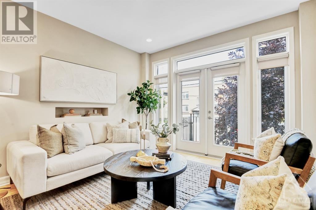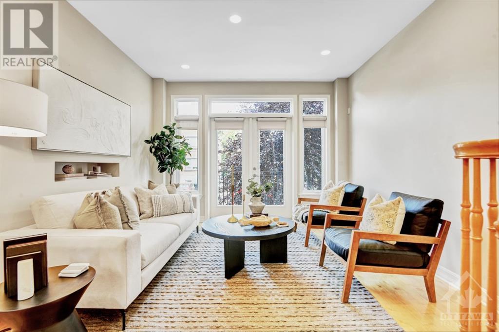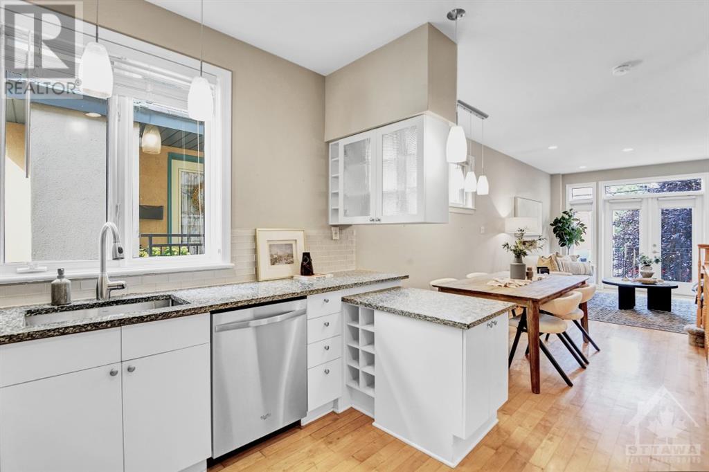 Convenience, functionality, and build quality come together harmoniously in this quality Charlesfort built executive end unit townhouse; featuring 2 beds, 2 full baths 2 parking spaces, and well scaled living areas! Ample natural light in this boutique style space; featuring hardwood floors, open concept living/dining, upstairs laundry, and functional bedroom layout. Well maintained and upgraded to mix modernity with the charm. The main fl den provides an array of options for work from home/urban professionals, or additional living space. Maintenance free outdoor space in the private sunken patio lounge, balcony off living room, and perennial garden. Proximal to Global Affairs, ample green space with GG Residence, walking/bike paths, Stanley Park, plus steps from all of the chic amenities of Beechwood Village. Start living in one of Ottawa's most popular spots, in a worry free, turn key home! (id:22211)