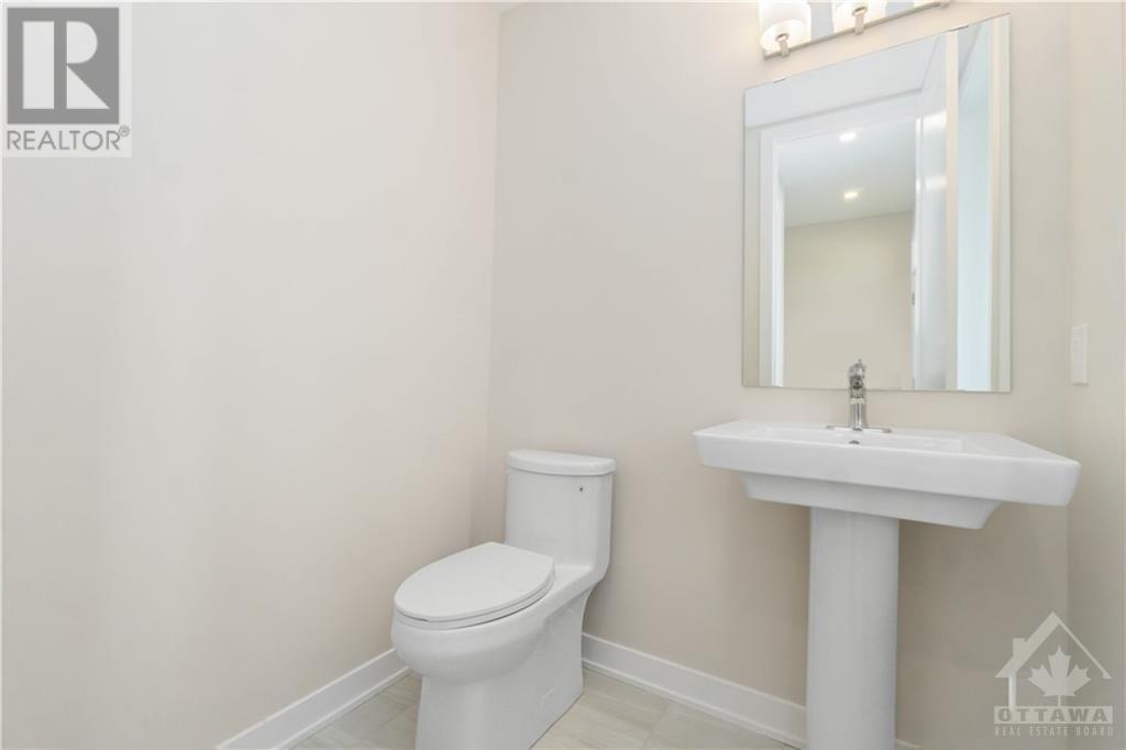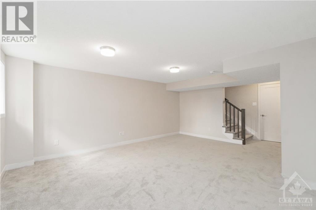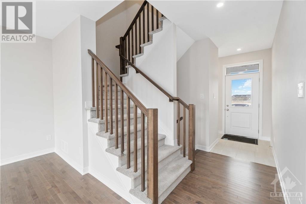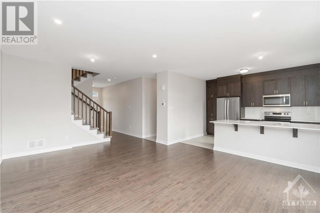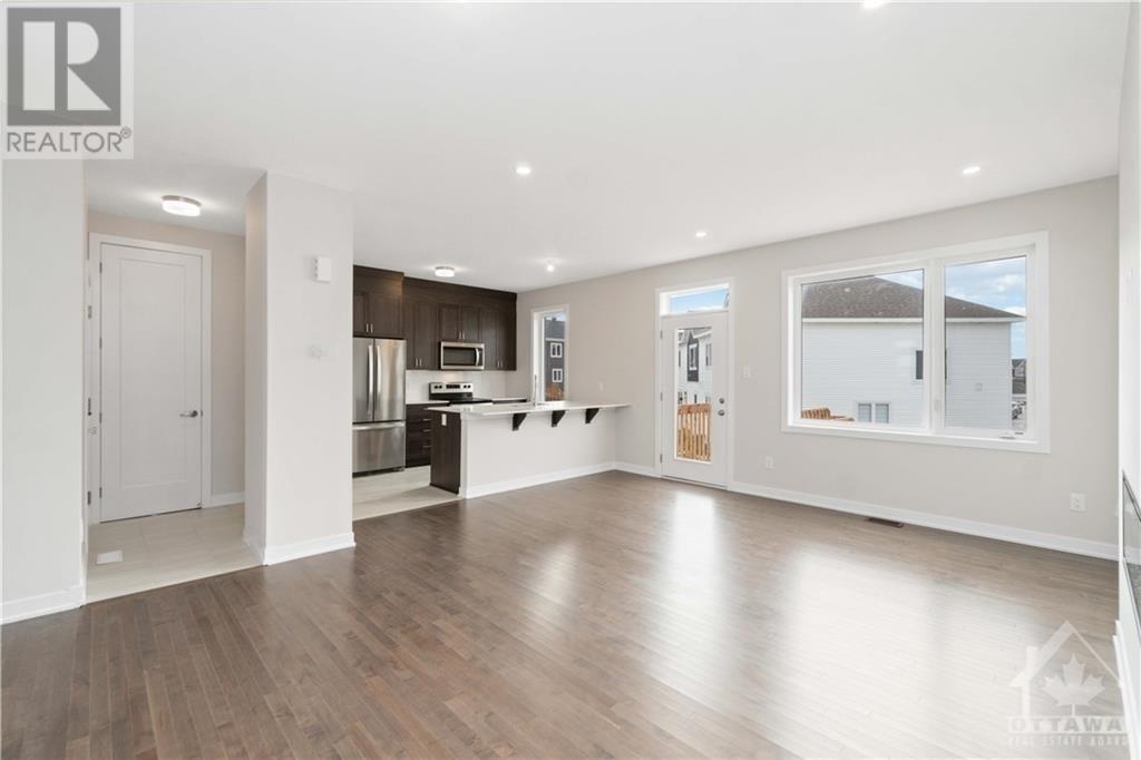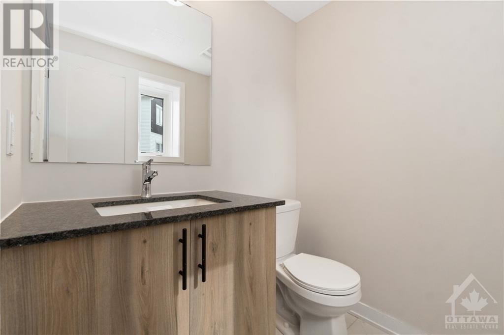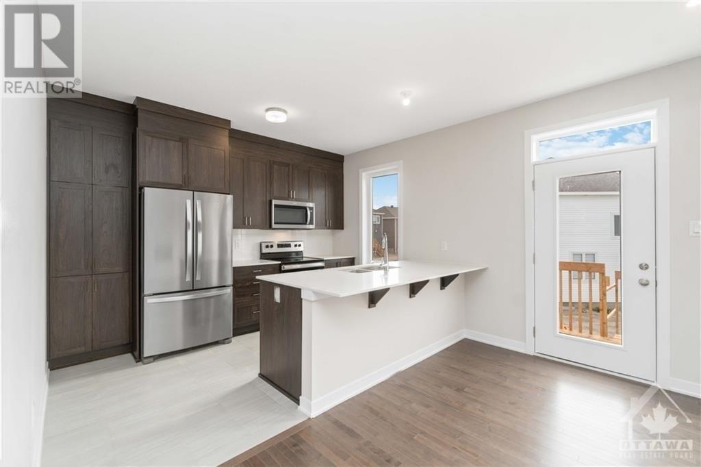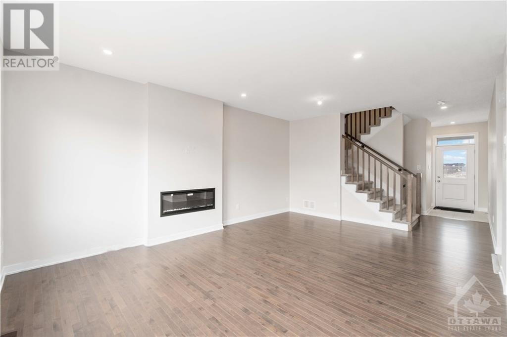 Stunning & bright 2022 built upgraded townhome offering 3 bed + 4 bath! This home welcomes you in with a spacious tiled foyer w/ partial bath, inside entry from garage leads to mudroom w/ large walk-in closet. Main level features 9 ft. ceilings, adorned w/ pot lights throughout open concept layout featuring living/dining area with electric fireplace, kitchen offers upgraded cabinets, quartz counters, island w/ breakfast bar, incl. S.S appliances & access to rear yard w/ wood deck. Upper level features primary bedroom w/ walk-in closet & 3 pc ensuite bathroom ft. granite counters, 2 additional sizeable bedrooms each w/ their own walk-in closets & 4 pc family bath. Fully finished lower level w/ huge recreation space, 2 pc bath, laundry room & additional storage area. Please note that some photos have been virtually enhanced. Tarion Warranty Remaining. (id:22211)