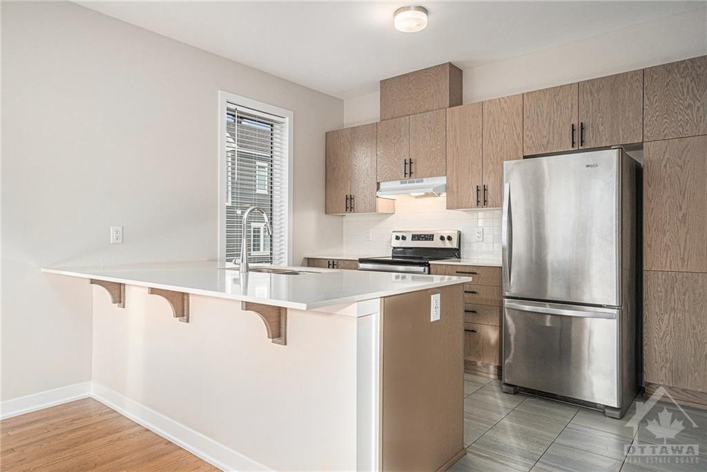 Experience comfort and convenience in this stylish, 2023-built Caivan end-unit townhome in family-friendly Half Moon Bay. This 3-bed, 2.5-bath home boasts a bright, open-concept main floor with an abundance of windows. The spacious living area flows into an eat-in kitchen featuring sleek quartz countertops, stainless steel appliances, and ample cabinetry. Upstairs, the primary suite offers a walk-in closet and 4-pc ensuite, along with two additional bedrooms and a modern 4-pc bathroom. The finished basement is perfect for movie or game nights. Enjoy proximity to Elevation Park, Costco, St. Benedict School, Hwy 416, and Minto Rec Complex.