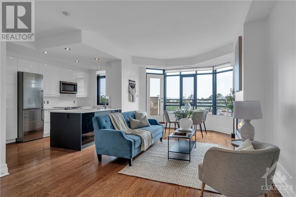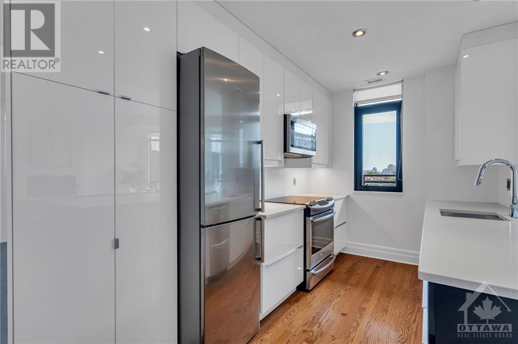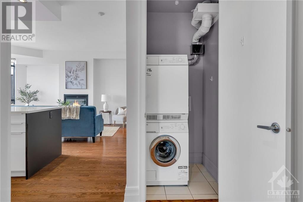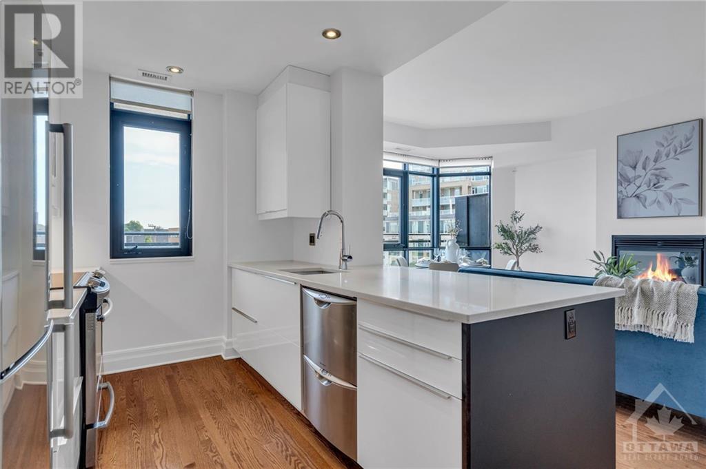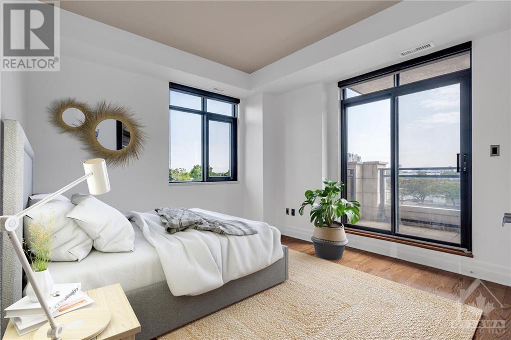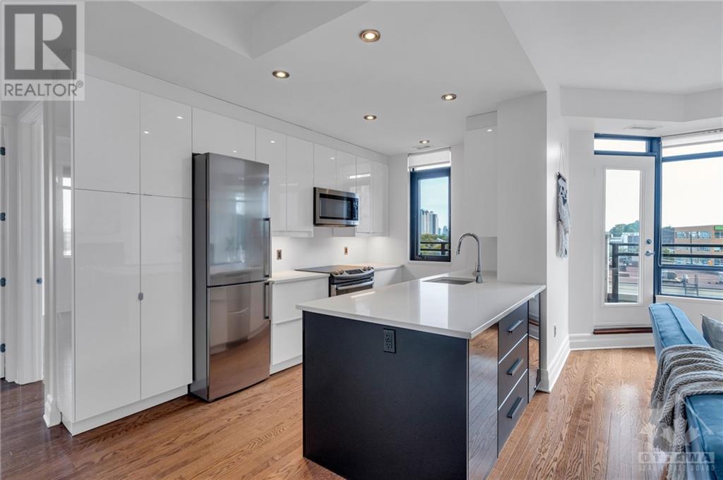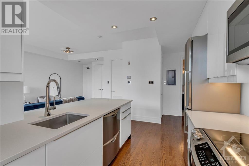 This exquisite 2 bed condo offers a perfect blend of style, convenience, and location. Boasting 945sqft of thoughtfully designed living space, this East-facing unit bathes in an abundance of natural light, creating a warm and inviting ambiance. Step inside and be greeted by the open-concept layout that seamlessly connects the living, dining, and kitchen areas. The modern kitchen features sleek stainless steel appliances and ample cabinetry -perfect for culinary enthusiasts and entertainers alike. As you make your way through the living space, you'll be drawn to the stunning 184sqft terrace with a natural gas line for barbecuing and views of Ottawa River and downtown skyline. Both bedrooms are generously proportioned. The master bedroom boasts a serene retreat (with California Closet Shelving),while the second bedroom offers versatility for guests,a home office or a creative space-the choice is yours. Parking space equipped with an electric car charging station. Storage locker included. (id:22211)