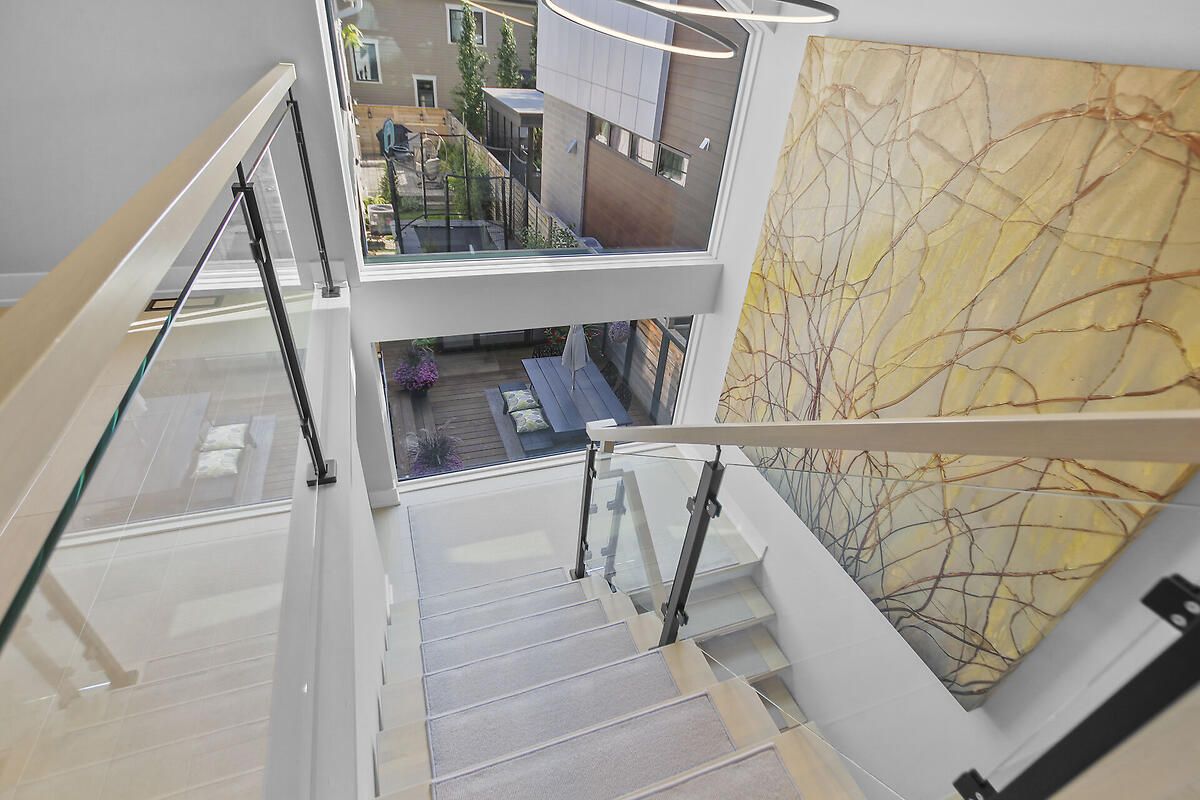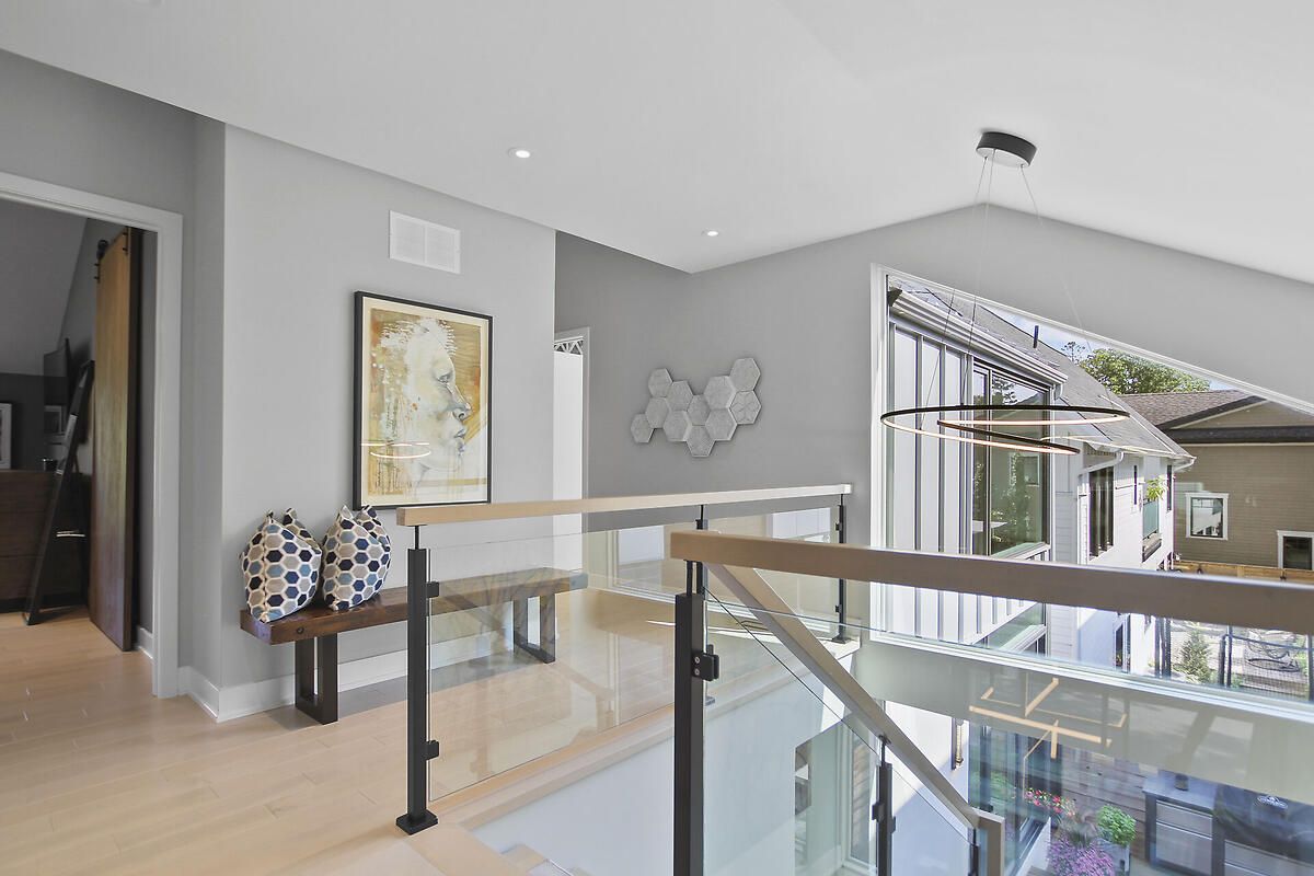 这座宏伟的住宅于2020年由Larco住宅建造,并由屡获殊荣的建筑师Chris Simmonds设计,荣获2021年多伦多市城市设计奖。外立面时尚美观,采用白色石膏和浅灰色金属屋顶。户外生活区域的雪松甲板环绕住宅前角,提供一个高架的娱乐区。玻璃栏杆和燃气接口可用于壁炉。后部私人的庭院设有户外用餐空间。内置户外烧烤设施,配有储物和准备区域。1945平方英尺 + 465平方英尺的地下室出入口。风格出众,具有戏剧性的落地玻璃墙和窗户。穹顶天花板。白色枫木硬木覆盖整个区域。设计师精心挑选。 告别铲子了吗?锅炉为车道、车库地板、地下室地板和热水器供暖。强制空气燃气炉提供暖气。主层拥有一个壮观的门厅,通向二楼。宽敞的开放式起居/餐厅/厨房,配有电动百叶窗。起居室设有燃气壁炉和一个集成湿吧,饰有引人注目的设计师瓷砖,葡萄酒和饮料冰箱,悬浮式搁板和便捷的储物空间。Deslaurier厨房设计具有高度功能性的抽屉和橱柜,最大程度地提高储物空间并确保最佳组织。石英及汉斯通台面和防溅板。高端电器,包括三星智能冰箱。优雅的洗手间完成了这个楼层。吸引人的开放式立柱/玻璃栏杆楼梯。二楼设有主卧室,配有精美的套间浴室。汉斯通台面,带辐射地暖。超大玻璃淋浴房,带多个花洒头和宽敞的窗户。Deslaurier定制步入式衣橱。两个额外的卧室和4件式浴室。地下室出入口到车库和房屋侧面。宽敞的娱乐室和洗衣设施。Deslaurier橱柜设计的泥土房。超大车库,带树脂加热地板和搁板。软管接头提供热水和冷水。浇水系统。靠近新建的Altea健身房、Dovercourt Recreation Centre以及Westboro所提供的所有商店和便利设施。