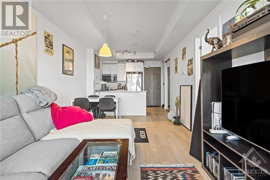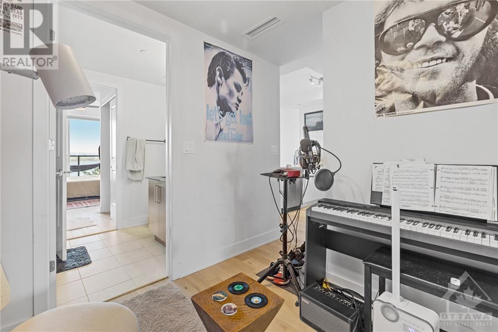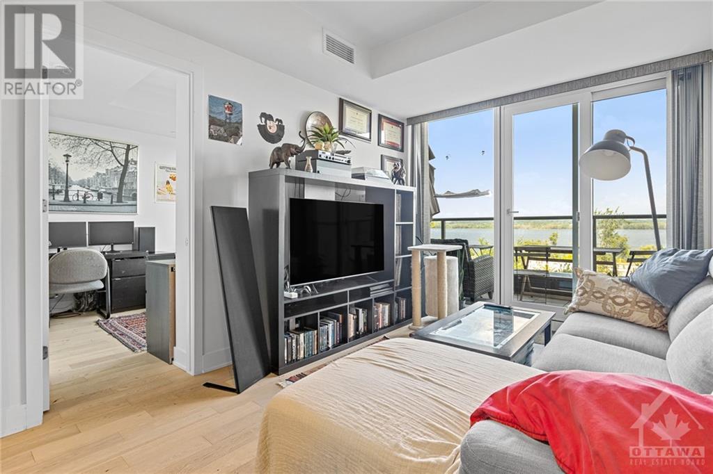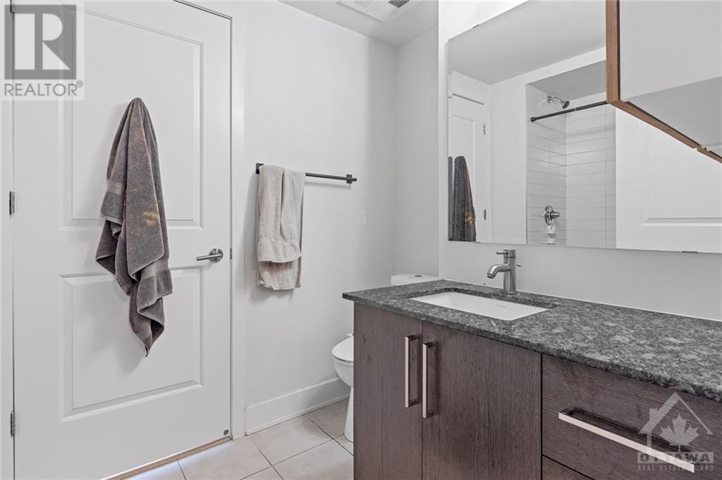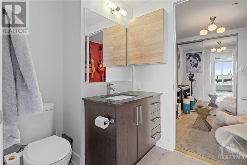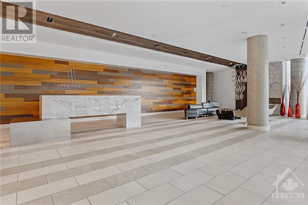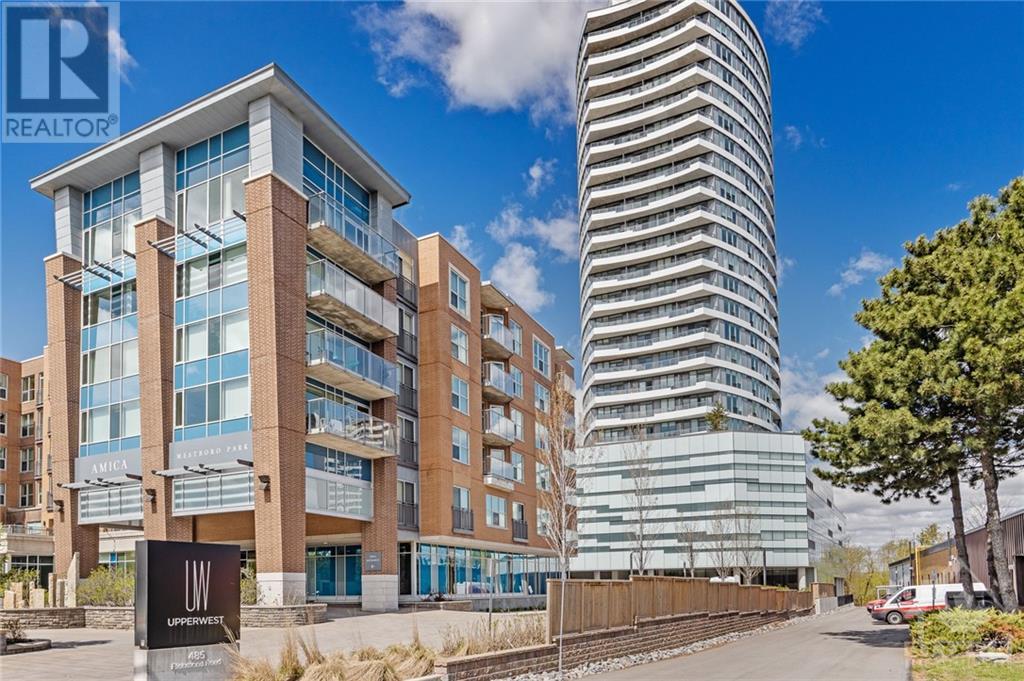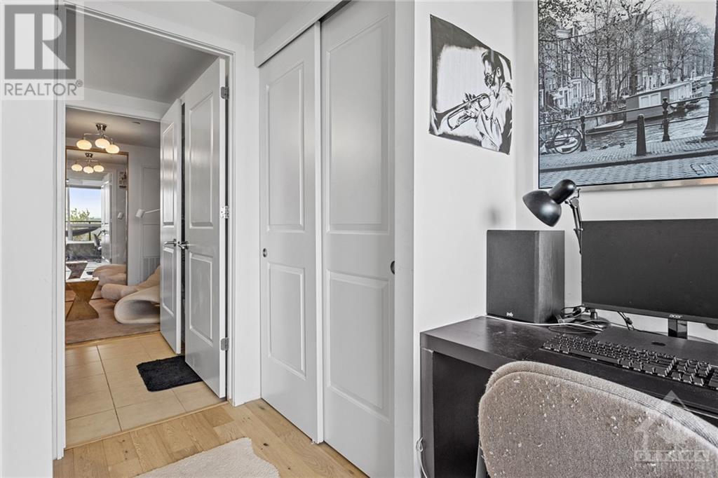 Flooring: Tile, **Open House: SAT Nov 9 2pm-4pm** Stunning west-facing 1 bedroom + den with an expansive private terrace in Upper West! Enjoy breathtaking sunsets as you entertain on your terrace, complete with a gas BBQ and ample space for al fresco dining surrounded by garden boxes. This unit offers approximately 717 sq ft of comfortable living space, featuring a fully equipped kitchen with granite counters and upgraded cabinetry, plus plenty of storage. The den serves as a versatile space, perfect for an office, TV room, hobby area, or guest room. The spacious bathroom includes a glass-enclosed shower, laundry closet, and a walk-through closet leading into the bedroom. Located in the heart of Westboro, just a short walk from shops, restaurants, and the beach. Upper West offers fantastic amenities including a bright, well-equipped gym, common kitchen and lounge, terrace with fireplace and BBQs, bike storage, and a guest suite. Includes 1 underground parking & storage unit. Pets allowed., Flooring: Laminate (id:22211)