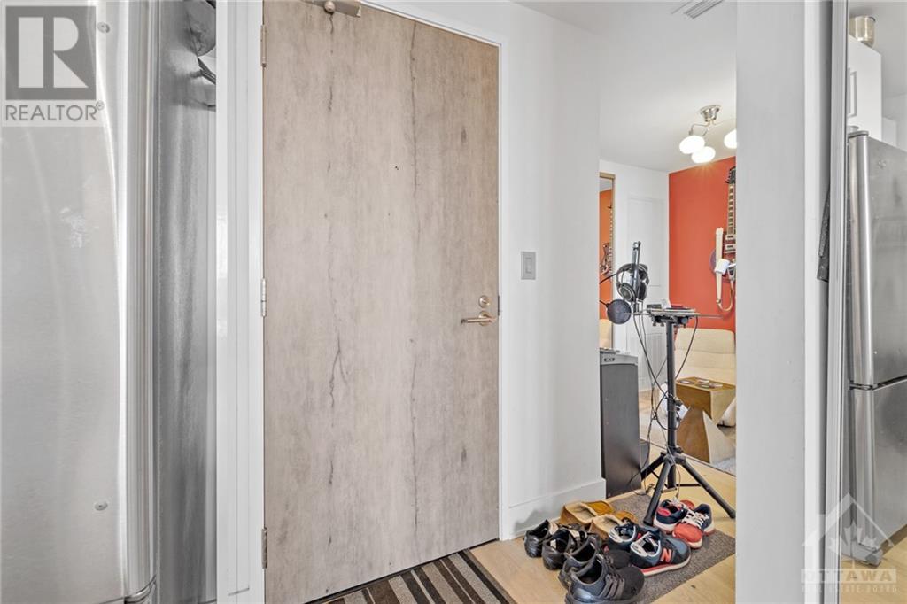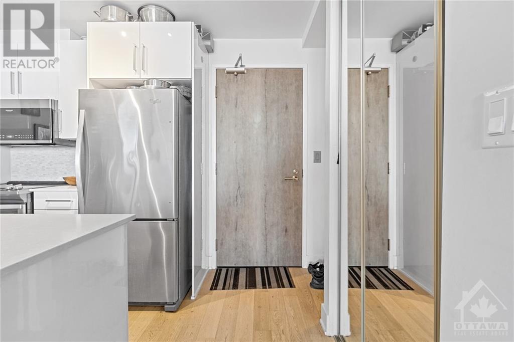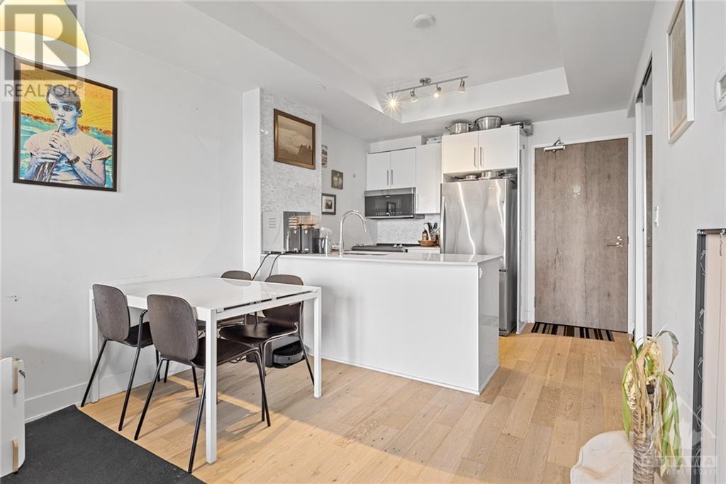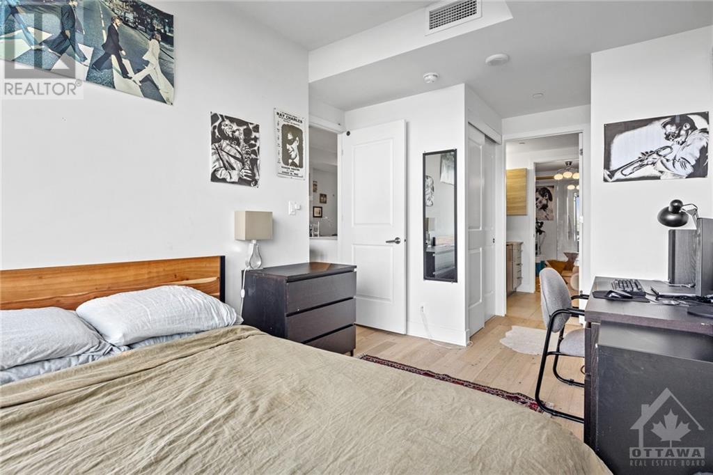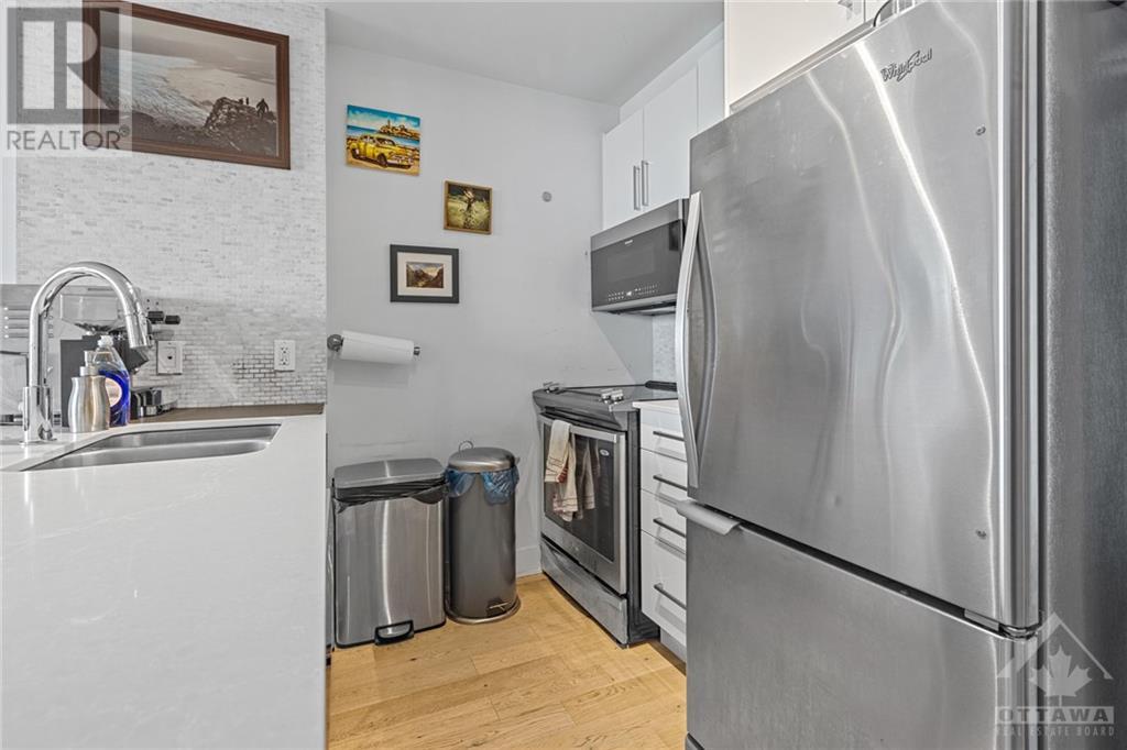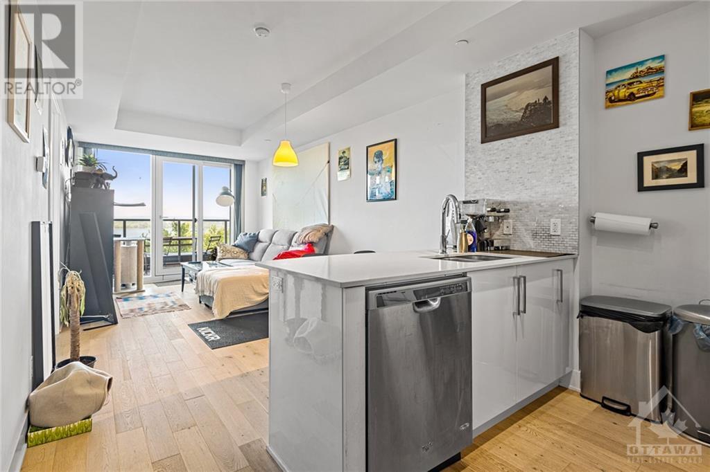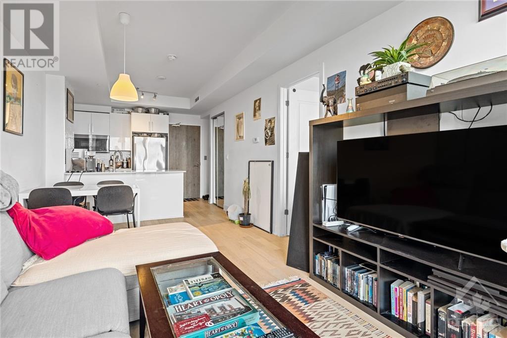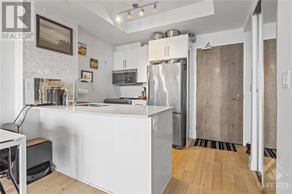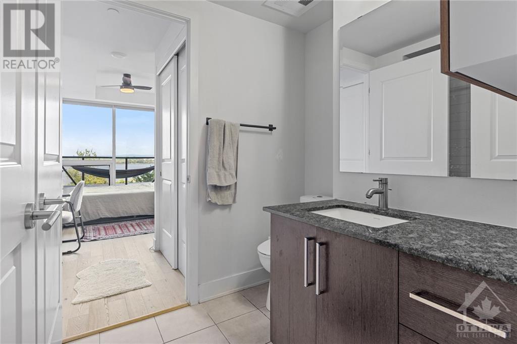 Flooring: Tile, **Open House: SAT Nov 9 2pm-4pm** Stunning west-facing 1 bedroom + den with an expansive private terrace in Upper West! Enjoy breathtaking sunsets as you entertain on your terrace, complete with a gas BBQ and ample space for al fresco dining surrounded by garden boxes. This unit offers approximately 717 sq ft of comfortable living space, featuring a fully equipped kitchen with granite counters and upgraded cabinetry, plus plenty of storage. The den serves as a versatile space, perfect for an office, TV room, hobby area, or guest room. The spacious bathroom includes a glass-enclosed shower, laundry closet, and a walk-through closet leading into the bedroom. Located in the heart of Westboro, just a short walk from shops, restaurants, and the beach. Upper West offers fantastic amenities including a bright, well-equipped gym, common kitchen and lounge, terrace with fireplace and BBQs, bike storage, and a guest suite. Includes 1 underground parking & storage unit. Pets allowed., Flooring: Laminate (id:22211)