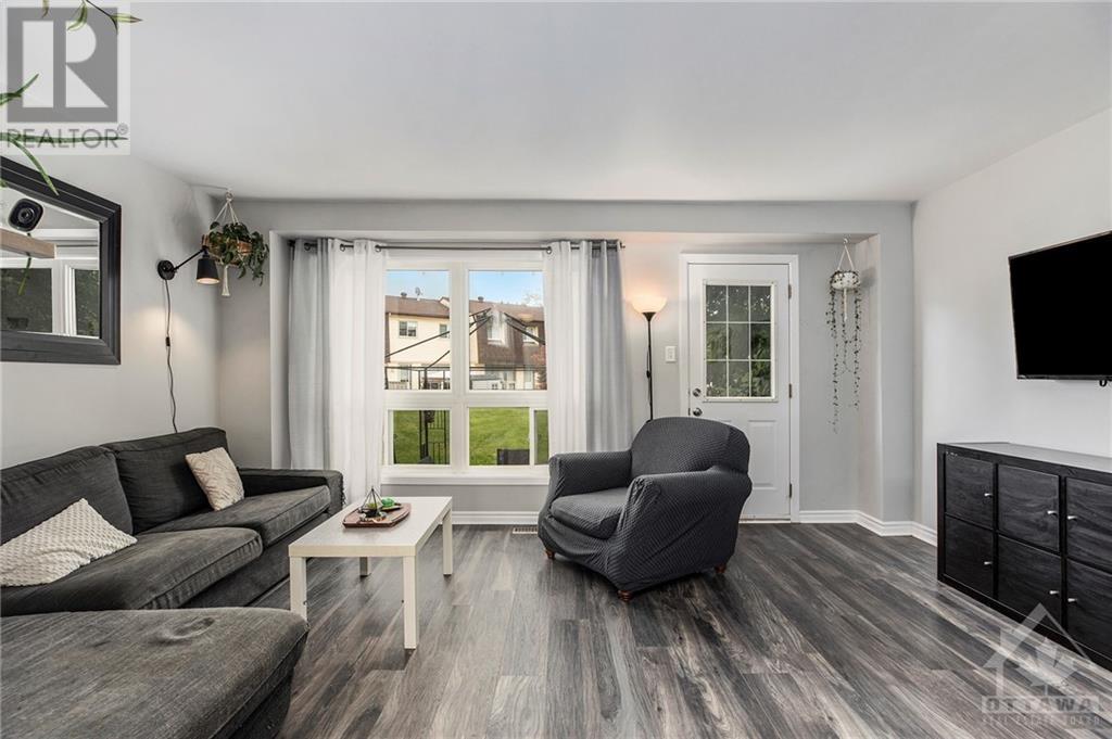 Welcome to this fully updated three-bedroom townhome, with low condo fees. Updates include the entire kitchen, both bathrooms, flooring, windows, doors, furnace, AC. Freshly painted throughout, this home is ideal for first-time buyers, ‘right-sizers’ or investors. The main level features an inviting foyer, an updated powder room and a well-appointed kitchen with all appliances included. Bright and spacious open-concept living & dining room. The second level features a primary bdrm plus 2 additional bedrooms and a renovated full bath. The lower level rec room is fully finished with plenty of storage space. 1 parking incl. Situated in a family-oriented neighborhood close to parks, public transit, amenities and DND Headquarters. Ideally located in close proximity to 40kms of NCC hiking and biking trails and to an upcoming LRT route. Come enjoy the many amenities Bells Corners has to offer! Quick and easy access to either Hwy 416 & Hwy 417. A must-see! (id:22211)