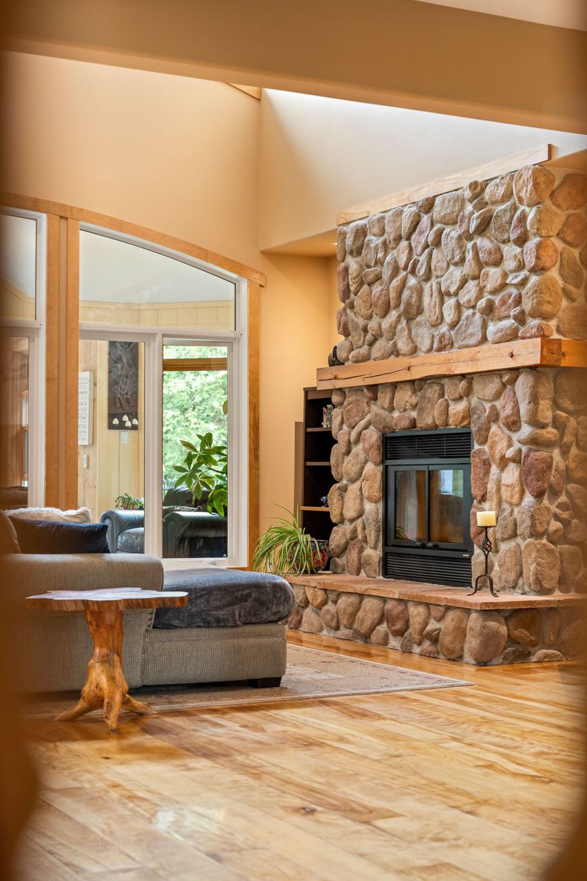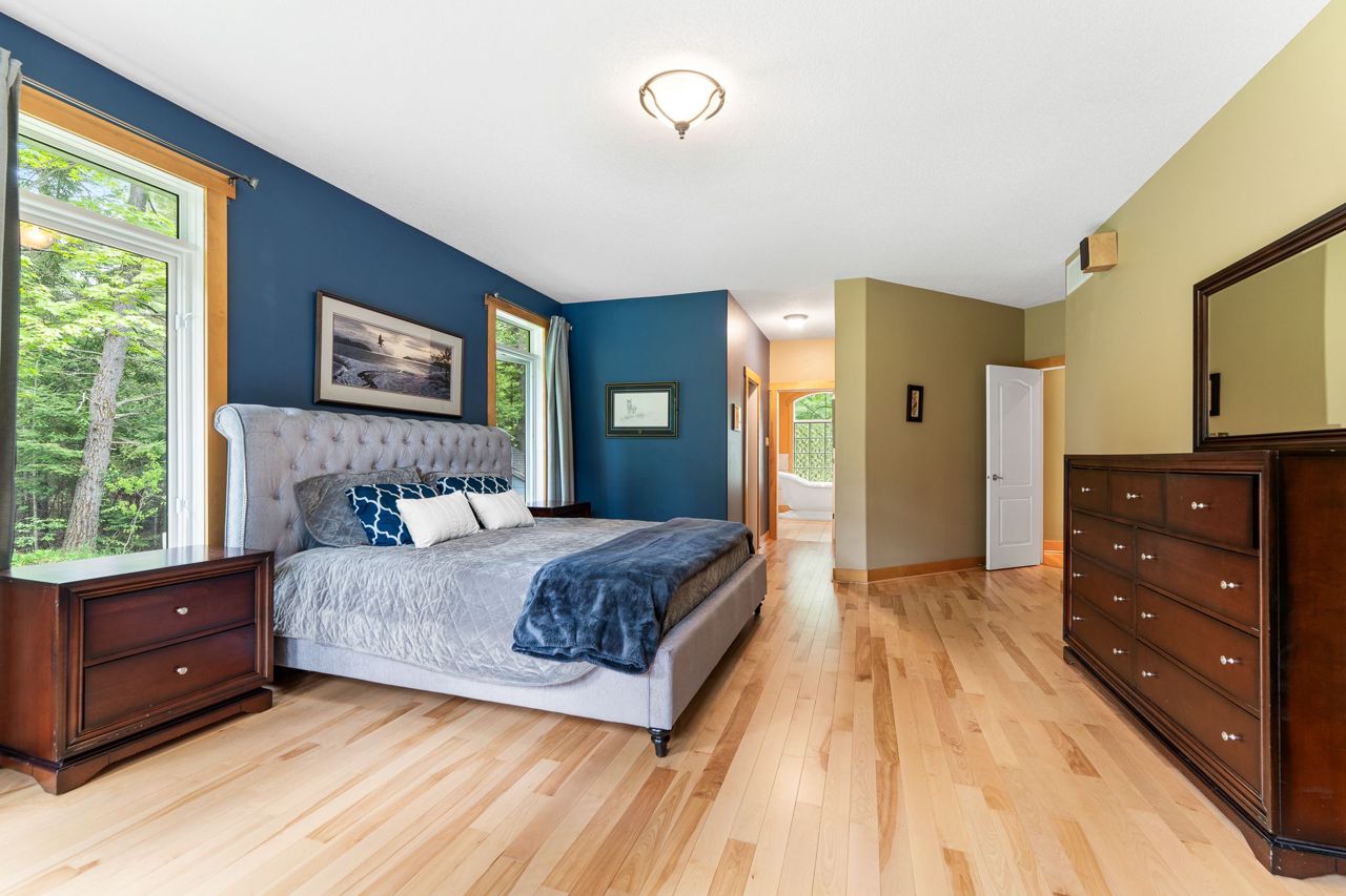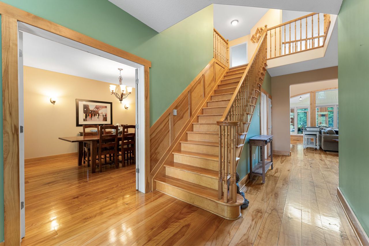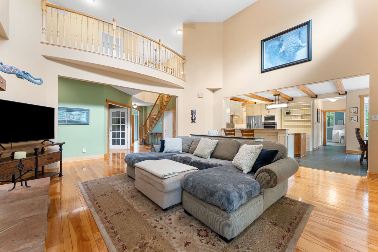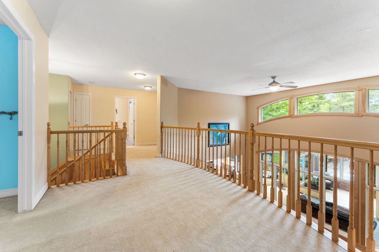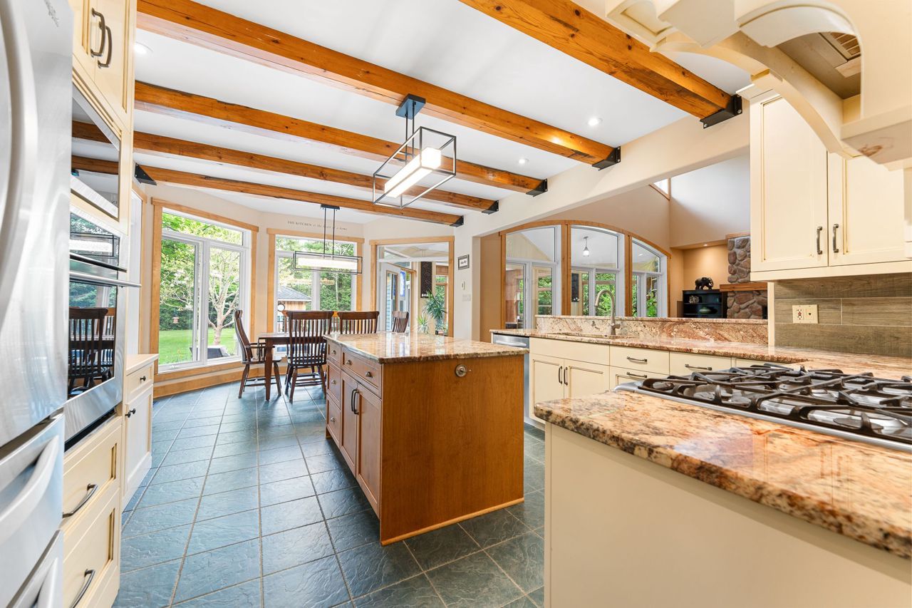 Forest-Inspired Masterpiece in the Heart of Nature and Luxury.. If your heart longs for the rustic charm of a wooded retreat and the serenity of a forested landscape, prepare to fall in love. This breathtaking estate captures the essence of refined, nature-inspired living without sacrificing convenience. Nestled on a private, tree surrounded 5.5-acre sanctuary just 10 minutes from shopping and all amenities, this custom-designed home offers a rare blend of seclusion and sophistication. Thoughtfully crafted for the discerning homeowner, the soaring great room features a dramatic two-story fieldstone fireplace and postcard-worthy views. Overlooking it is a chefs kitchen with top-tier cabinetry, granite countertops, and premium tile flooring ideal for entertaining or everyday indulgence. Elegant reclaimed wood beams, hewn from century-old timbers recovered from the Ottawa River by Logs End, lend timeless character to the principal rooms on the main level. The modified center hall plan flows into a grand den/office and formal dining room. Main-level primary suite is a tranquil retreat with panoramic forest views, a luxurious ensuite, and unmatched privacy. Year-round relaxation awaits in the bright solarium or sunroom, both overlooking the solar heated 9-foot-deep saltwater pool a true backyard oasis. Upstairs, three spacious bedrooms offer comfort and privacy and include Juliette balcony overlooking main living area. Open-concept, finished lower level adds versatility: home gym, custom wine cellar, designer bar, and stylish powder room perfect for entertaining or unwinding. Crafted with uncompromising quality and set in a location that feels worlds away yet minutes from everything, this exceptional home invites you to experience mountain-inspired luxury like never before.