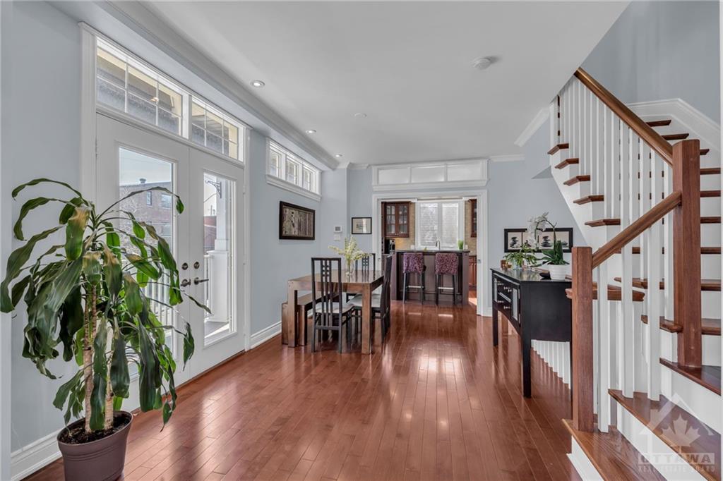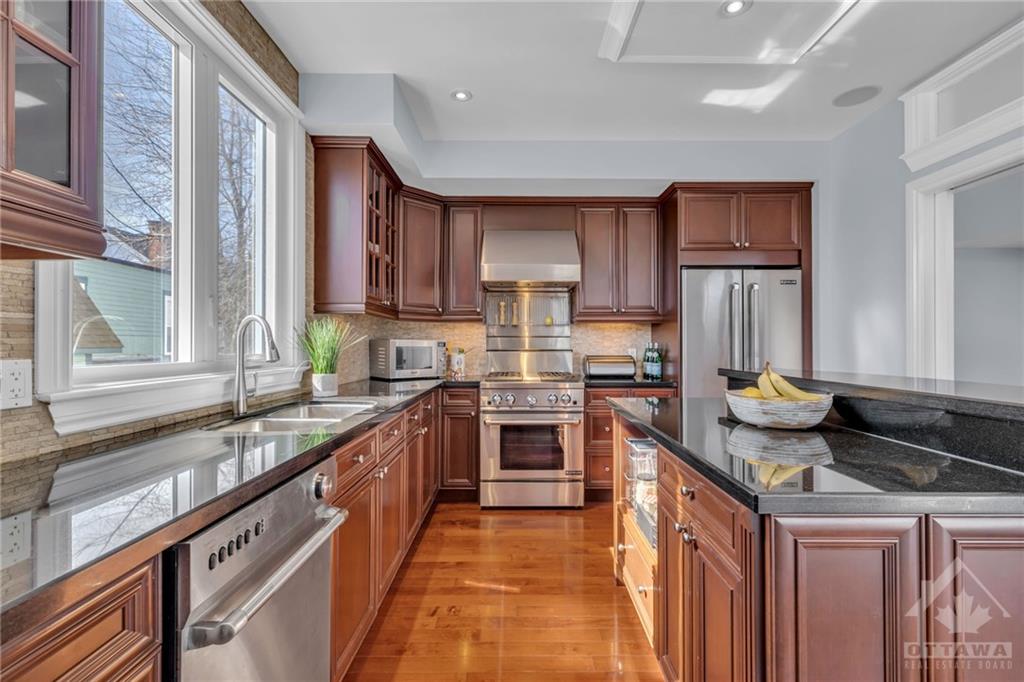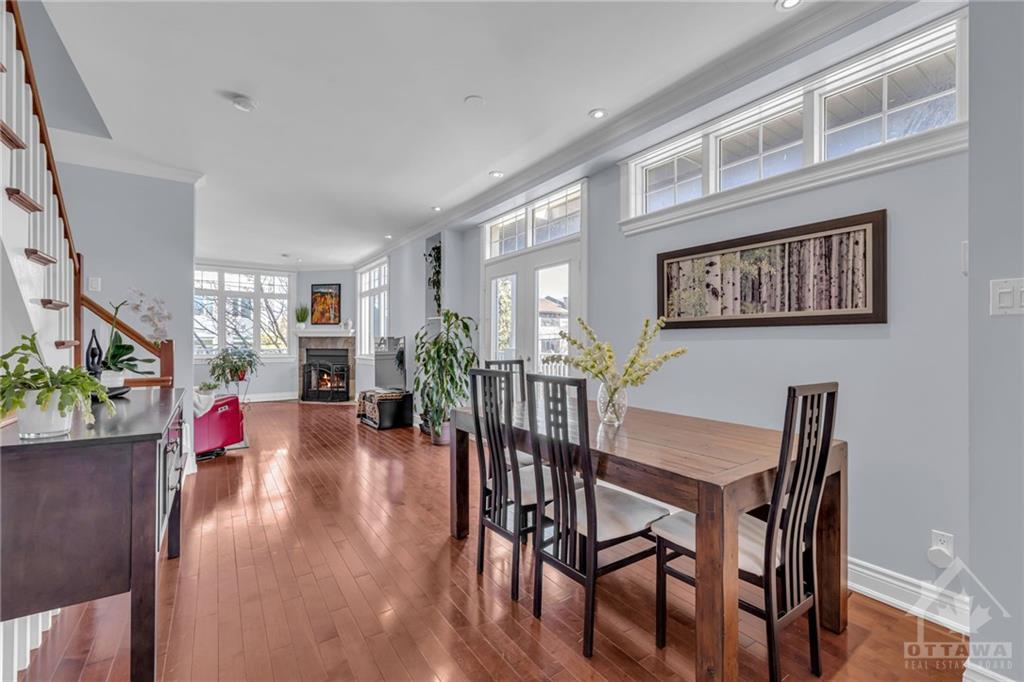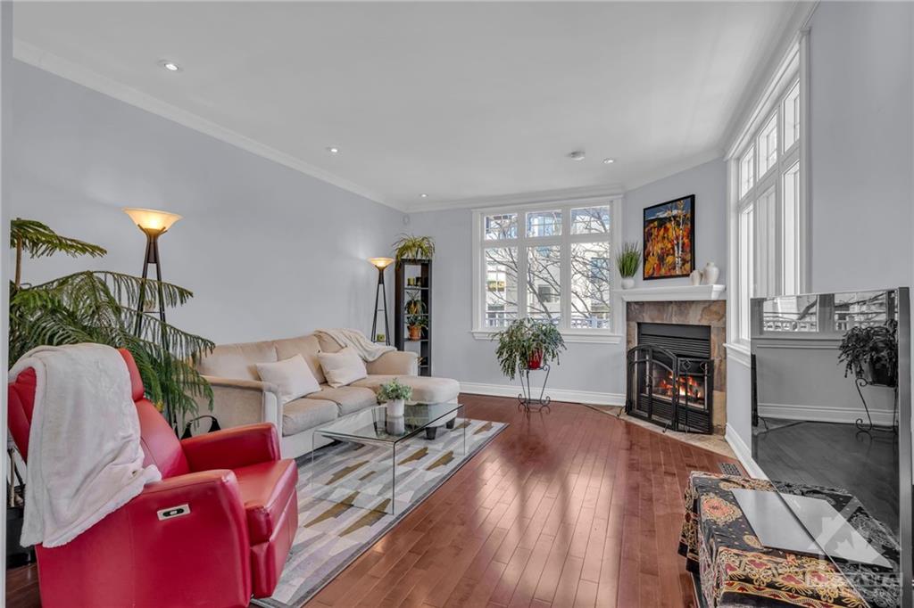 Location, Location, Location! This stunning 3 story, 3 bed, 2 bath, freehold ex townhome stands out, nestled just a stone's throw away from the prestigious Rideau Canal. A short walk leads you to the Rideau Centre, Lansdowne, NAC, UO, and all the best that downtown Ottawa has to offer. Additionally, the easy access to HWY 417 ensures swift travel throughout Ottawa. The home features outstanding craftsmanship & a distinctive design, including a grand foyer, an inviting living room w/a cozy fireplace, a dining area ideal for entertaining, & a contemporary kitchen w/stone countertops, a breakfast bar, Jenn-Air s.s. appliances, + chic French doors that open to a spacious wrap-around deck. The primary bed serves as a sanctuary w/its own fireplace & ensuite bath; the property also offers generously sized additional beds & another full spa-like bath; a ground-level family room holds potential for conversion into a secondary income suite; + an oversized garage for bicycles, canoes, & more.
