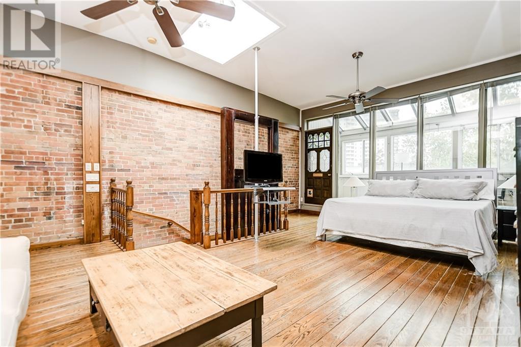 This beautifully maintained red brick 3 storey row house is situated in historic Sandy Hill on a quiet, tree-lined, residential street. On the main floor, this home features an open concept living/dining room, with large eat in kitchen, powder room, and patio with retractable awning. Second floor features a bedroom with 3-piece ensuite, two more well sized bedrooms and a full bathroom. The Primary bedroom is located on the 3rd floor and features high ceilings, exposed brick, a covered solarium with full wet bar, and a 3-piece ensuite. On the lower level, has a large family room, den/laundry room, and a 3-piece bath plus sauna. Full of unique design features, like original panel, wood guillotine door and conveniences like bathrooms on all 4 floors. An easy walk to restaurants and shops, close to the picturesque Rideau River, spacious parks and gorgeous cycling/hiking paths, this house is sure to delight. Currently tenanted with a month to month lease at $3744 per month. (id:22211)