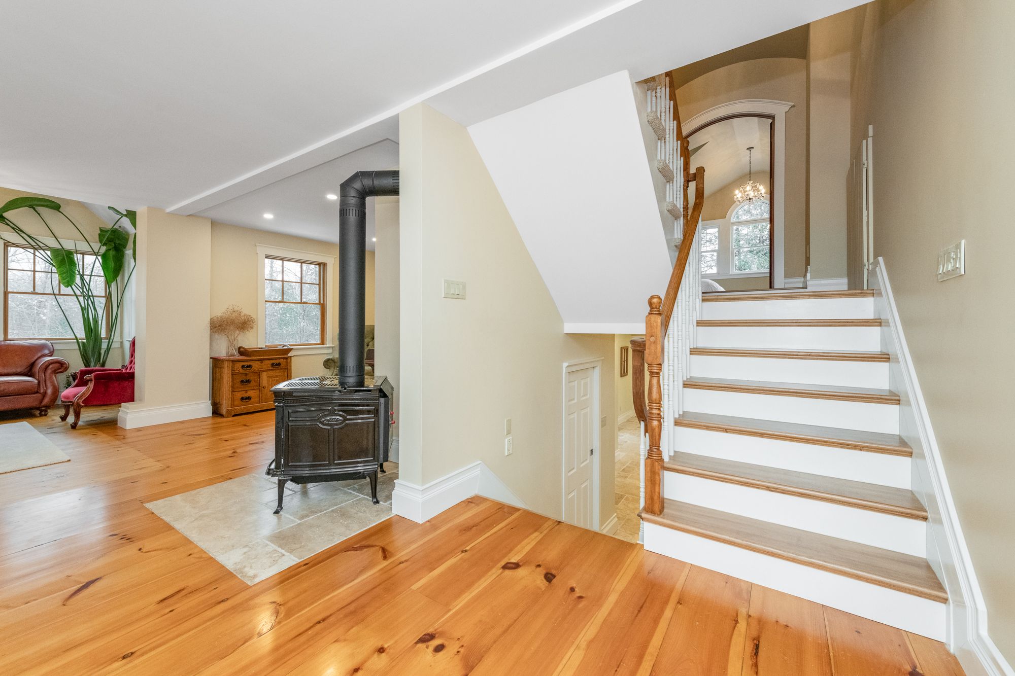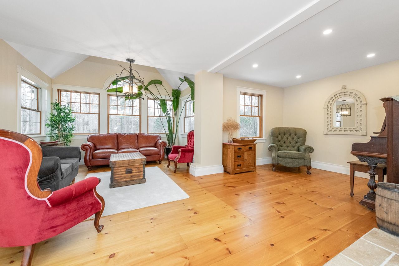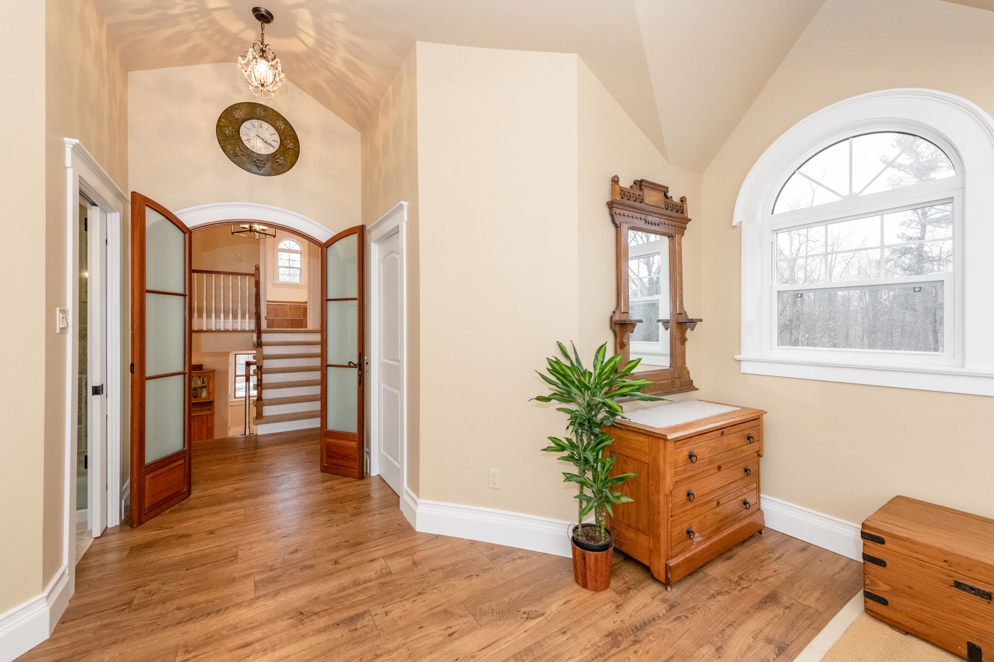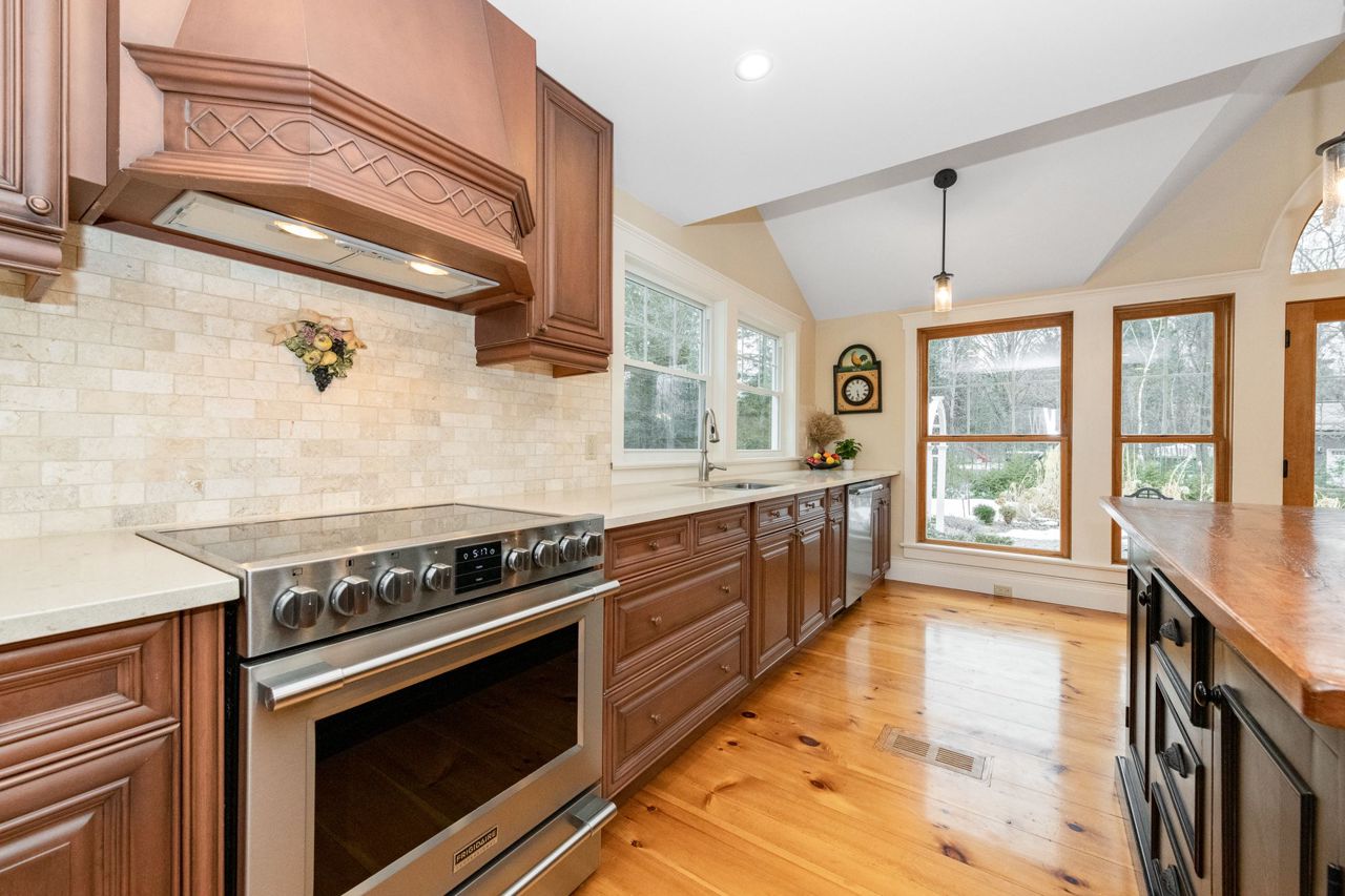 exquisite upgrades & architecture. Vaulted ceilings, custom milled hardwood planks, luxurious lighting, contemporary fixtures, custom maple cabinetry, quartz &