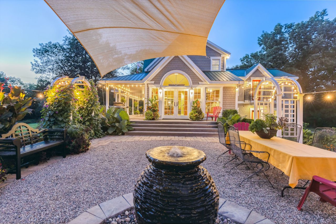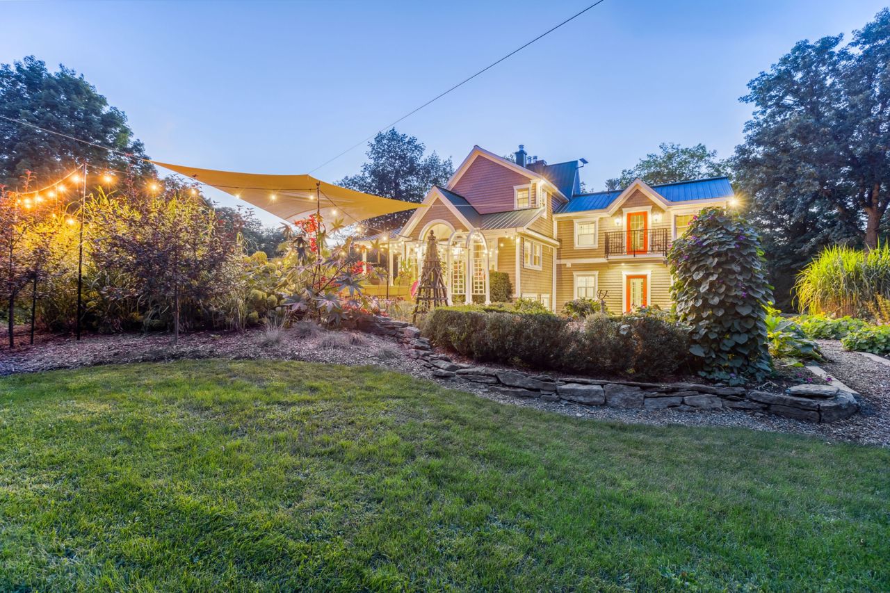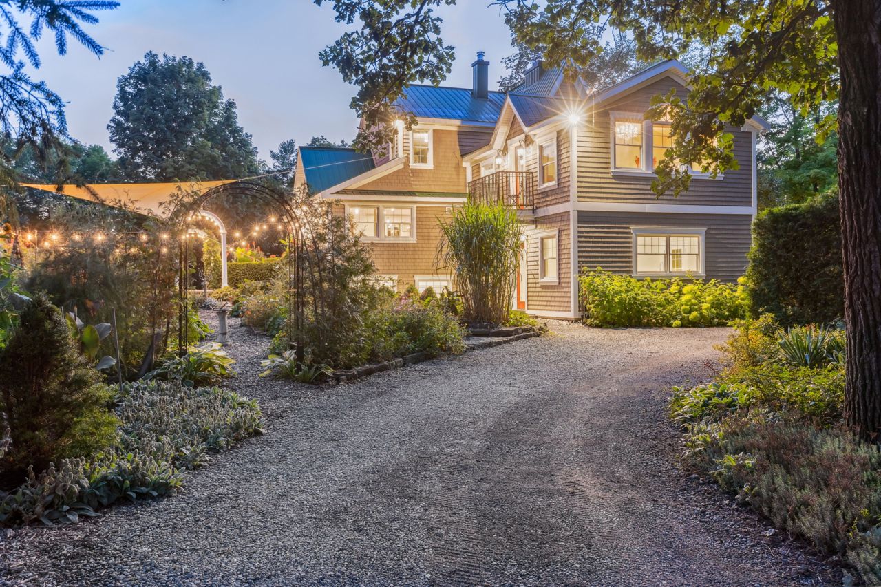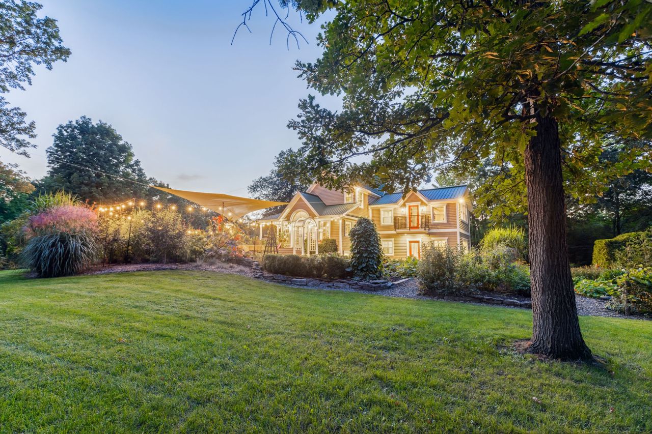 guest suite, ideal for exercise & entertainment. Outdoors, a storybook setting & deep front porch, sand beach volleyball court, ice rink on bedrock, large fire pit, maple