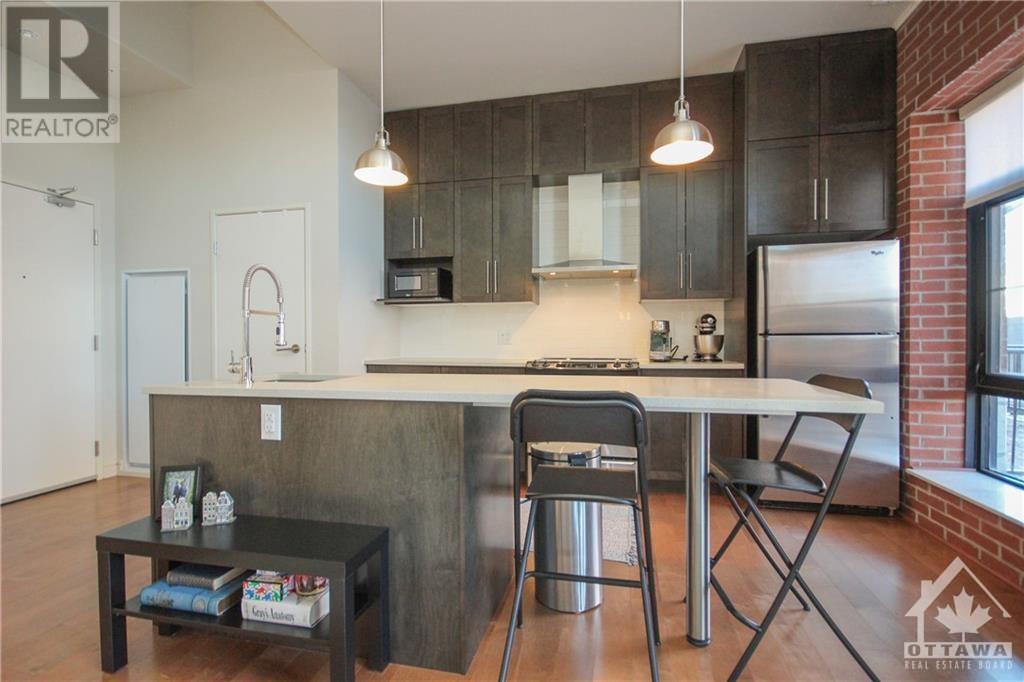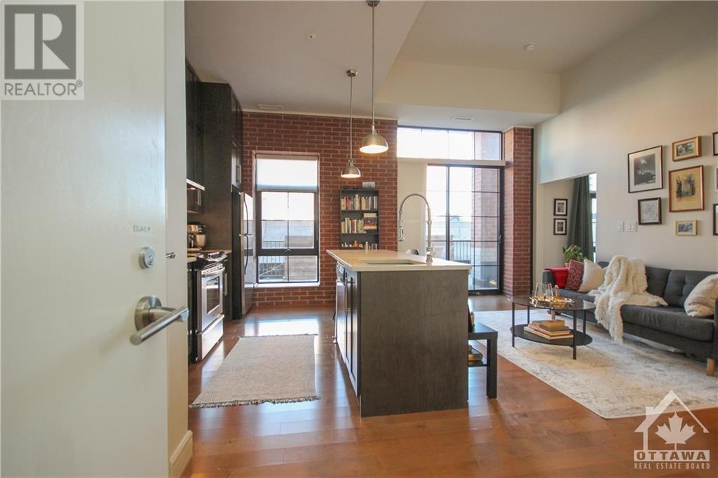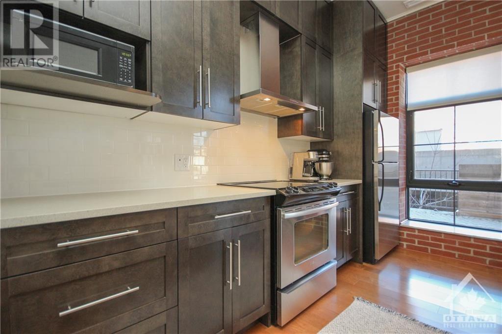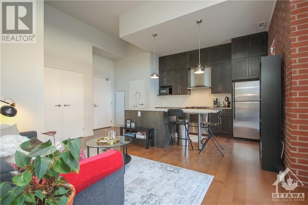 Welcome to 108-555 Anand Pvt., located at the Legendary Warehouse Lofts in Riverside Park South. This spacious 1 bedrm ft. an open-concept layout, hardwood throughout, in suite laundry, a spacious walk-in closet & luxurious glass shower. The beautiful custom kitchen includes quartz counters w/ an 8ft island, s.s. appliances, & ceiling height upgraded cabinetry w/ pull out drawers. Floor to ceiling windows offer an abundance of natural light w/ 12ft high ceilings & brick accent wall to make your space feel cozy & full of character! Relax outdoors on your 263 sq.ft. terrace ft. a nat gas BBQ hookup! This building truly has it ALL – a spacious private party room, fitness center – incl. 1 underground heated parking space. Conveniently located by city transit, Carleton University, South Keys shopping center, Mooney’s Bay Beach, bike paths & so much more! (id:22211)
