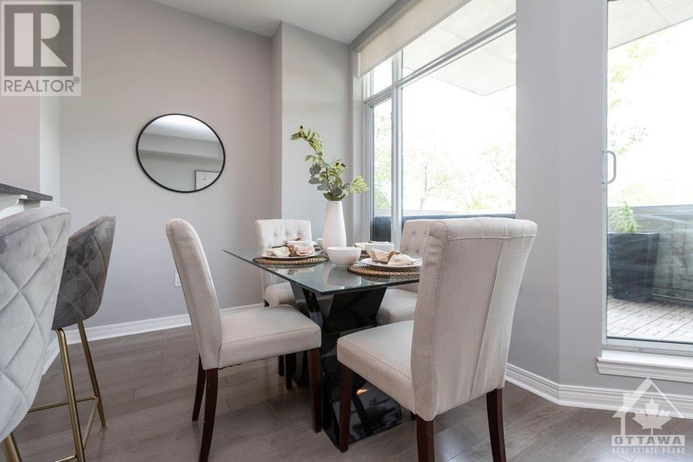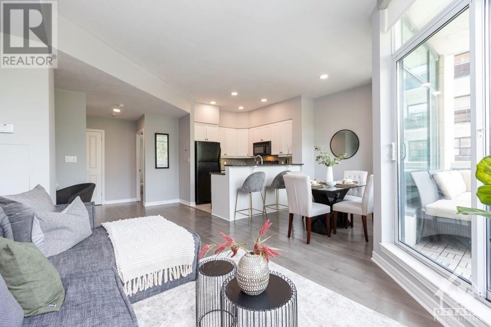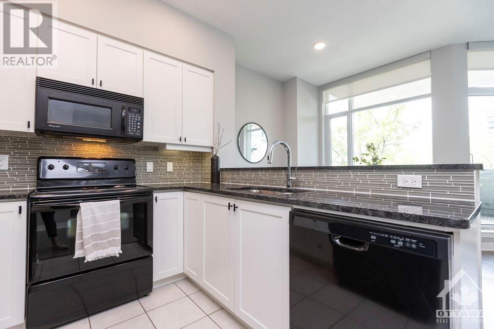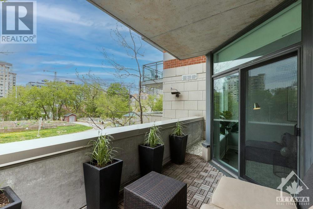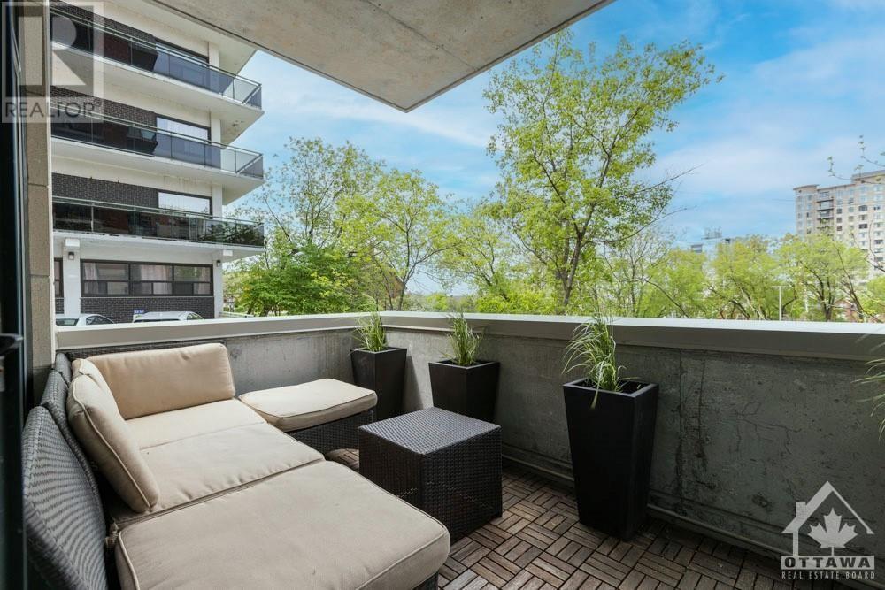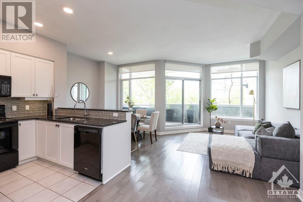 Luxurious Richcraft-built condo, incredibly spacious & smartly laid out 790 sq ft gem. Bright white kitchen ft gorgeous granite countertops & eat-up breakfast bar. Full-sized dining area, perfect for entertaining. Built in office space makes wfh a dream. Open concept space, abundance of natural light w floor-to-ceiling windows. Expansive primary bdrm offers ample closet space & cheater ensuite. Beautiful wide planked engineered hardwood & tile throughout. Outdoor terrace overlooking greenspace & surrounded by mature trees. Enjoy exclusive access to building’s well managed amenities incl fitness centre & lap pool on the same floor, and guest suites. Fibre internet ready & condo fees incl heat & hot water. Immaculately maintained w many updates throughout. Effortless city living w an owned parking spot and locker (exclusive use) included. Steps away from Parliament, Byward Market, Preston St, and LRT. Experience condo living in the heart of the city! (id:22211)