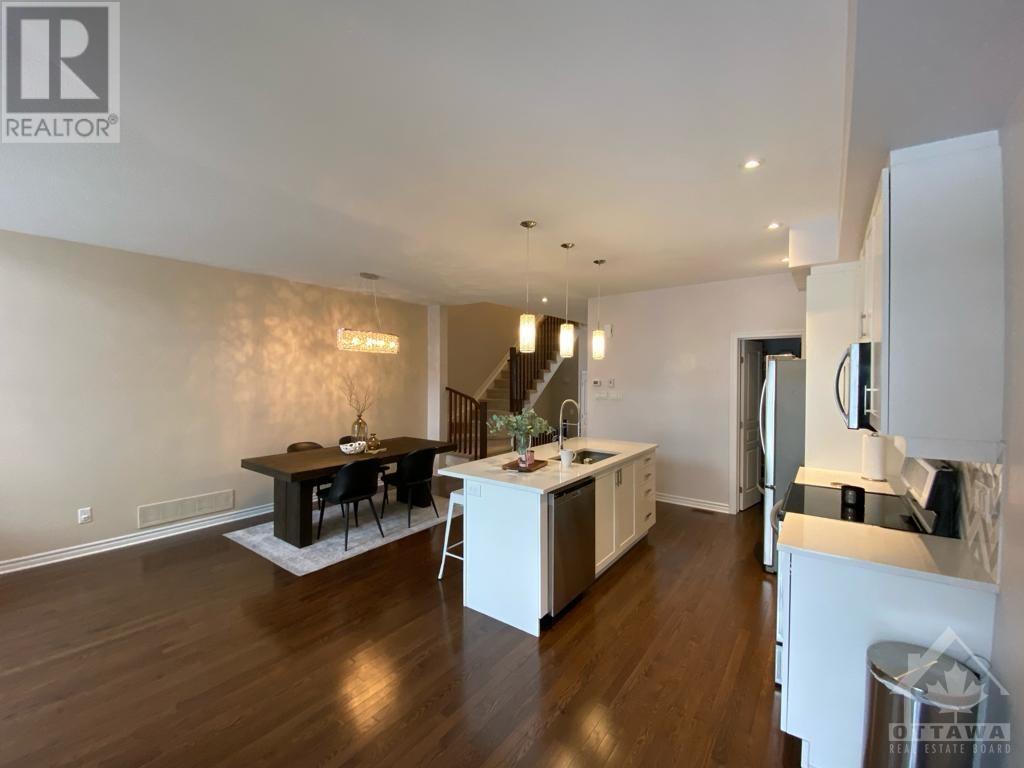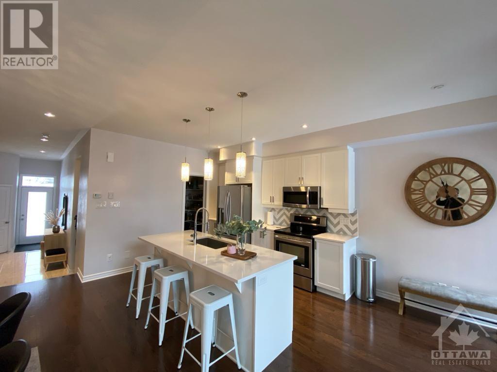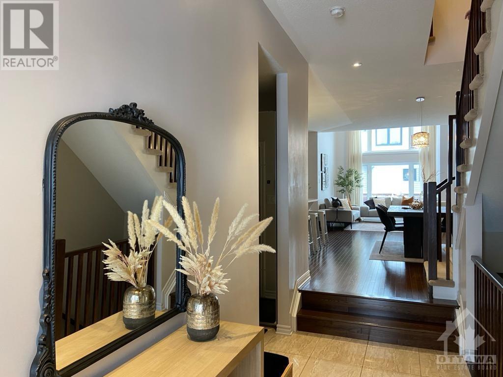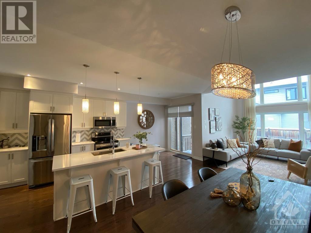 Nicely upgraded town house in Riverside South by Urbandale, the Champlain II. Main floor welcomed by a bright and inviting Foyer, upgraded hardwood floors, spacious Living, Dining rooms, main floor elegant gas fireplace. Gourmet Kitchen with granite countertops, large island, stainless steel appliances & pantry. The upper floor has 3 generous sized bedrooms; bright and spacious Primary Bedroom with a walk in closet and a luxury 4-piece ensuite, 2 good size secondary bedrooms, second floor laundry room. Earth tone colors, move in condition. Not to be missed. More than 2000 sqf, Minutes to Vimy Memorial Bridge, easy commute to work and all amenities. (id:22211)