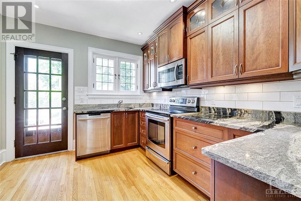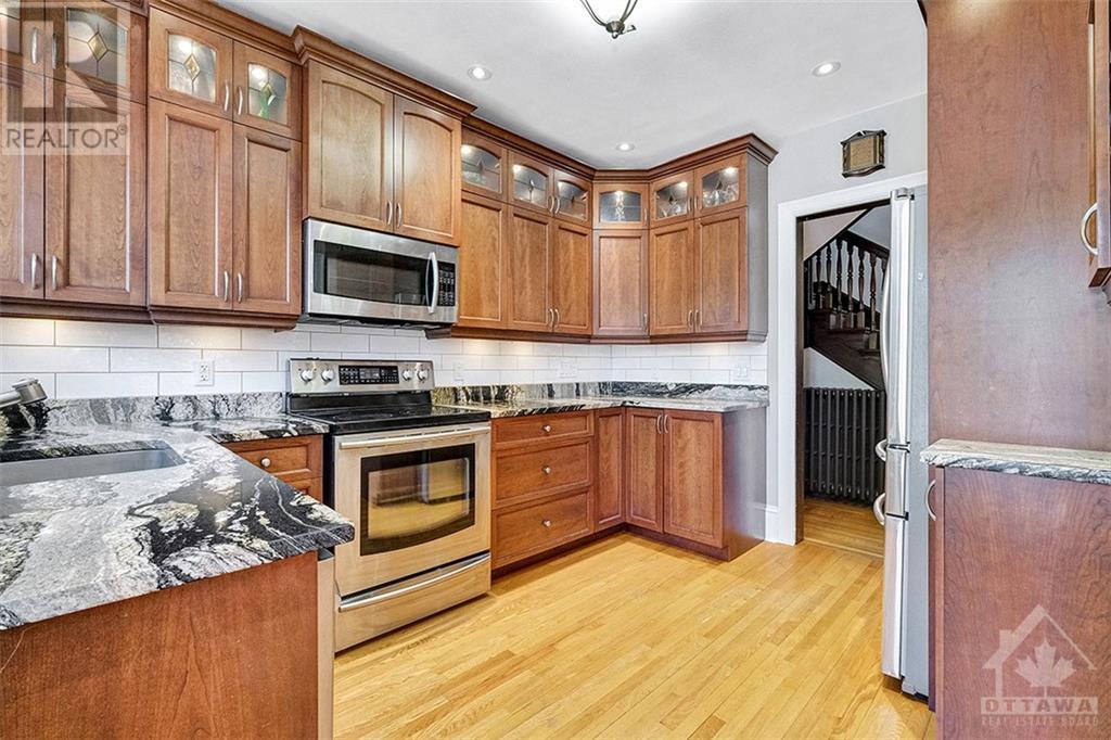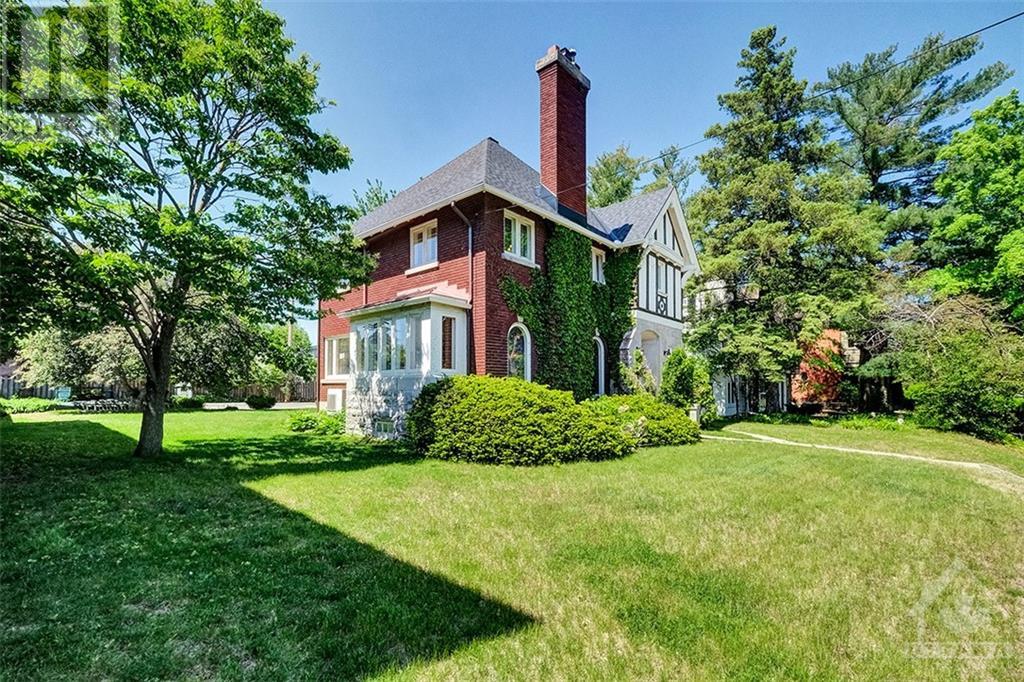 Exceptional landmark home boasting stately architectural features and a charming blend of brick, stone, and Tudor-style elements. The home features cove moldings, leaded glass windows, and beautifully arched door and window frames. The interior features stunning oak trim and floors throughout. This spacious residence offers generously sized principal rooms, providing an ideal setting for modern family living. With 3 bedrooms, 3 bathrooms, and a finished basement. New back deck, great for family dinners or entertaining guests. Other updates include a split AC 2023 second level 2012 main, Deck 2023, a renovated kitchen, updated bathrooms (3 in total), roof 2015 with 50-year shingles, boiler and hot water tank 2021, front rail and walkway 2023. This stunning home is situated on a generous 75' x 139' lot. The detached garage and parking are accessed from the city lane, off of Echo Dr. with easy access to Bank St, Lansdowne, the canal. (id:22211)