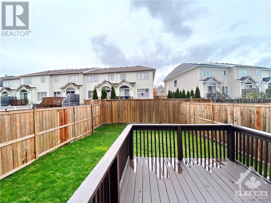 End Unit Barrhaven Townhouse 3 Bedroom and 3 Bathroom, the kitchen has stainless steel appliances, granite countertops, and a breakfast nook. Beautiful circular stairs with large window. Three spacious bedrooms upstairs with a large master bedroom and walk-in-closet and 4 piece ensuite, the large basement is finished and has a fireplace and large window. The backyard is fully fenced and has a good-sized deck. Appliances: Stove, Fridge, Range Hood, Dishwasher, Washer and dryer all included, very quiet neighbourhood. Walking distance to Barrhaven Marketplace (Walmart, etc), groceries (Metro, Farmboy, Freshco, Walmart, Shoppers Drug Mart), schools (Berrigan, Longfield Davidson Heights, etc). Closest park is less than a 5 minute walk. It 's available Nov. 1st., 2023. Thanks. (id:22211)