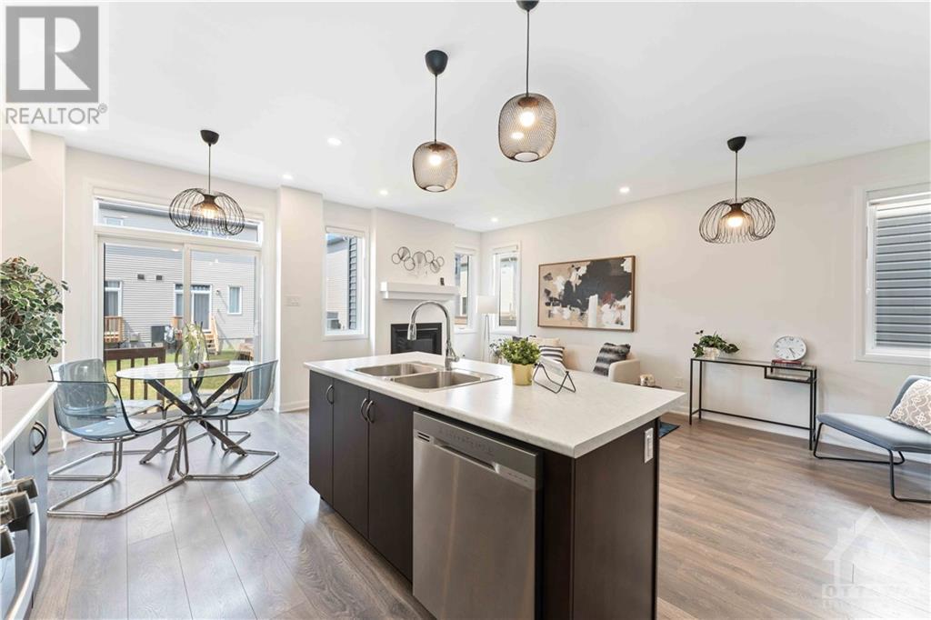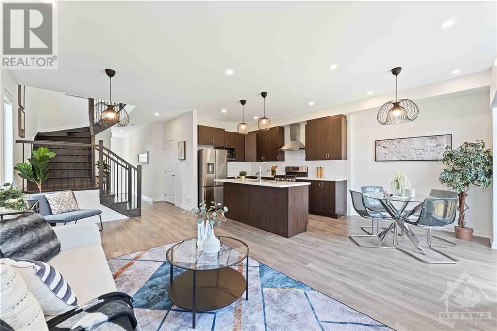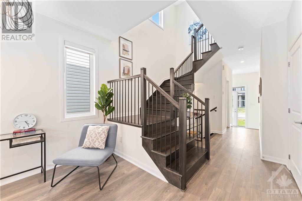 Welcome to your dream home! This stunning 4-bedroom end unit townhome is ideally located in the Minto Harmony neighbourhood. You'll be greeted by a welcoming foyer as you step inside. The main floor boasts a generous 9 ft ceiling. Modern and open kitchen offers plenty of counter space, ample cabinet storage, and top-of-the-line appliances. Adjacent to the kitchen is a cozy living/dining area complete with a fireplace. The pot lights throughout the main floor ensure that every corner is well-lit. The 2nd floor offers four spacious bedrooms. The master bedroom is a true retreat featuring an ensuite bathroom and a walk-in closet. Fully finished basement features a spacious family room and a partial bathroom. The hardwood staircases add a touch of luxury, while the laminate flooring throughout all three levels offers durability and easy maintenance. This townhome is within proximity to parks, public transit, Marketplace shopping centre and Costco. (id:22211)