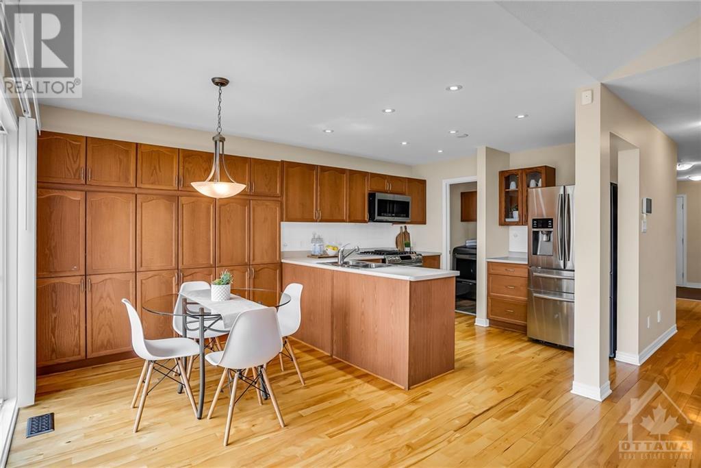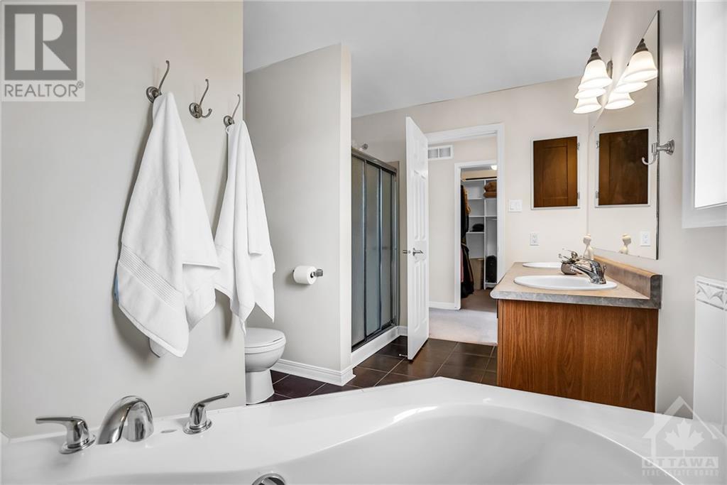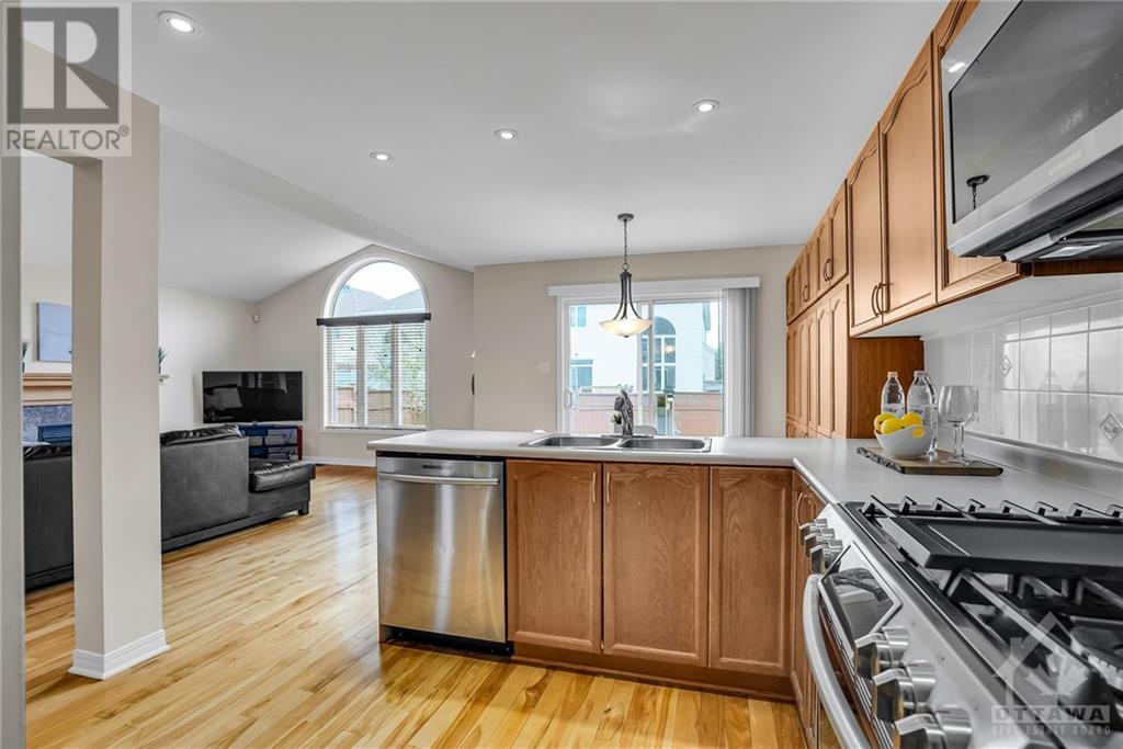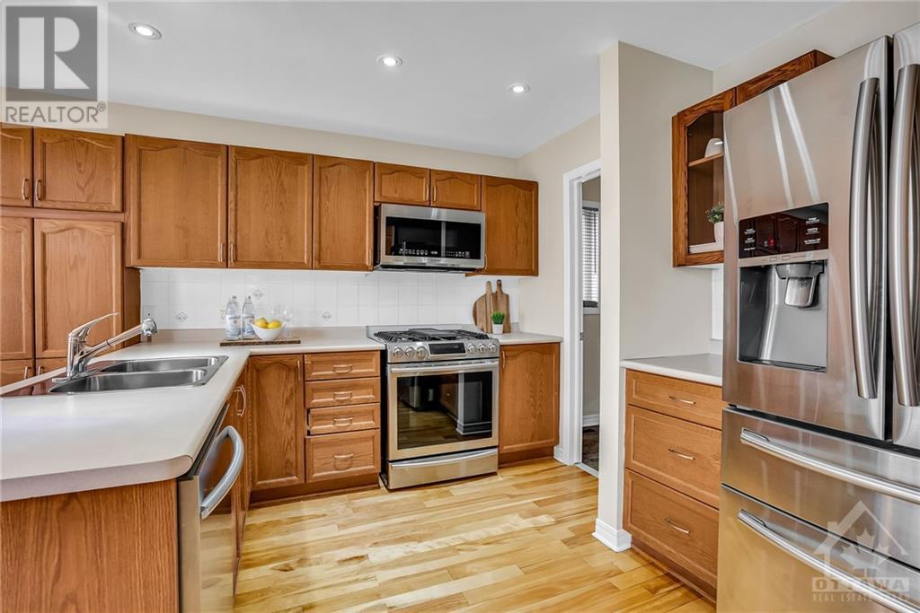 Welcome to the trifecta of real estate..location, price & condition! This 3 bdrm, 3.5 bath single is your opportunity to own a detached home. Every room in this home feels spacious! The large entry way has a walk in coat closet/mudroom. The living rm and dining rm are open & spacious. Through to the back of the house, you'll find the large family rm with a gas f/p, vaulted ceiling & large window. The kitchen has s/s appliances, a gas stove, eating area & a full wall of pantry cupboards. Upstairs you'll find a huge primary bdrm w/ vaulted ceilings, a stunning window, a large walk in closet & full ensuite w/ a soaker tub. Two more generous size bdrms & a full bath round out the 2nd floor. This home also offers a fully finished bsmt w/ a full bath, large rec rm w/ a wet bar. The yard is fully fenced w/ a cute patio. This home is located near Ottawa's high tech hub! Close to schools, parks, amenities and shopping, and minutes to HWY 417! No conveyance of offers until 3:00 pm Apr 30/23. (id:22211)