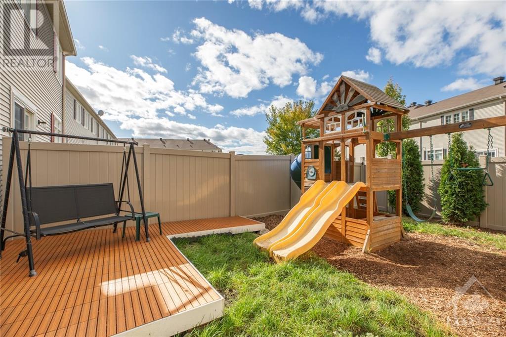 Welcome to 874 Kennacraig Private - this 3 bedroom, 3.5 bathroom open concept home is bright & spacious; with 9' ceilings on the main floor. This Monarch - "Highlands" model was freshly painted throughout ('23), with new carpet (stairs '23), new vinyl flooring on 3 levels ('23), and tile in the kitchen, eat-in-kitchen, bathrooms, and foyer. The lower level offers a large storage room, laundry room, finished rec room, and 3-piece bath ('23). INCLUSIONS: Nest Thermostat, Ring Doorbell, Shelving in Garage, Auto Garage Door Opener, and Remote. The kitchen includes a stainless steel stove, fridge, dishwasher, granite countertops ('23) and extended upper kitchen cabinets. Fully fenced and landscaped backyard with composite deck and play structure. Less than a 10-min. walk from the Stonebridge Golf Course, Minto Rec Centre, Catholic/Public Schools, corner store & steps from transit - move to this turn-key townhome conveniently located in one of Ottawa's most popular 15-minute communities! (id:22211)