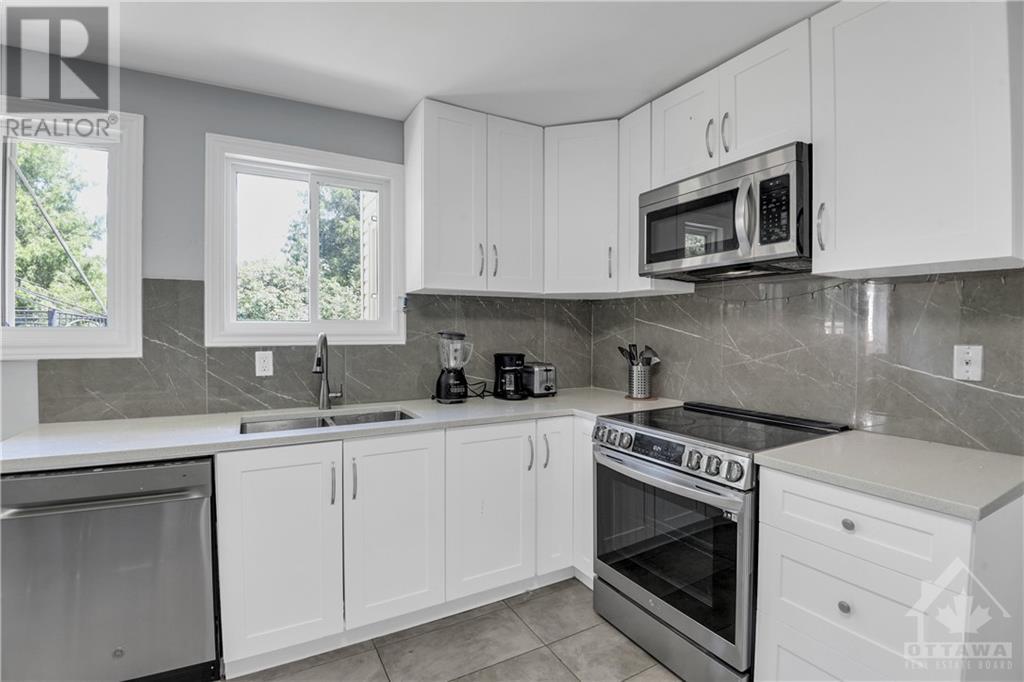 A detached, split level home on a generous lot in the desirable neighbourhood of Carson Grove. Enter into the home in the spacious living room with bay window. The main side of the home has been updated with modern laminate flooring throughout and has 3 bedrooms and 1 full bathroom. The kitchen is renovated with white cabinetry and space for an eating area. The side unit which could act as a nanny or in-law suite is 2 storeys, 2 bedrooms and 1 full bathroom. It also has its own washer/dryer in the unit. Garage is accessed from this second unit. Finished basement with full 3-piece bathroom. Convenient location close to St.Laurent mall, highway access, parks, transit, CSIS and La Cite Collegiale. Fenced backyard with ample green space. (id:22211)