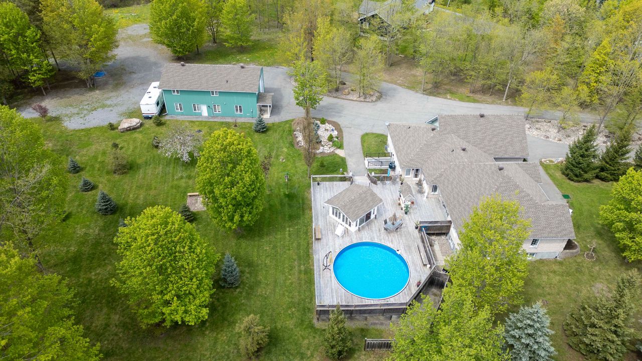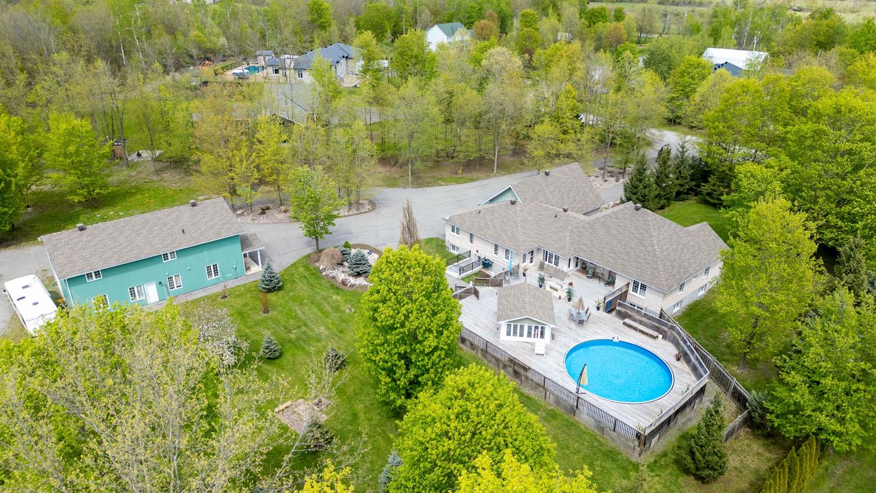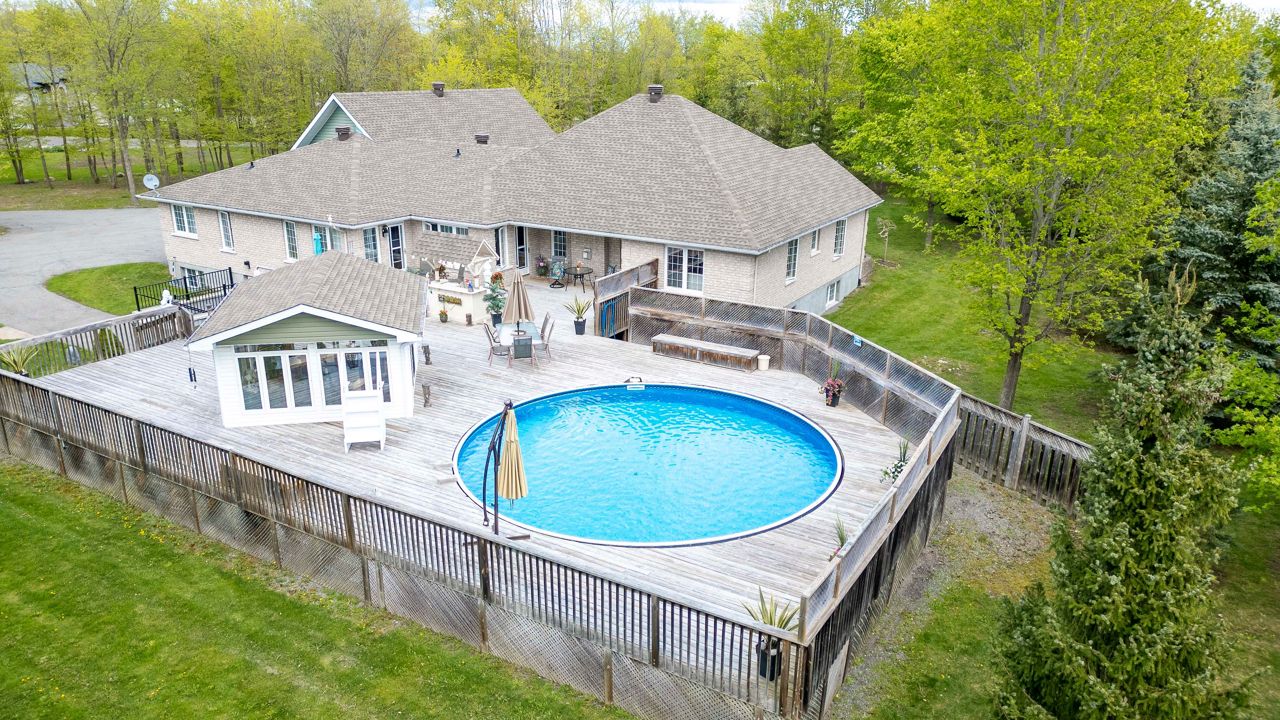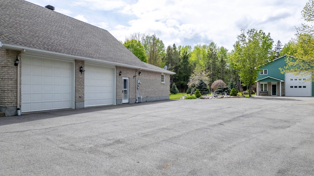 This marvelous 3 bedroom plus, Stone Bungalow, 4 bathrooms, is nestled on a 2 acre parcel of spectacularly landscaped grounds, no rear neighbours and backyard privacy. This home shows like a model home. Renovated kitchen and cathedral ceiling in living room. Walk-outs to a huge deck, Tiki Bar, a relaxing gazebo, and a pool. The lower level as a huge secondary area for either a kitchen or an office; a bedroom for guests or teenagers, and a bathroom. The entrance to this lovely estate, has wrought iron gates, and Victorian lamps, to welcome guests day or night. The Primary Bedroom is very large with an en-suite bathroom, and a walk-in closet. There is a huge metal-clad shop, that is 50 feet deep, 30.5 feet wide, and has 16 foot ceilings with a 14 foot high door in front, and an exit door of 8 feet high at th rear. The shop has an office, a 3 piece bathroom/laundry room, a summer kitchen, and a second floor mezzanine, of over 500 square feet. Think home business, or boy toys.**INTERBOARD LISTING: OTTAWA REAL ESTATE BOARD**