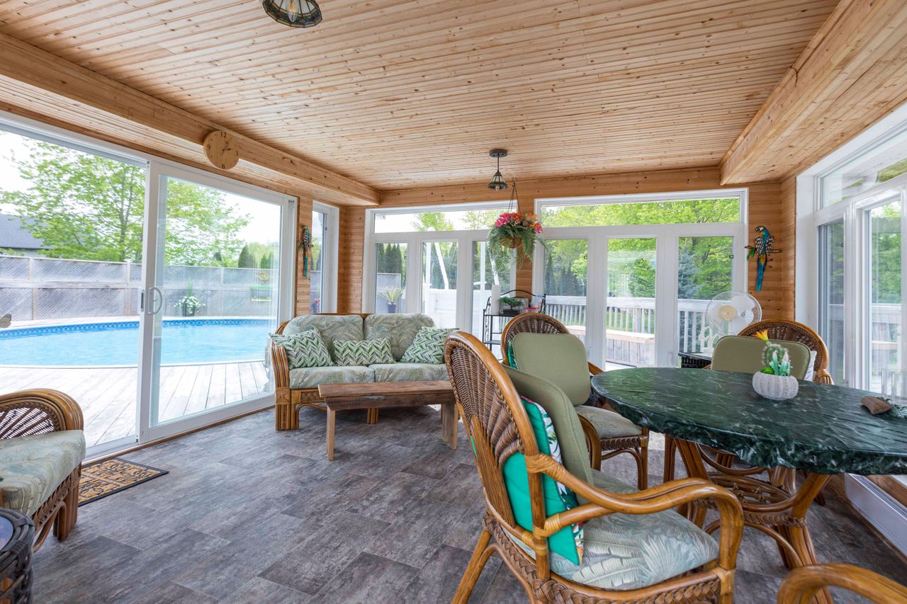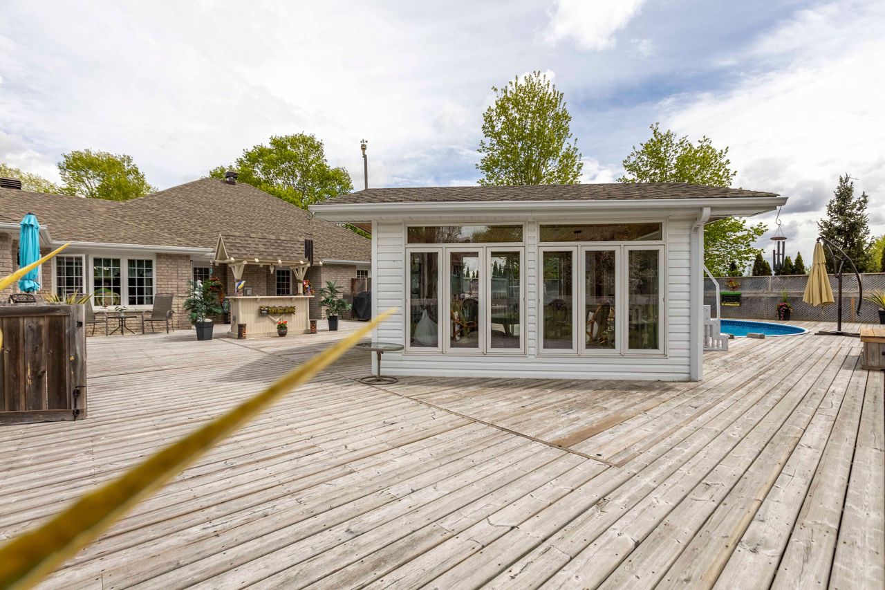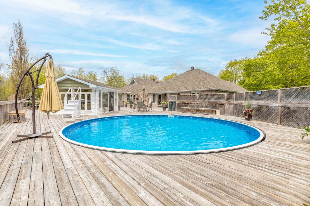 This marvelous 3 bedroom plus, Stone Bungalow, 4 bathrooms, is nestled on a 2 acre parcel of spectacularly landscaped grounds, no rear neighbours and backyard privacy. This home shows like a model home. Renovated kitchen and cathedral ceiling in living room. Walk-outs to a huge deck, Tiki Bar, a relaxing gazebo, and a pool. The lower level as a huge secondary area for either a kitchen or an office; a bedroom for guests or teenagers, and a bathroom. The entrance to this lovely estate, has wrought iron gates, and Victorian lamps, to welcome guests day or night. The Primary Bedroom is very large with an en-suite bathroom, and a walk-in closet. There is a huge metal-clad shop, that is 50 feet deep, 30.5 feet wide, and has 16 foot ceilings with a 14 foot high door in front, and an exit door of 8 feet high at th rear. The shop has an office, a 3 piece bathroom/laundry room, a summer kitchen, and a second floor mezzanine, of over 500 square feet. Think home business, or boy toys.**INTERBOARD LISTING: OTTAWA REAL ESTATE BOARD**