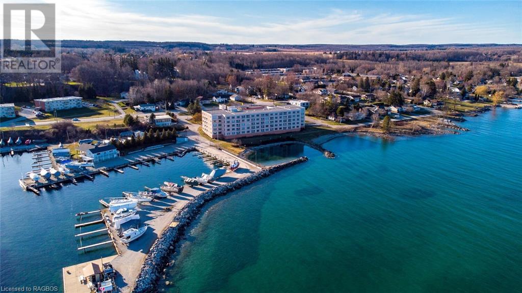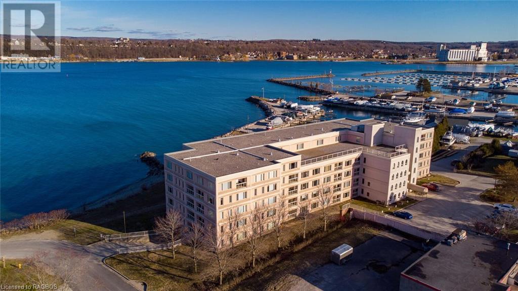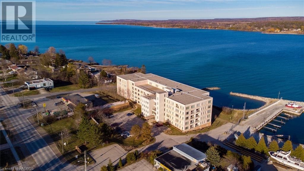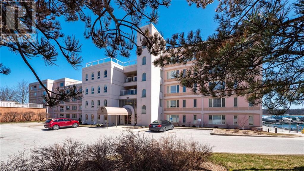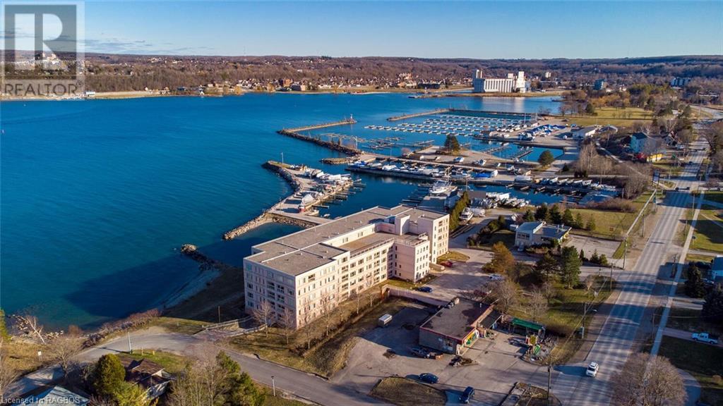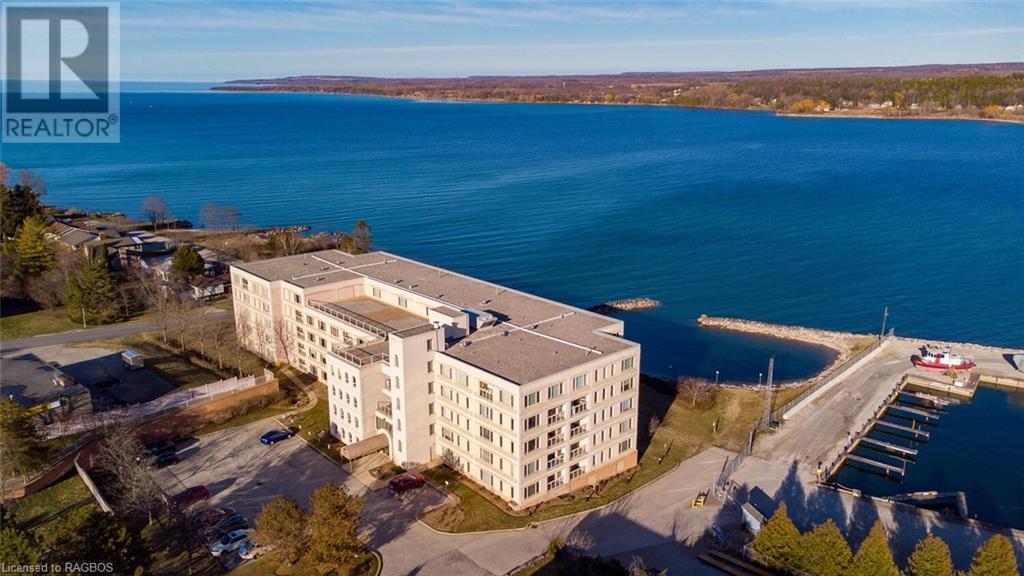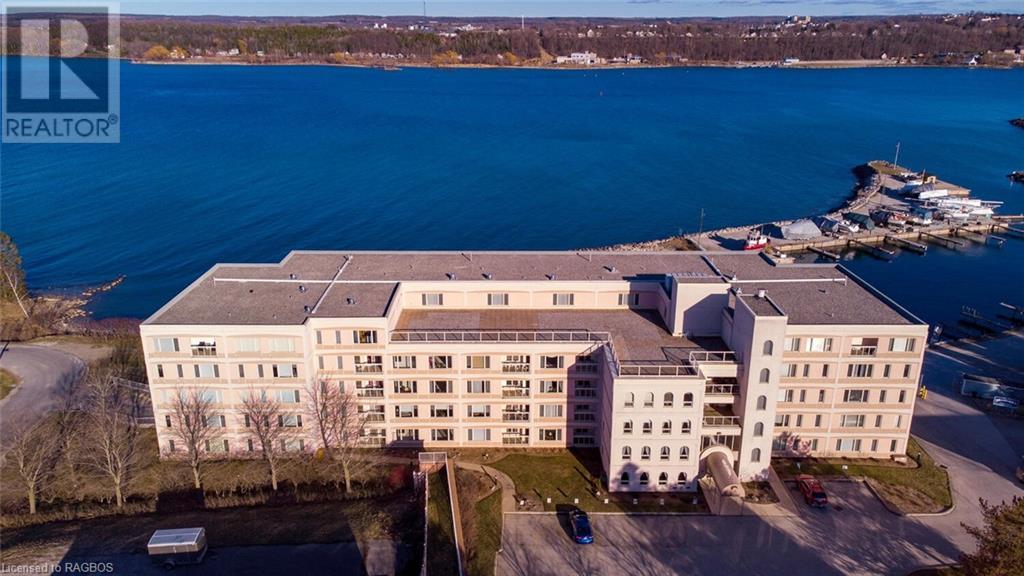 Spacious Ground Level 1 bedroom, 1 bathroom Condo now available in the Harbour Front Condominium. This beautiful building set on the shores of Georgian Bay, and located right next the Owen sound Marina, Is open Concept with a private balcony, Large Primary bedroom with walk in closet. Spacious kitchen, in Unit Laundry. This unit has access to all the amenities of the Corporation, the Library, exercise room and party/meeting room. New furnace in the unit 2022 (id:22211)