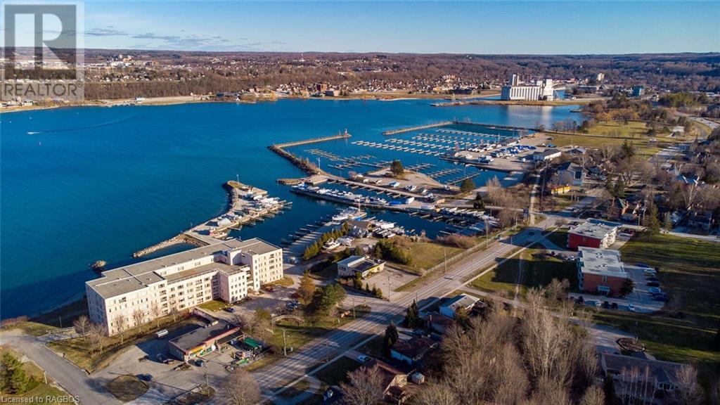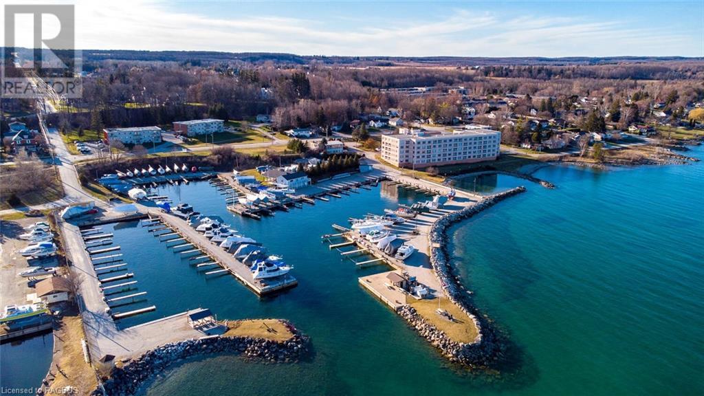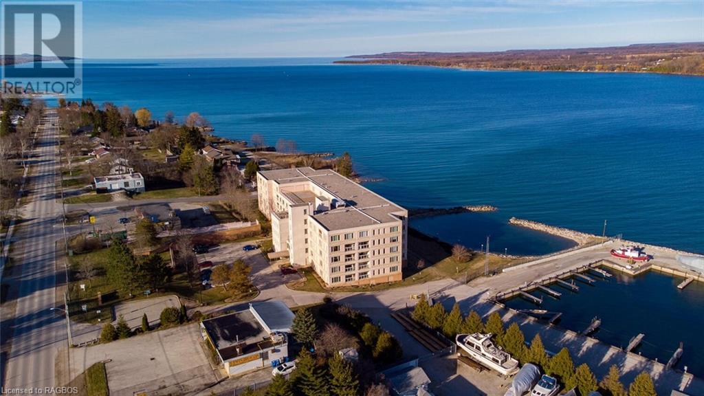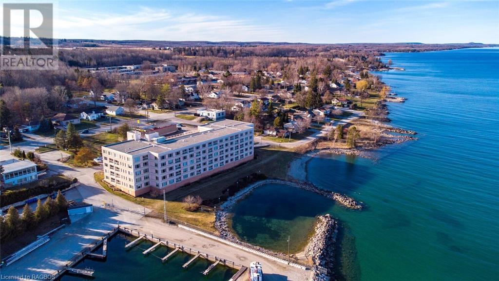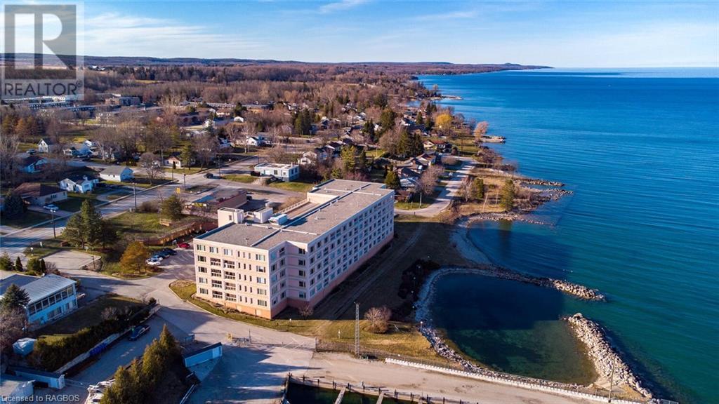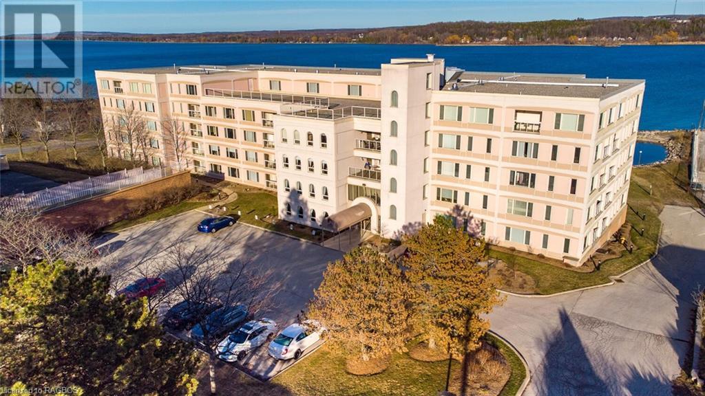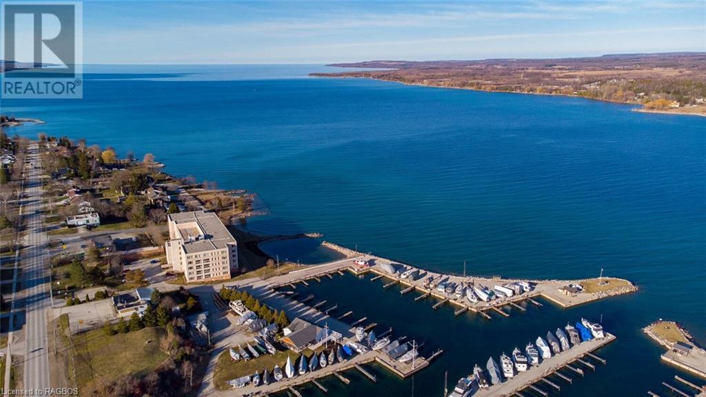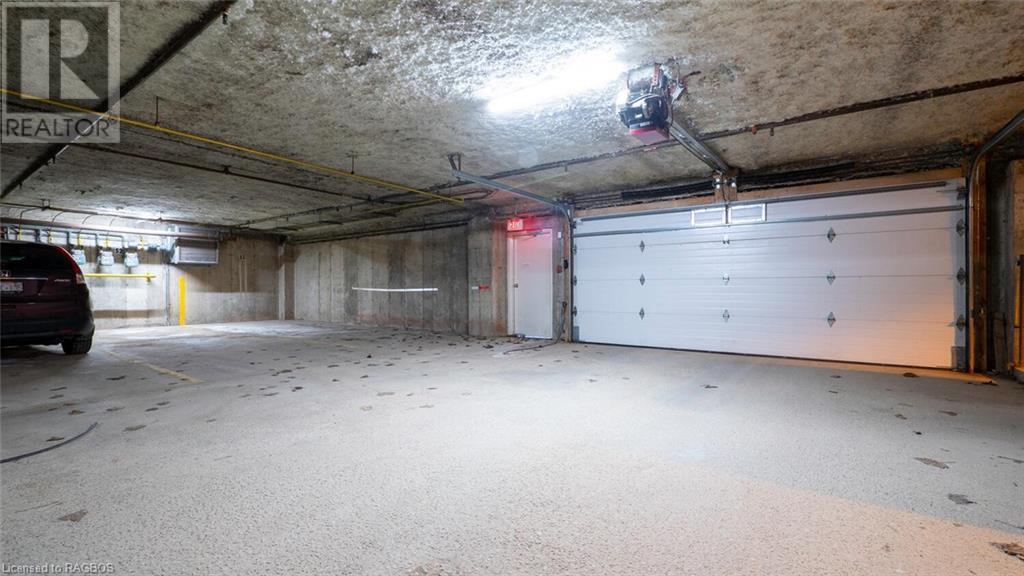 Spacious Ground Level 1 bedroom, 1 bathroom Condo now available in the Harbour Front Condominium. This beautiful building set on the shores of Georgian Bay, and located right next the Owen sound Marina, Is open Concept with a private balcony, Large Primary bedroom with walk in closet. Spacious kitchen, in Unit Laundry. This unit has access to all the amenities of the Corporation, the Library, exercise room and party/meeting room. New furnace in the unit 2022 (id:22211)
