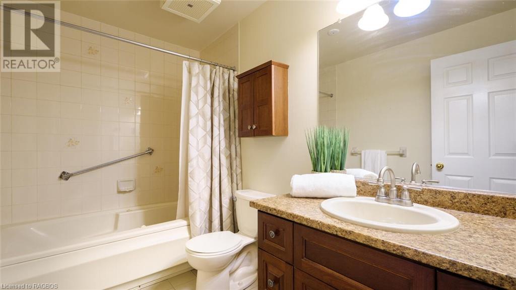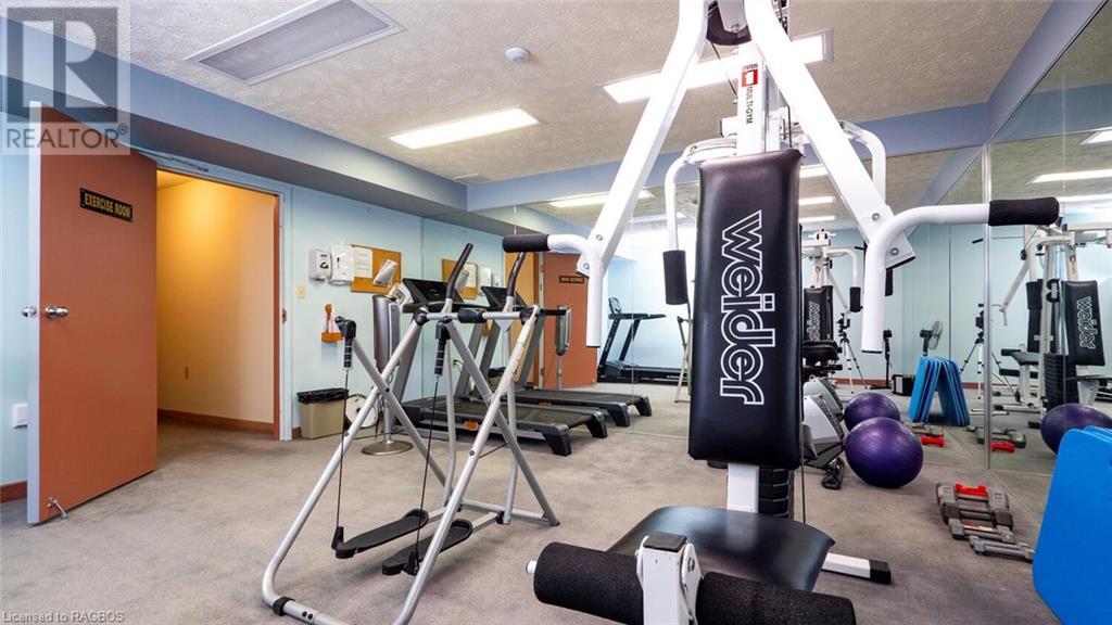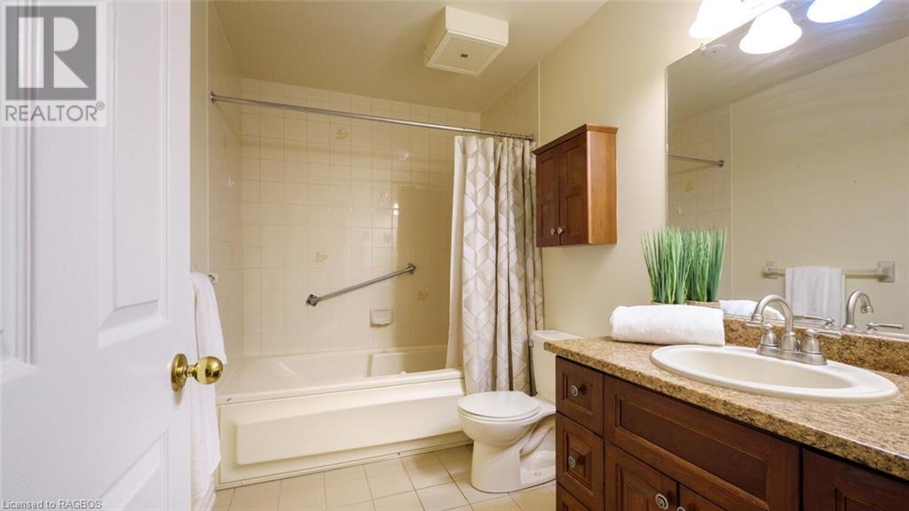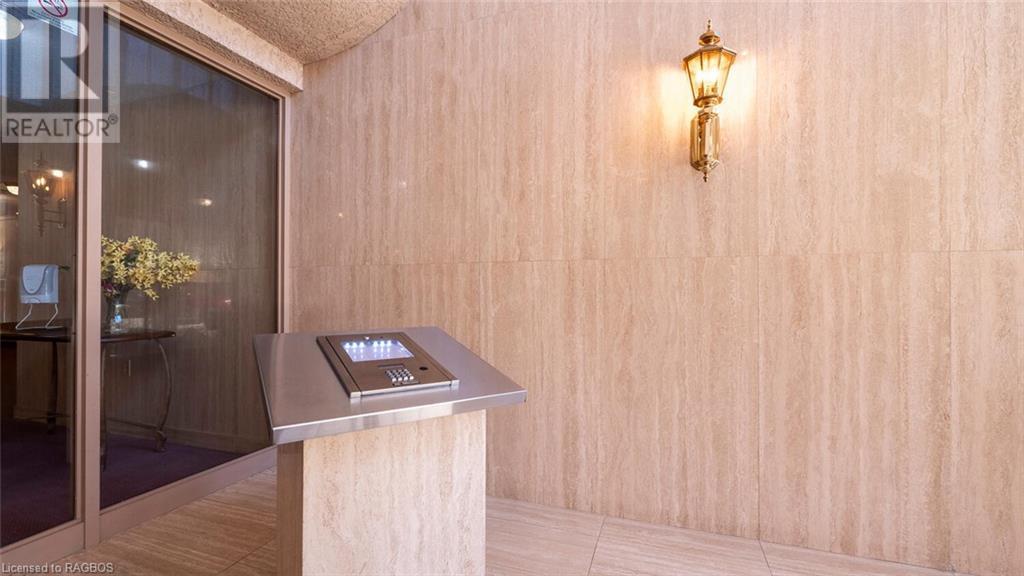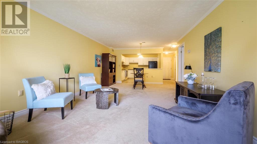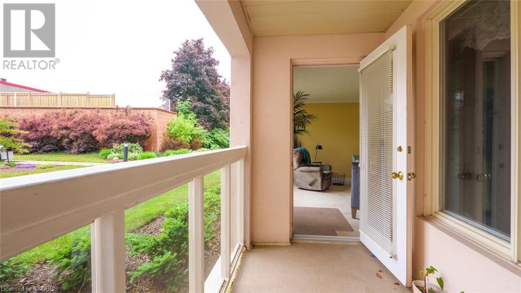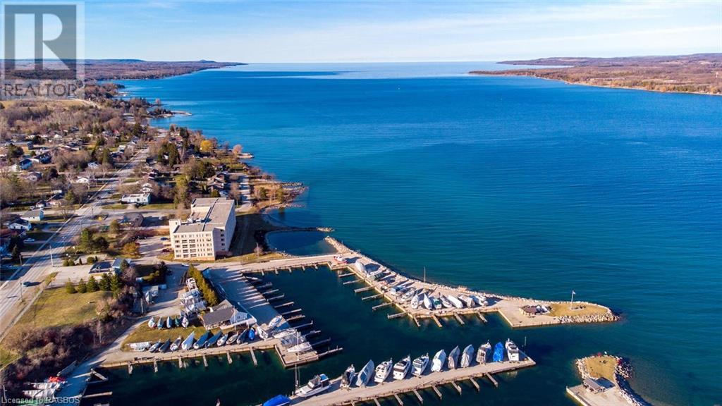 Spacious Ground Level 1 bedroom, 1 bathroom Condo now available in the Harbour Front Condominium. This beautiful building set on the shores of Georgian Bay, and located right next the Owen sound Marina, Is open Concept with a private balcony, Large Primary bedroom with walk in closet. Spacious kitchen, in Unit Laundry. This unit has access to all the amenities of the Corporation, the Library, exercise room and party/meeting room. New furnace in the unit 2022 (id:22211)