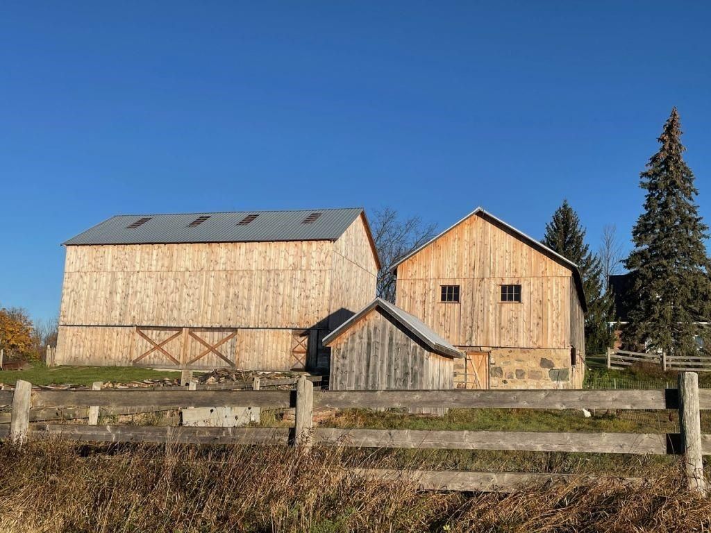 Now is your chance to live the country life you have been dreaming of! Views from every angle of the rolling country side. Stunning century property sits On 9.78 Acres. This fully renovated Victorian-Style home has all the modern touches you need. A huge bonus is two partially finished spaced for potential in-law suites or potential rental income to help with your mortgage: one in the third level of the house and a loft over the garage with rooftop patio space and a separate entrance! With TWO dual level renovated barns, you can have the hobby farm of your dreams! Raised vegetable beds, asparagus, berries, heritage apple and pear trees provide a bountiful harvest! A HUGE BONUS OWNED Solar, with a nine year contract remaining before renewal with a potential income of 14,000.00 a year!