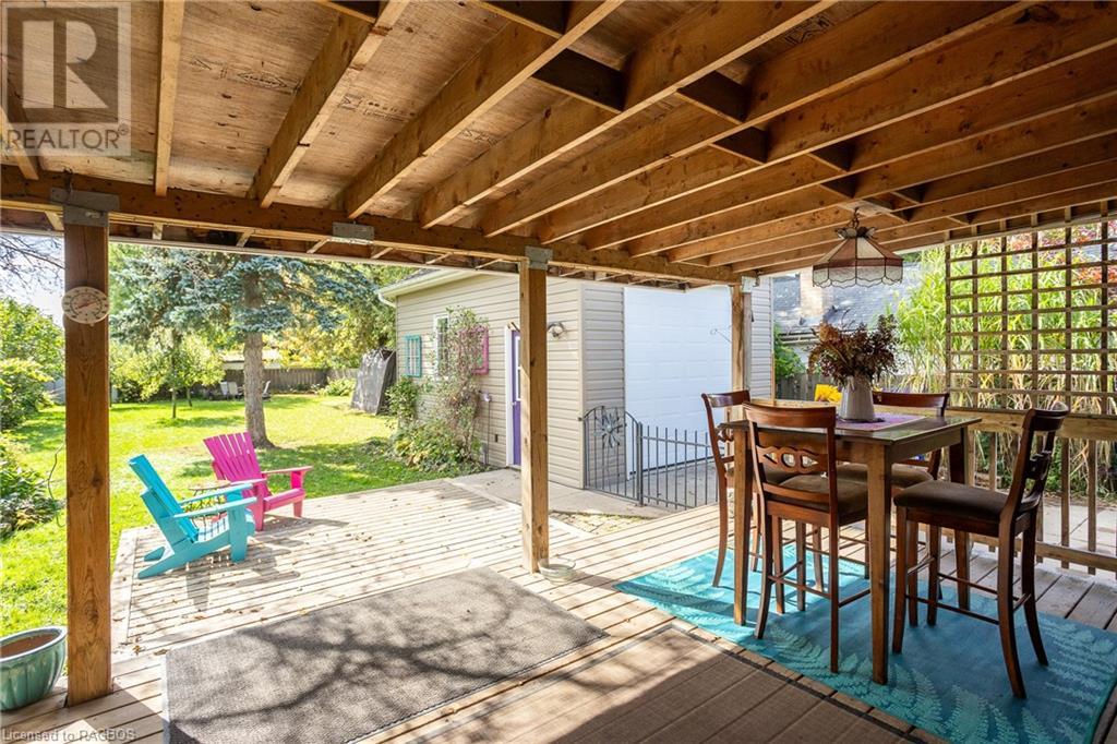This unique home offers so many possibilities! Situated in a fantastic location near schools, restaurants, and shopping, this home is currently set up for comfort, convenience, and investment alike. There's an enormous, eat in kitchen, a great place to entertain, an updated bathroom with double sinks, main floor laundry and a large living space with natural gas fireplace and patio doors to the amazing, fully fenced backyard with covered deck and a hot tub! This spacious owner's studio apartment offers you a private oasis to relax and unwind. With ample natural light and a separate entrance, it's the perfect place to create, work, or simply enjoy your own retreat within the home. The front part of the home is set up as a artist's gallery space with original century old details and another fireplace. There's 2 bedrooms on the second floor and a full bathroom. A sunroom was transformed into a kitchenette for the two boarders that supplement the mortgage payments. Of course, if you are looking for a beautiful single family home, this space can be perfect for you with lots of living space to create a third main floor bedroom. The newer 20' x 14' drive through garage has 9 ft doors and hydro and offers a space for a workshop, or extra parking or storage. Updates include windows, electrical, boiler, fireplaces, and metal roof. Whether you're an investor looking for a promising rental property, a homeowner wanting extra income, or simply someone seeking a comfortable place to call home, this property caters to your needs. (id:22211)