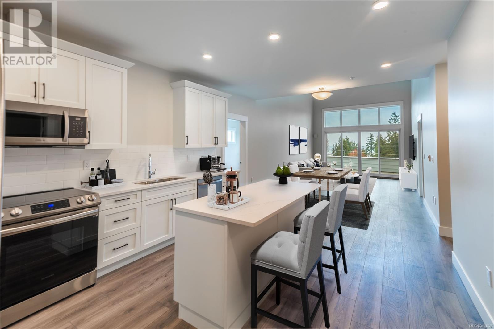 Now ready for immediate occupancy! Unit 202 is an ocean view, 1 bedroom + Den unit. Oceanside Palms is an enclave of 2 and 1 bedroom condo units in the heart of Parksville and located only 2 blocks away from the beach! Featuring ocean and city views, soaring 15 foot ceilings on the top floor units, full appliance package included, large patios accessed off the living room and master bedrooms. The designer interior finishes have been carefully selected to include shaker style cabinetry, quartz counter tops, tiled bathrooms, window transoms for an abundance of sunlight. The building offers covered parking, new home warranty, secured entry, elevator and low strata fees. Shopping, restaurants and recreation are all mere minutes away. All measurements are approximate and should be verified if important. (id:22211)
