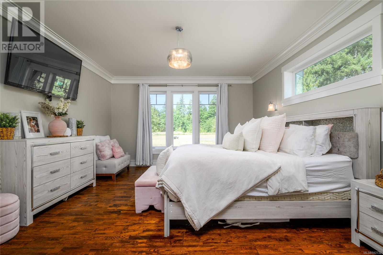 Exquisite 4BR, 4BA Parksville Estate on 2.5 Acres. Unveil the epitome of luxurious living in this meticulously crafted 3500+ sqft custom home nestled on 2.5 acres of serene Parksville landscape. Step inside and you'll be impressed with the grand entrance and the open floor plan that flows seamlessly into an extraordinary gourmet kitchen, a culinary masterpiece boasting a grand island, a professional-grade range with a convenient pot filler, and a butler's pantry, complete with a dishwasher and sink. The main floor also plays host to the primary suite, a private sanctuary with a walk-in closet and a spa-like ensuite, providing the perfect escape after a long day. Climbing the elegant staircase, you'll discover four generously sized bedrooms, including one with its own full ensuite, ideal for accommodating family and guests. An additional 4-piece bathroom ensures everyone's comfort. This home has been thoughtfully designed for both efficiency and comfort, featuring triple glazed windows to save energy and a heat pump that maintains the ideal climate year-round. Step outside to find a captivating outdoor living space, designed for entertainment and relaxation. With wiring for a TV and a wood-burning fireplace, it's the perfect setting for unforgettable evenings under the stars. Situated on a private 2.5-acre oasis, this property offers a peaceful retreat, yet it's just moments away from the vibrant heart of downtown Parksville. This is a one-of-a-kind estate, a rare gem waiting for its fortunate owner. Don't miss the opportunity to experience the allure of this remarkable home. Contact us today to arrange your private showing and seize your chance to own this piece of paradise in Parksville. Your dream home awaits! (id:22211)