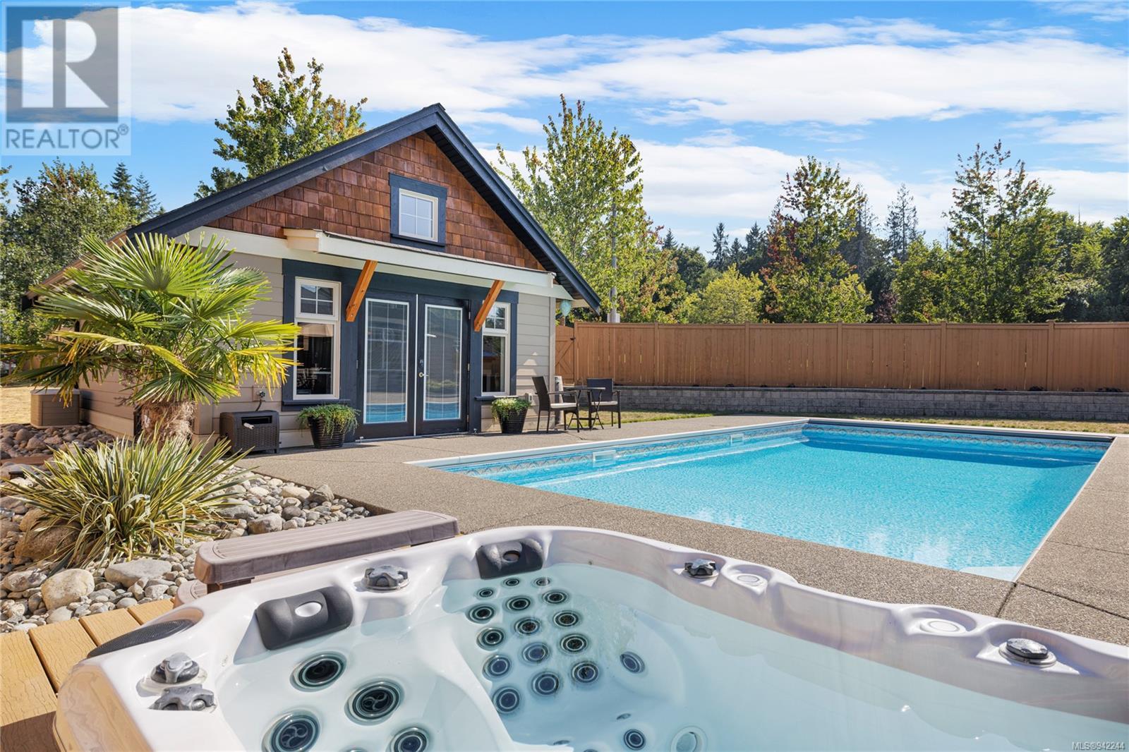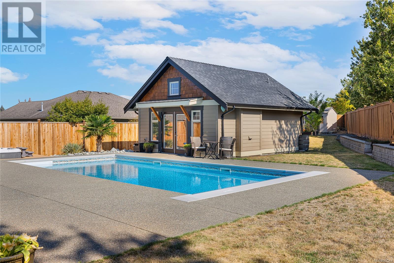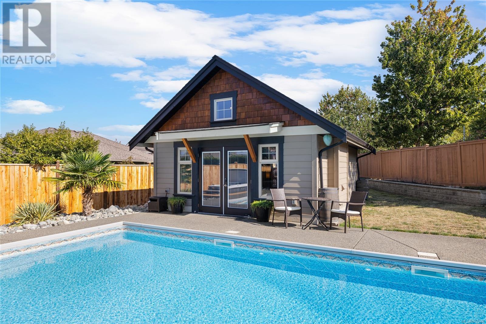 This exclusive Parksville rancher features a one-of-a-kind resort-like backyard showcasing an inground pool, a hot tub & a detached carriage house. The property is situated in a private location, minutes from local parks, the famous Parksville Beach, schools & city amenities. The extra-large windows welcome an abundance of natural light & the firelit Great room provides a cozy landing on cool winter nights. Boasting 11ft ceilings, this home offers a functional layout with custom millwork & entirely wheelchair friendly access—French doors off the sizeable primary bedroom open to the unparalleled backyard design. Permitted & designed as a spacious one-bedroom suite, the carriage house is the perfect addition to this property. The .32 landscaped grounds have been specifically curated to enjoy the resort-like pool & hot tub, extended patio, & gardens with inground irrigation & mature fruit trees. Properties in such a convenient location & with this much to offer, do not come up often! (id:22211)
