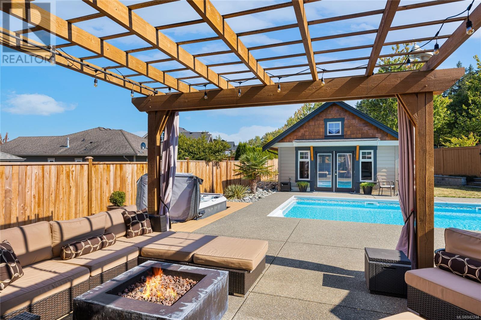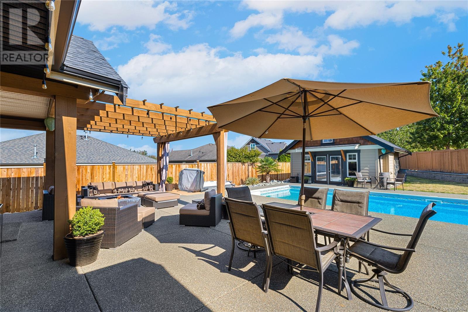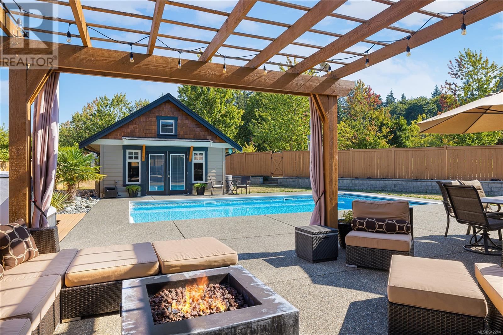 This exclusive Parksville rancher features a one-of-a-kind resort-like backyard showcasing an inground pool, a hot tub & a detached carriage house. The property is situated in a private location, minutes from local parks, the famous Parksville Beach, schools & city amenities. The extra-large windows welcome an abundance of natural light & the firelit Great room provides a cozy landing on cool winter nights. Boasting 11ft ceilings, this home offers a functional layout with custom millwork & entirely wheelchair friendly access—French doors off the sizeable primary bedroom open to the unparalleled backyard design. Permitted & designed as a spacious one-bedroom suite, the carriage house is the perfect addition to this property. The .32 landscaped grounds have been specifically curated to enjoy the resort-like pool & hot tub, extended patio, & gardens with inground irrigation & mature fruit trees. Properties in such a convenient location & with this much to offer, do not come up often! (id:22211)