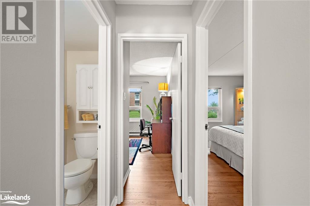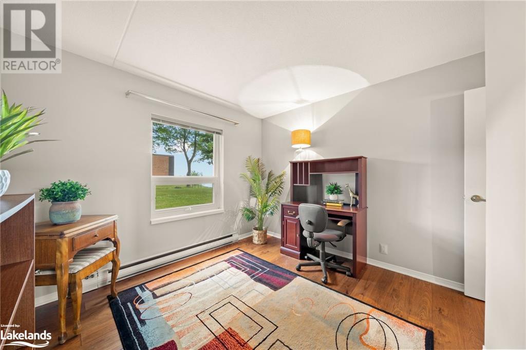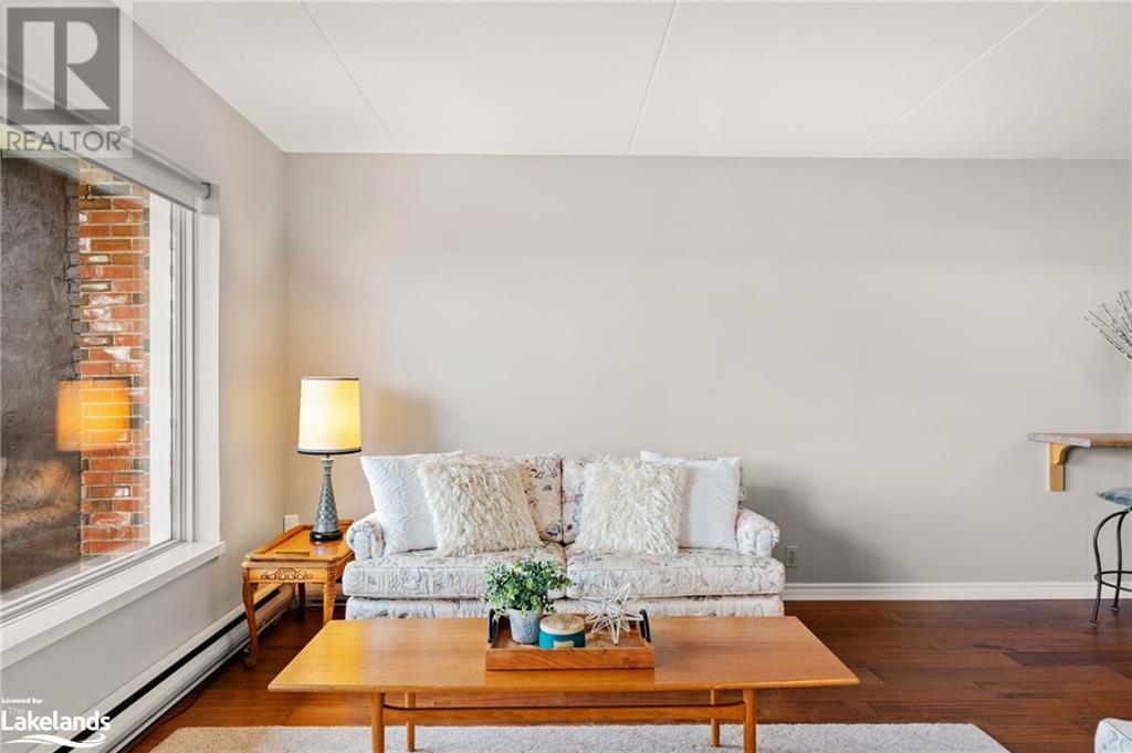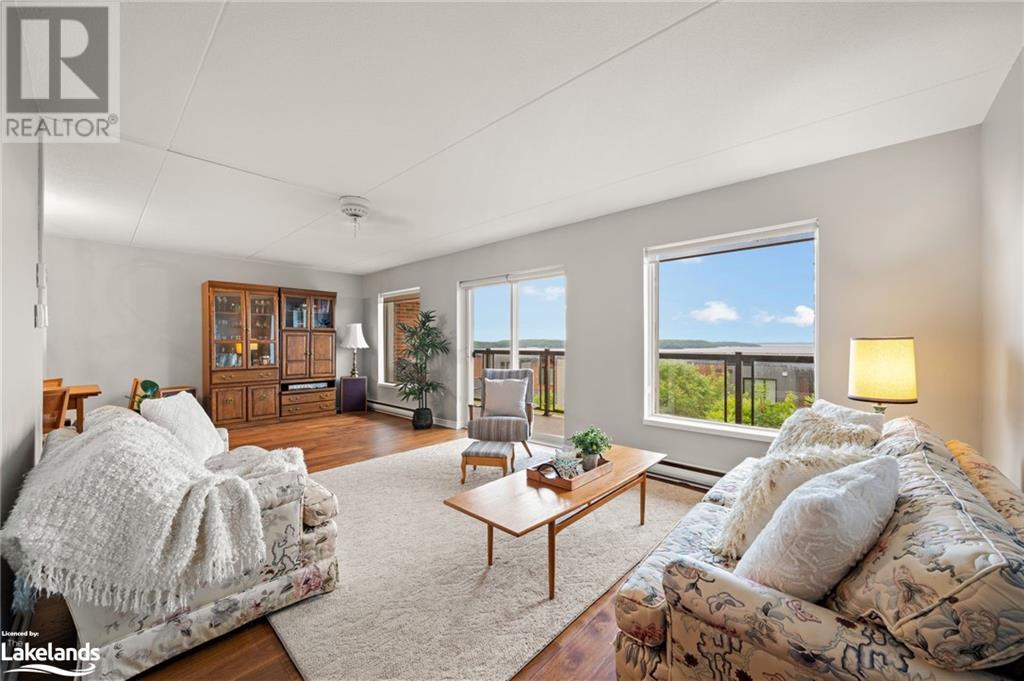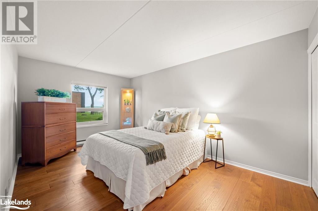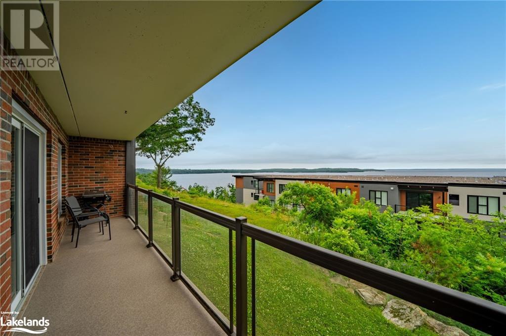 An exceptional opportunity to own a spacious two-bedroom condominium located in the heart of Intown, boasting 900 square feet of comfortable living space. This ground floor unit is in excellent condition and offers a host of desirable features that will surely captivate any prospective buyer. An abundance of natural light flooding through the large windows, creating a warm and inviting atmosphere. The open layout of the living room and dining room provides a perfect setting for entertaining guests. Offering breathtaking views of the beautiful Georgian Bay.Take in the stunning sunsets unwinding after a long day, enveloped in the serenity of the waterfront. Just a short walk away, you'll find beaches, parks, and waterfront areas, allowing you to immerse yourself in the natural beauty of the surroundings. For those who enjoy outdoor activities, there are trails available for biking, walking, and exploring, allowing you to make the most of the fresh cottage country air. The interior features of this condominium are equally impressive. In-floor heating ensures your comfort during the colder months, while the well-designed layout provides a sense of spaciousness. The unit comes move-in ready, saving you time and effort in settling into your new home. In addition to the unit's amenities, residents have access to common areas, including a convenient laundry room. Outdoor parking space is provided, ensuring hassle-free parking for you and your guests. Furthermore, an exclusive storage area is included, allowing you to keep your belongings organized and easily accessible. Whether you're looking for a home for a small family, a city getaway, or a retirement retreat, this condominium offers an exceptional chance to own a piece of cottage country. The quiet building and its beautiful location make it a true gem, providing a tranquil and picturesque setting for you to call home. Click on the media arrow for video and floor plans. (id:22211)