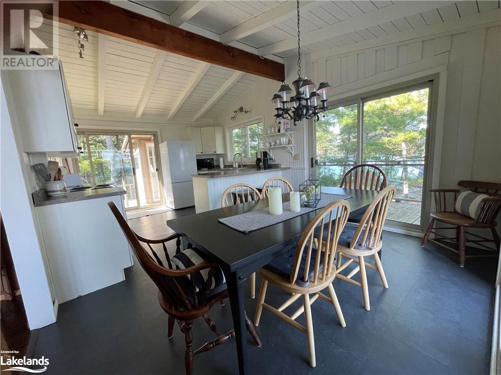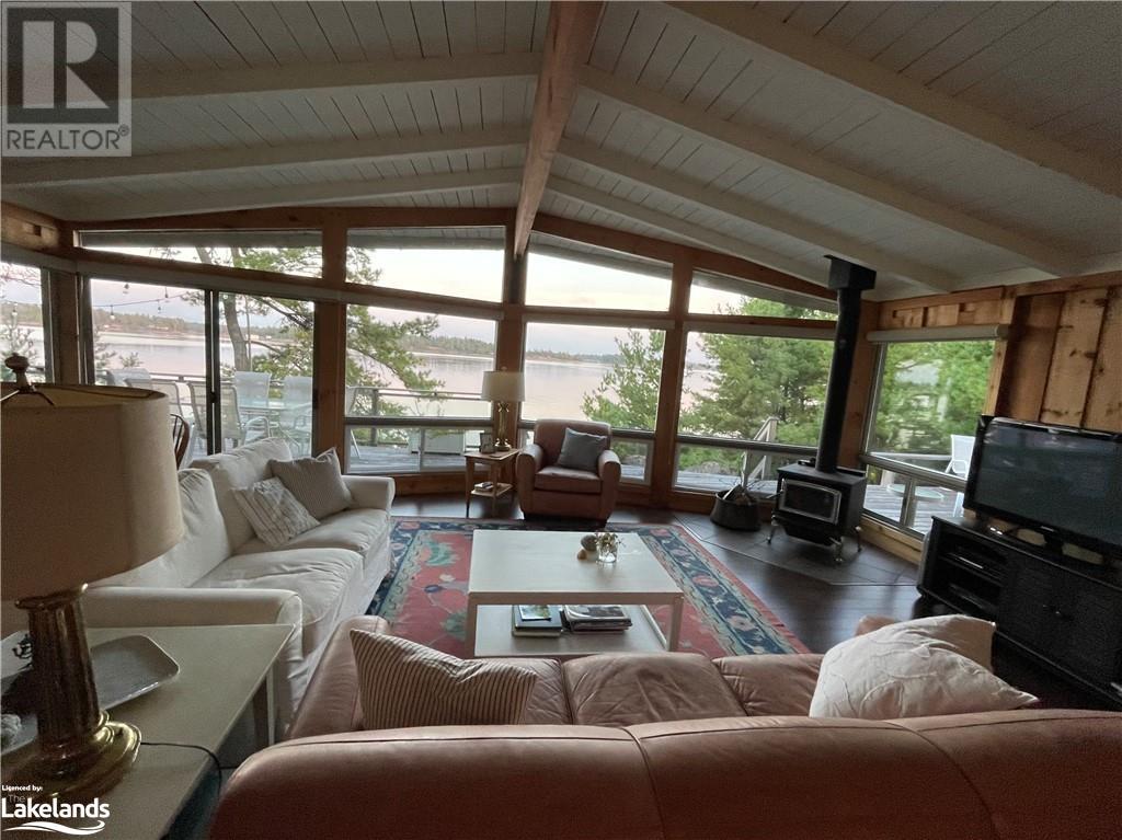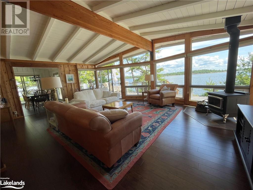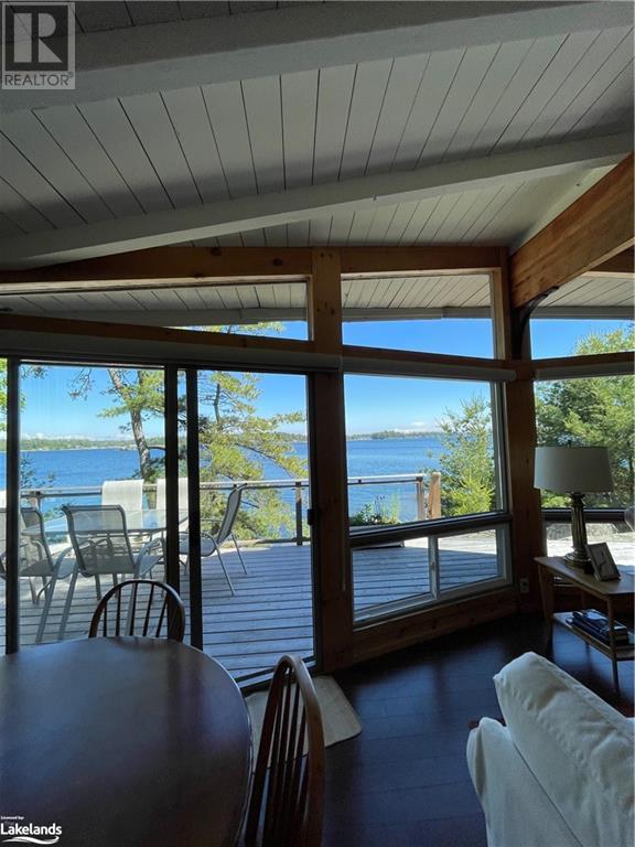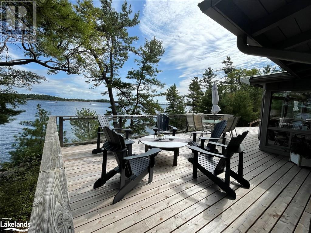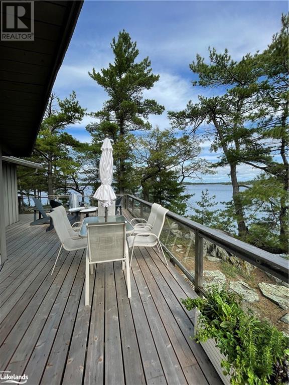 This quiet private cottage sits on 8.5 acres w/1800 ft of shoreline. The Islands windswept pines, oak & rock faces capture all the natural beauty of SPINDRIFT. Swim from the deep water dock or enjoy the gradual, natural sand beach that is spectacular for all ages. The wrap around deck is a great size for hosting & blends well w/the Islands topography as well as the wooden & stone walkways. The levels are gradual allowing for ease & mobility. From the deck sitting areas there is a stunning view of the southern Islands & views to the open south west. From inside the cottage the water views can be taken in all rooms creating a seamless feeling between outdoor & inside living. The layout of the cottage floorplan is open & light filled w/high ceilings & quiet areas as well as a well appointed kitchen & beds for 10 guests. The cottage is well built & well maintained (many upgrades 2021-22-plumbing, septic & decks to name a few).Location is the Massasauga Provincial Park, excellent for paddling, sailing, fishing in quiet bays. Great for day picnics or hiking. The Island is 5 mins away from the marina, grocery & LCBO. The SSCA community center is just around the corner offering children's day camp, pickle ball & tennis. If you're looking for a great family cottage offering all the features & total escape - this is it. (id:22211)