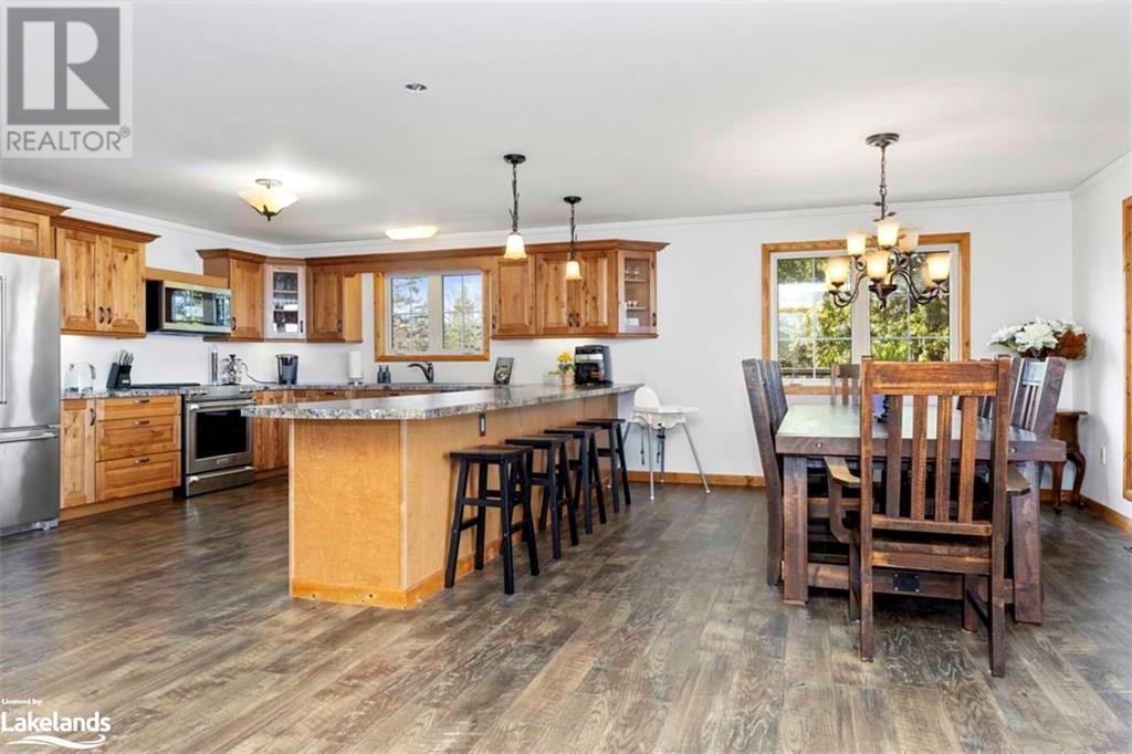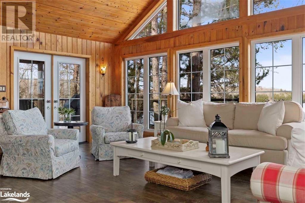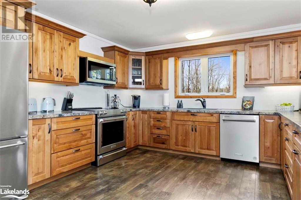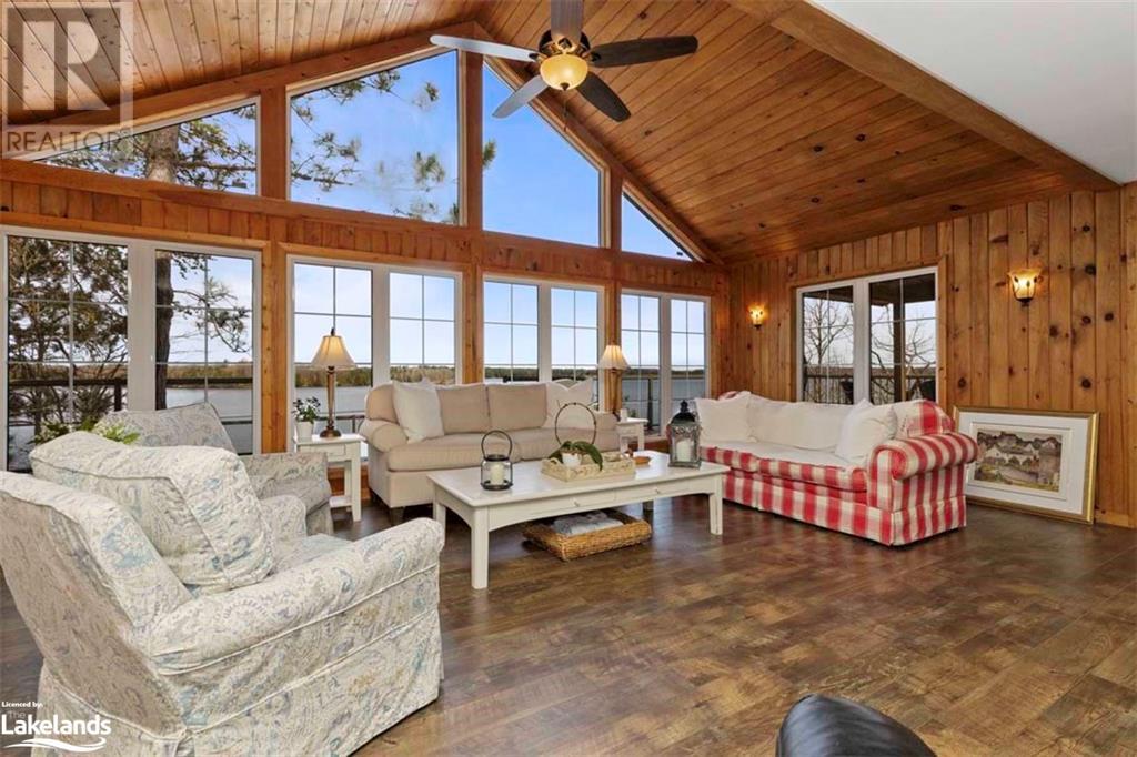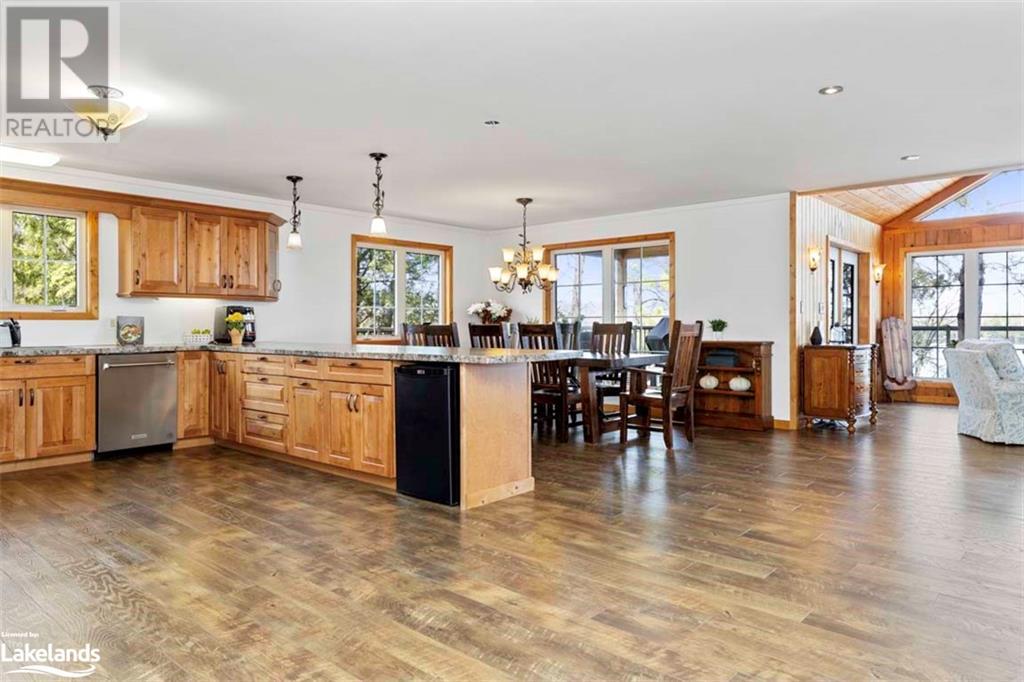 371' WATERFRONT on AMAZING WAHWASHKESH LAKE! STUNNING PANORAMIC VIEWS! GORGEOUS WESTERN SUNSETS! CUSTOM BUILT LAKEHOUSE is nestled on 1.5 Acres of Privacy! Ideal country getaway/home or investment property! Fully Winterized Year round 2290 sq ft ranch bungalow, EVERYTHING ON ONE FLOOR, 3 bedrooms + den/guest room, 2 baths, Principal bedroom boasts 3 pc ensuite bath, Walkout to fabulous lakeside decks, Open concept design just perfect for entertaining family & friends, Gourmet kitchen with abundance of cupboards & counter space, New Kitchenaide appliances, Vaulted ceilings, Engineered hardwood floors, Freshly painted throughout, Convenient main floor laundry, New high efficiency forced air furnace/heat pump, Gentle sloping pathway down to waterfront, Enjoy deep water for docking & great swimming, Extensive docking system 24 x 12, Classic Canadian Shield granite shoreline, WAHWASHKESH is a large full service lake w/marina, boat launches, golf course + abundance of Crown Land, Great for all water activities, Miles of boating enjoyment & exploring for the day, great fishing, kayaking & canoeing, Expansive, spacious decking & covered porch area, Glass railings to capture the long lake views, Drilled well, Water filtration system, Water softener, Easy care metal roof, Lots of parking for guests, boats, RVs etc., Great area for hiking, ATVing, trails & cross country skiing. Mins to Dunchurch or Parry Sound for amenities, Good access to Hwys 124 & 400 direct to the GTA, Strong rental potential, THIS LAKE HOUSE IS READY FOR YOUR ENJOYMENT on SOUGHT AFTER ‘WAHWASHKESH! (id:22211)