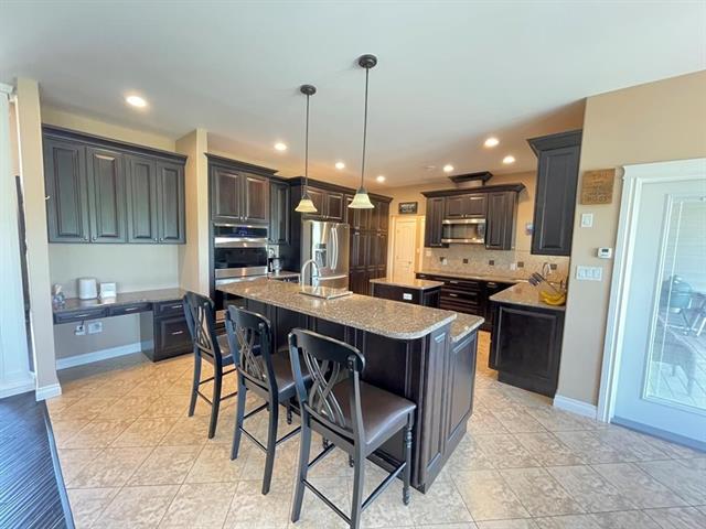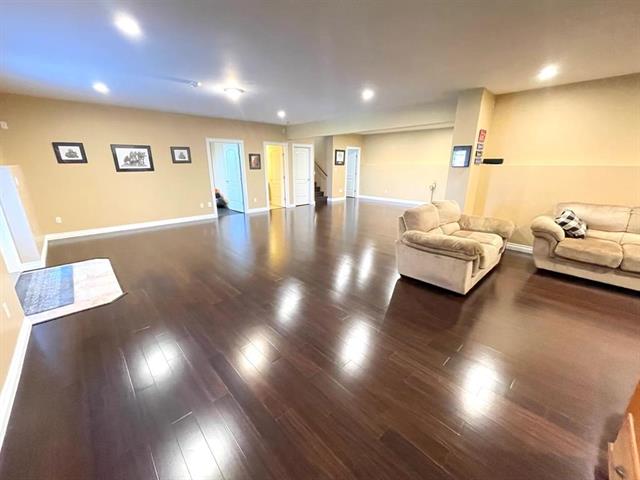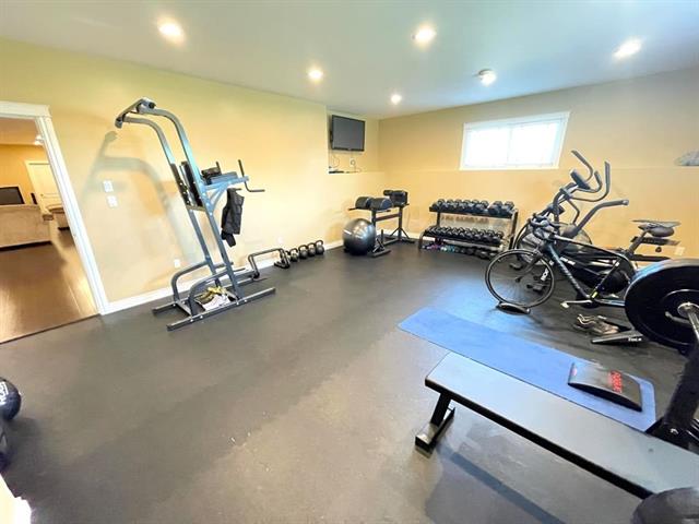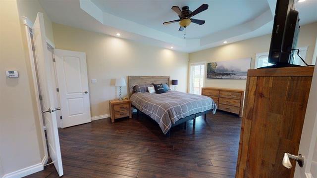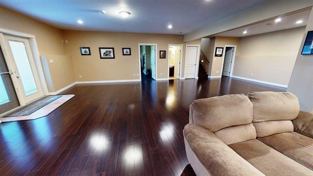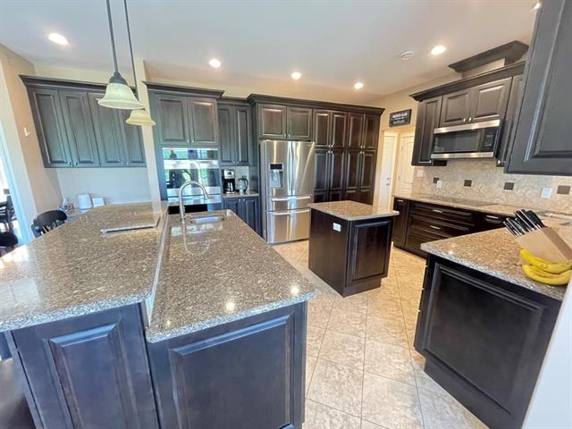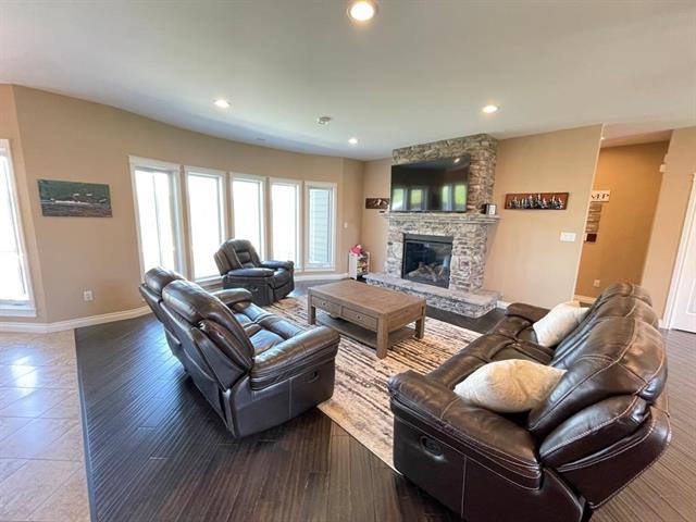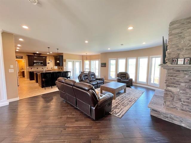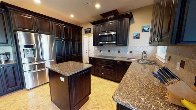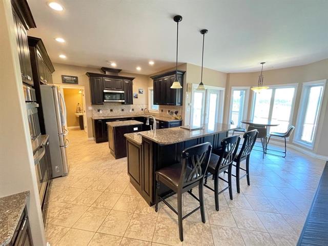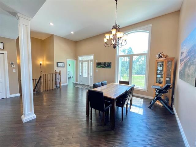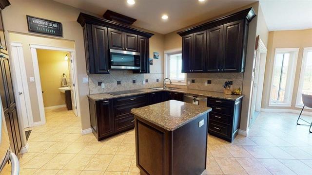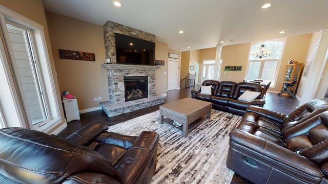 Looking for an executive home on acreage with a triple car garage? This custom built, open concept home in a quiet subdivision is only 15 minutes from town on 4.69 acres. Welcome to Tea Creek Estates where you will have privacy from neighbours in your fully fenced yard but still offering you space. This phenomenal home features the dream kitchen you've always wanted with quartz countertops, pull out pantries, high-end soft close cabinets & 2 islands. Plenty of room to entertain with large dining area or cozy up by the gas fireplace. Spa-like master ensuite with dual sinks, separate tiled double walk-in shower, & free standing jet tub. Fully finished walk-out bsmt & dream home-gym (can be a 4th bdrm), & huge rec room with the hooks up for a bar. In floor heat & deck with amazing views!
