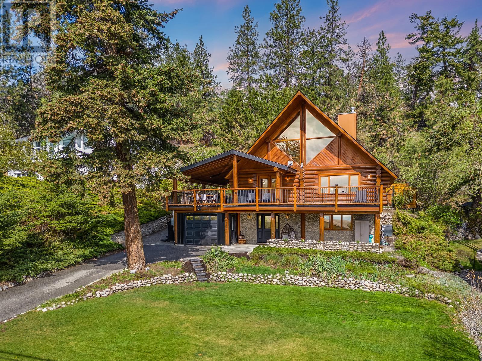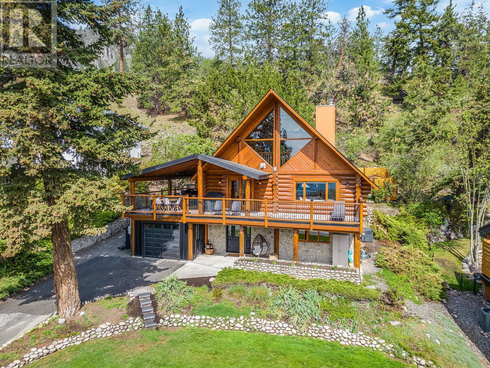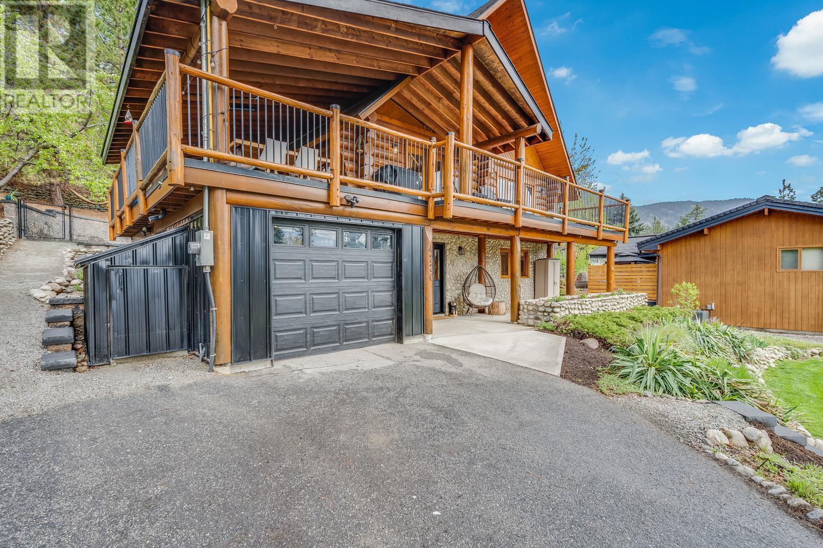 If you're looking for character and love to entertain, this is the one you've been waiting for! Absolutely gorgeous A frame Log home with a modern renovation inside and out. The main floor has an open concept layout and a beautiful chefs kitchen with lots of storage, gas range, stainless appliances and quartz counters. The tall soaring ceilings and South facing windows that stretch to the ceiling allow a ton of natural light making the space bright and beautiful. Hosting guests on your huge wrap around and covered deck with built in infrared heaters will be a ton of fun and can be enjoyed year round! If you want to access the yard you can do so easily straight from the kitchen or take the fun way across the bridge that leads from the deck! Once back there you'll find a private, flat and fenced oasis, fully irrigated with a new Scandinavian style hot tub and outdoor sauna! Located in the quiet hills of Peachland, this unique property will be your escape from it all yet you're mere minutes to the shores of Okanagan Lake and all of the wonderful amenities of the world class Beach Ave Promenade. Properties with so much character and style and such a well done renovation rarely hit the market and especially at this price! Don't wait, call today to learn more about how we can make this your new home! (id:22211)