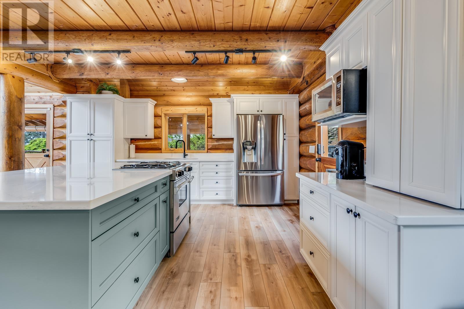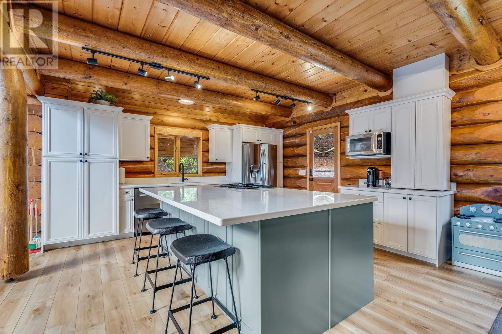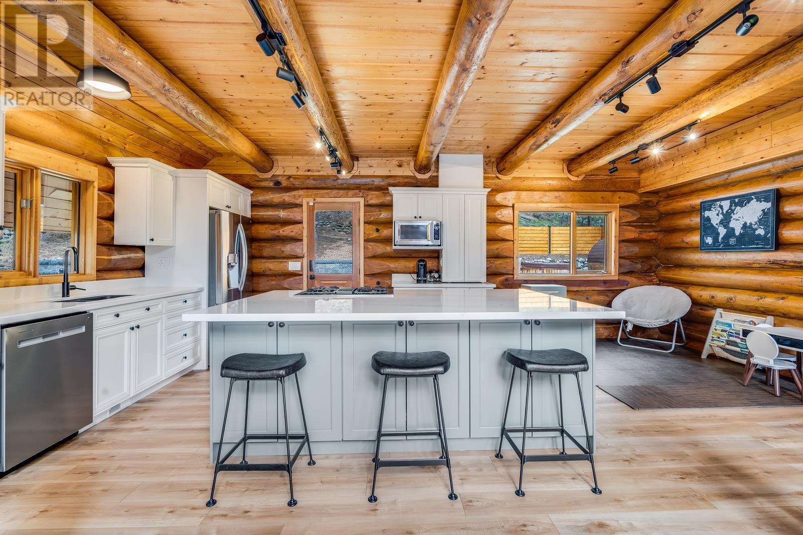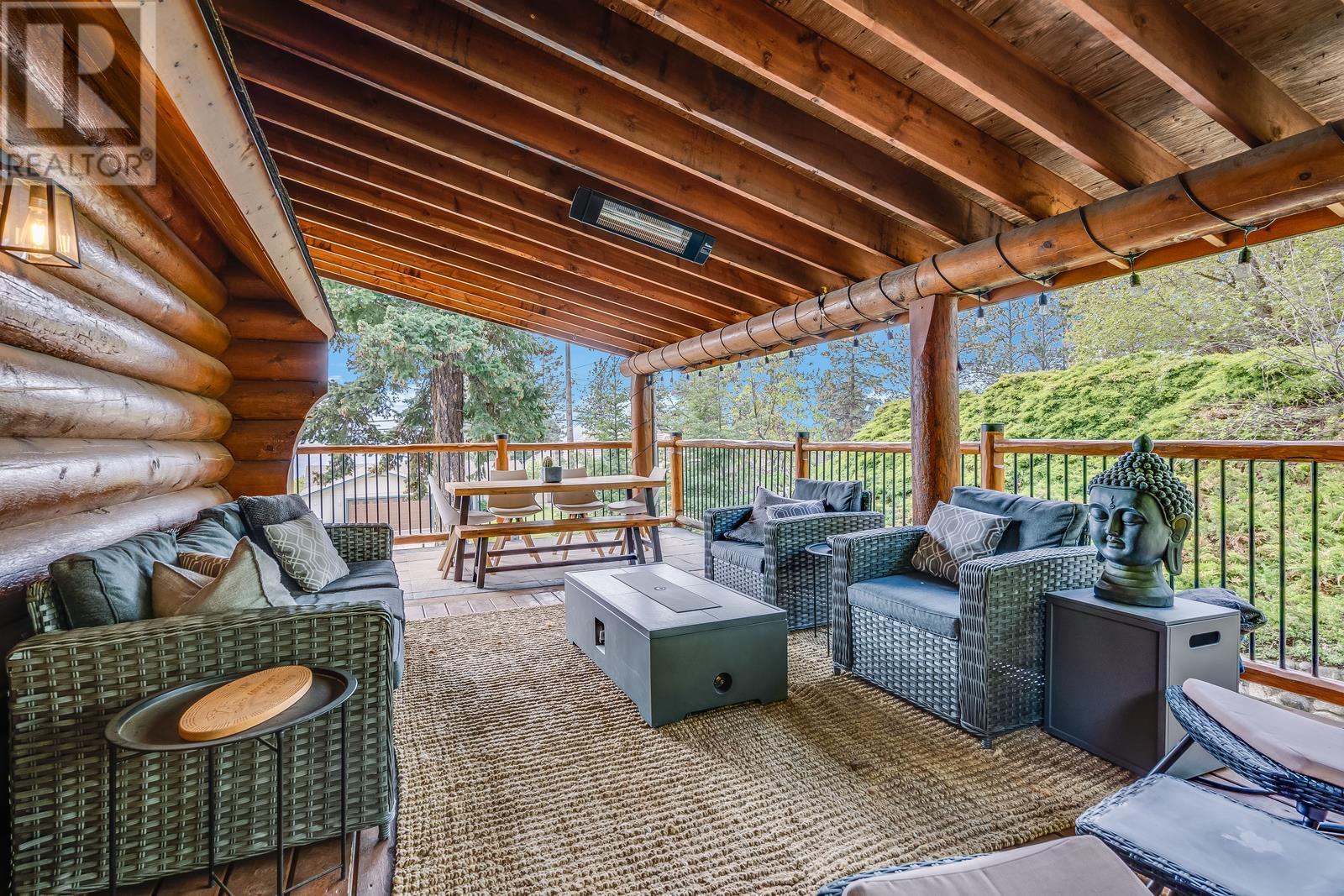 If you're looking for character and love to entertain, this is the one you've been waiting for! Absolutely gorgeous A frame Log home with a modern renovation inside and out. The main floor has an open concept layout and a beautiful chefs kitchen with lots of storage, gas range, stainless appliances and quartz counters. The tall soaring ceilings and South facing windows that stretch to the ceiling allow a ton of natural light making the space bright and beautiful. Hosting guests on your huge wrap around and covered deck with built in infrared heaters will be a ton of fun and can be enjoyed year round! If you want to access the yard you can do so easily straight from the kitchen or take the fun way across the bridge that leads from the deck! Once back there you'll find a private, flat and fenced oasis, fully irrigated with a new Scandinavian style hot tub and outdoor sauna! Located in the quiet hills of Peachland, this unique property will be your escape from it all yet you're mere minutes to the shores of Okanagan Lake and all of the wonderful amenities of the world class Beach Ave Promenade. Properties with so much character and style and such a well done renovation rarely hit the market and especially at this price! Don't wait, call today to learn more about how we can make this your new home! (id:22211)