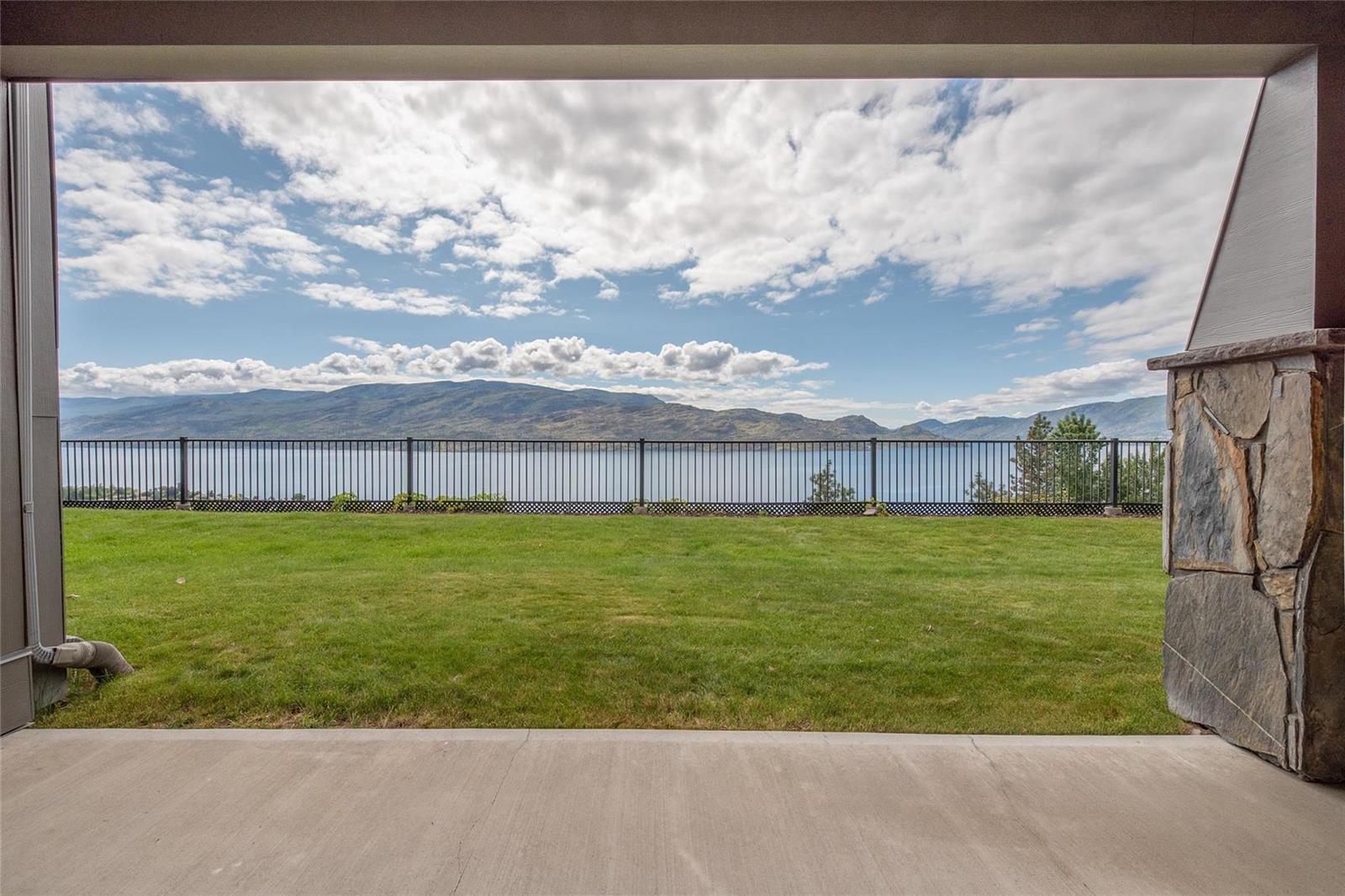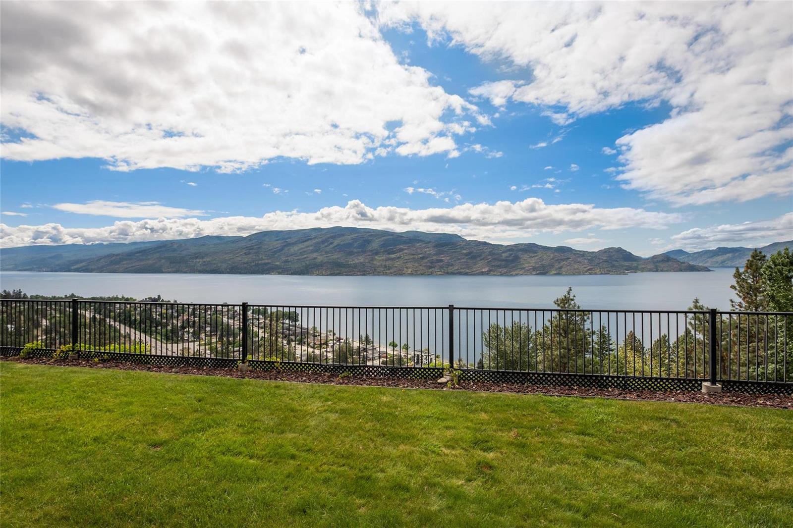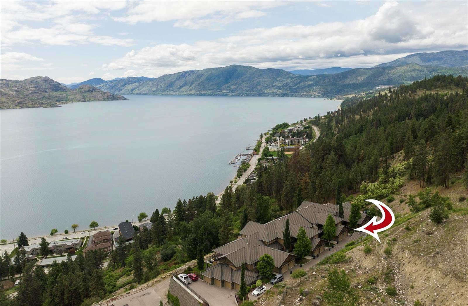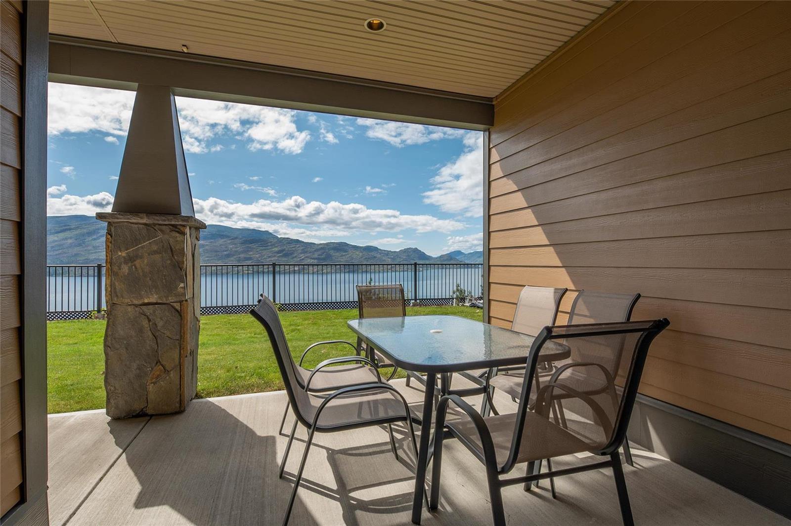 Extraordinary lake views in this open plan townhouse in Eagle's View. High end finishing throughout including engineered hardwood floors, a gourmet island kitchen with stainless steel appliances and granite counters. Nearly new - unit has only been used 2 weeks each year since purchased. Turn-key, just move in and enjoy with everything included, from furniture to dishes. Garage is only steps away from front door and has extra room for storage or workbench. This is the ultimate in carefree Okanagan Living where you can relax & entertain friends on a spacious barbeque patio, play yard games on the green space, all while enjoying the lake views. With 2 bedrooms & 2 full baths there's plenty of room. You can drop into the Club House to use the exercise room or book the movie/party room for you and your guests. Plenty of parking for you and your guests as well as RV parking. Close to several beautiful beaches, walking paths, restaurants and shopping. (id:22211)