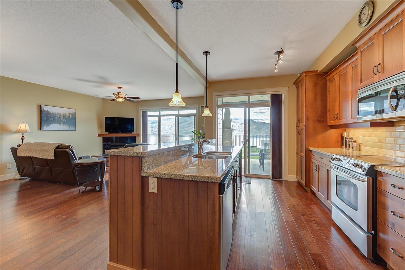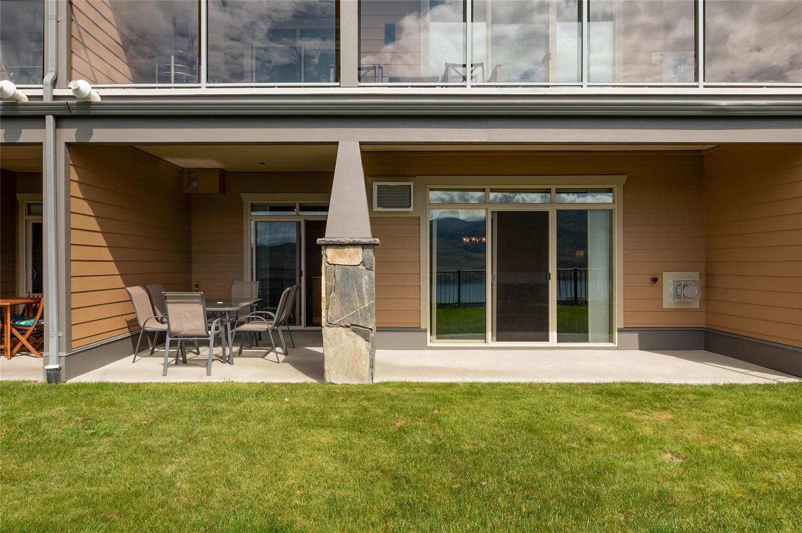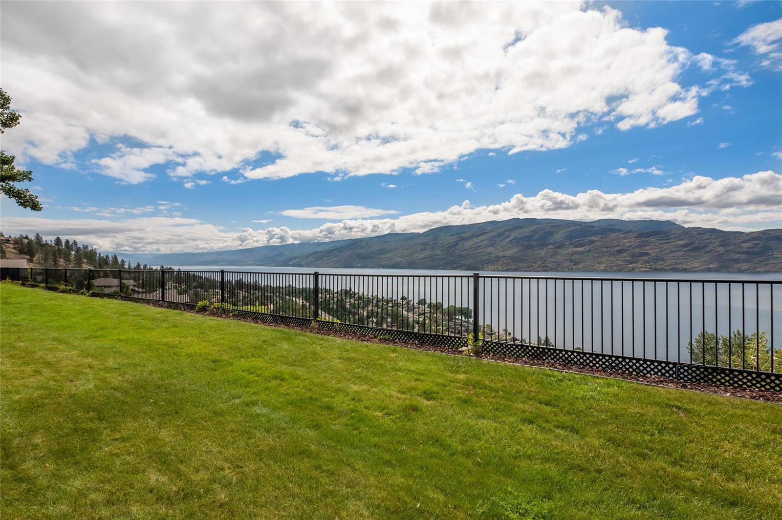 Extraordinary lake views in this open plan townhouse in Eagle's View. High end finishing throughout including engineered hardwood floors, a gourmet island kitchen with stainless steel appliances and granite counters. Nearly new - unit has only been used 2 weeks each year since purchased. Turn-key, just move in and enjoy with everything included, from furniture to dishes. Garage is only steps away from front door and has extra room for storage or workbench. This is the ultimate in carefree Okanagan Living where you can relax & entertain friends on a spacious barbeque patio, play yard games on the green space, all while enjoying the lake views. With 2 bedrooms & 2 full baths there's plenty of room. You can drop into the Club House to use the exercise room or book the movie/party room for you and your guests. Plenty of parking for you and your guests as well as RV parking. Close to several beautiful beaches, walking paths, restaurants and shopping. (id:22211)