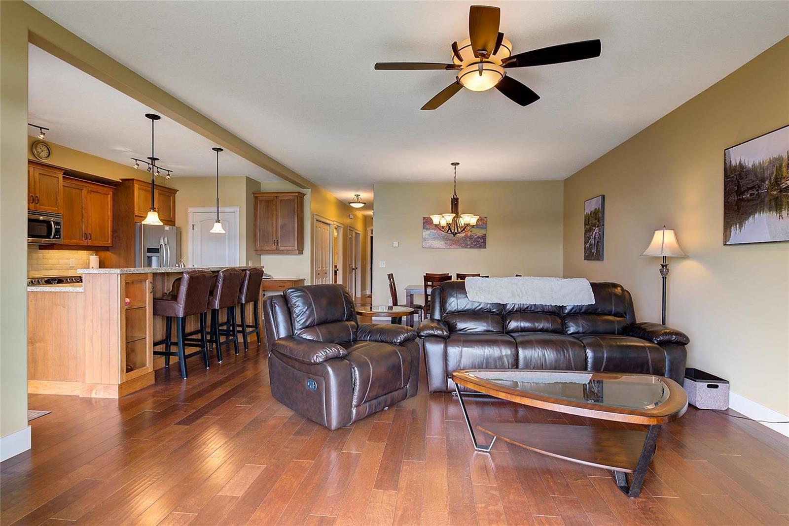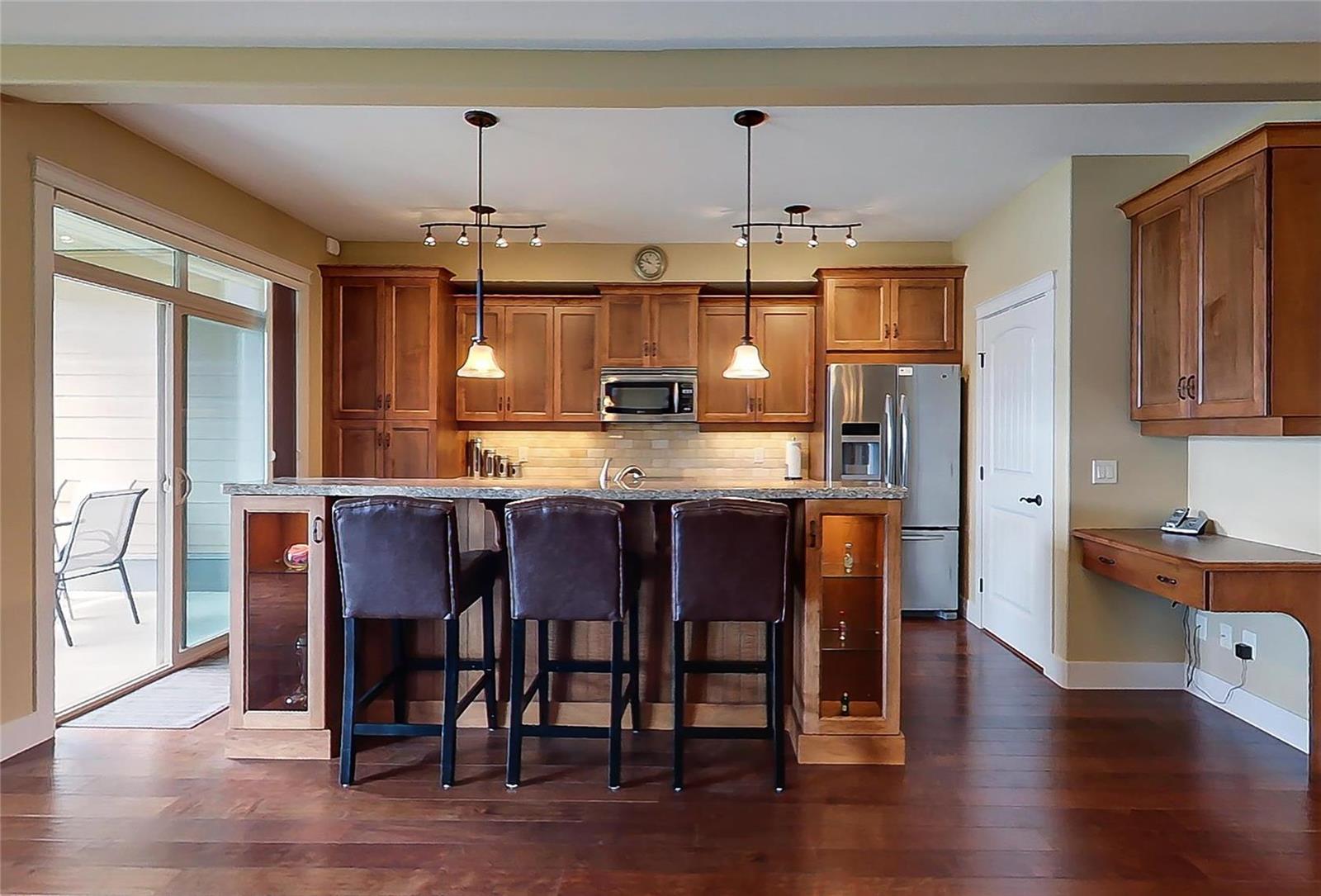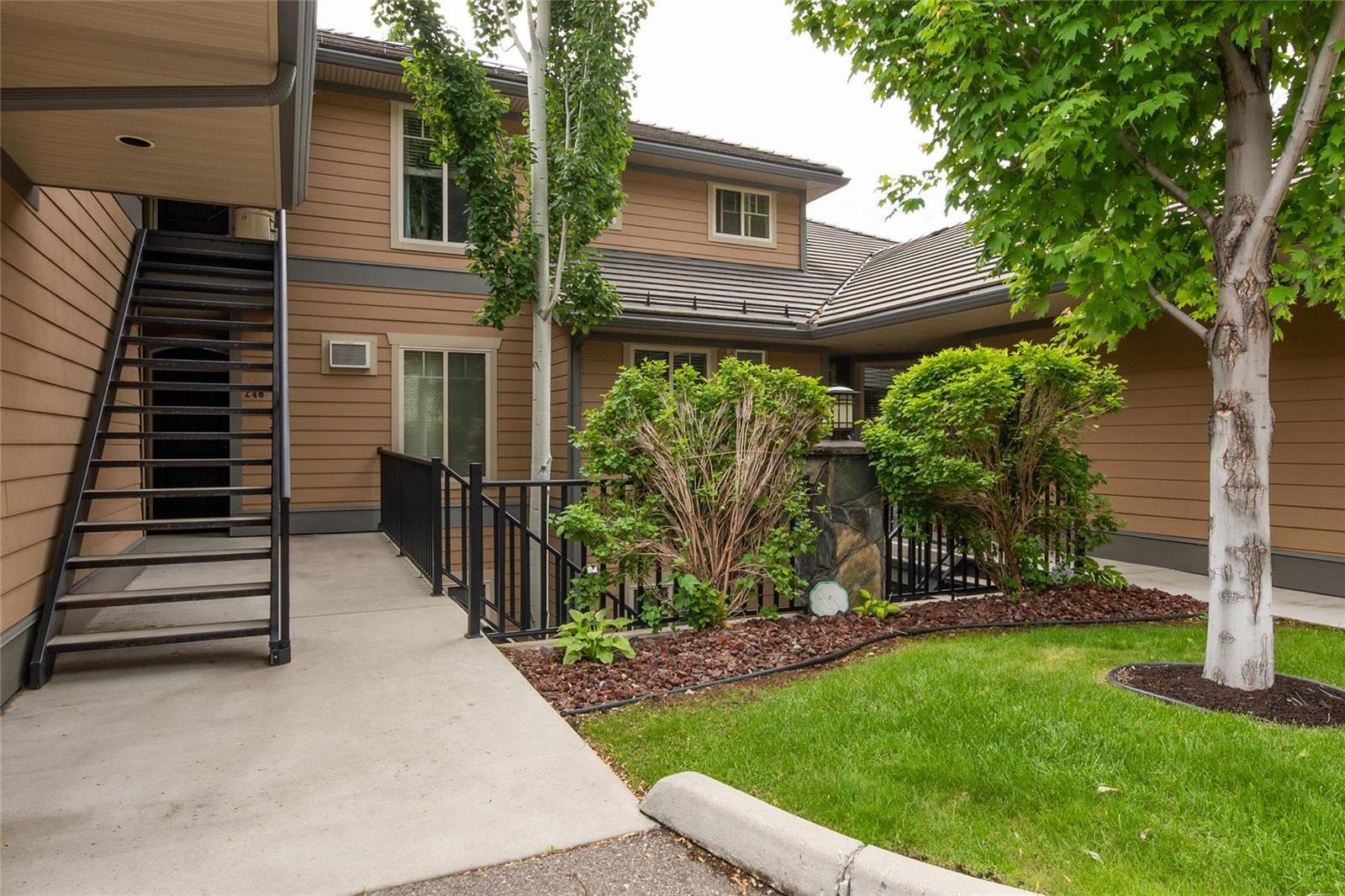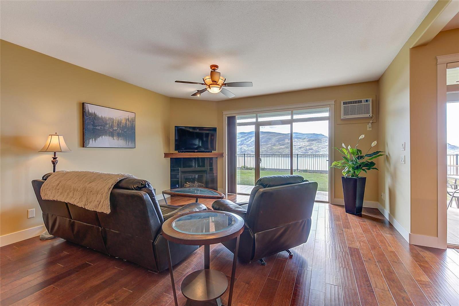 Extraordinary lake views in this open plan townhouse in Eagle's View. High end finishing throughout including engineered hardwood floors, a gourmet island kitchen with stainless steel appliances and granite counters. Nearly new - unit has only been used 2 weeks each year since purchased. Turn-key, just move in and enjoy with everything included, from furniture to dishes. Garage is only steps away from front door and has extra room for storage or workbench. This is the ultimate in carefree Okanagan Living where you can relax & entertain friends on a spacious barbeque patio, play yard games on the green space, all while enjoying the lake views. With 2 bedrooms & 2 full baths there's plenty of room. You can drop into the Club House to use the exercise room or book the movie/party room for you and your guests. Plenty of parking for you and your guests as well as RV parking. Close to several beautiful beaches, walking paths, restaurants and shopping. (id:22211)